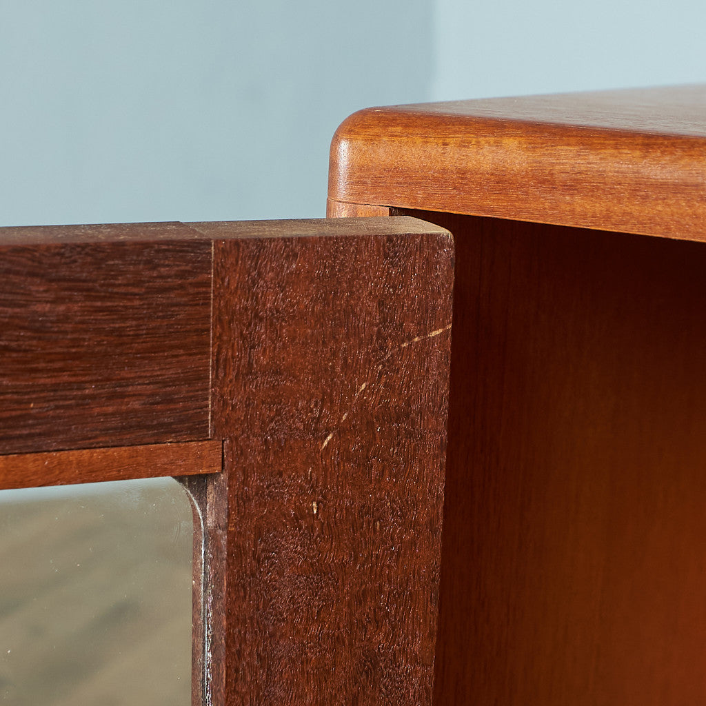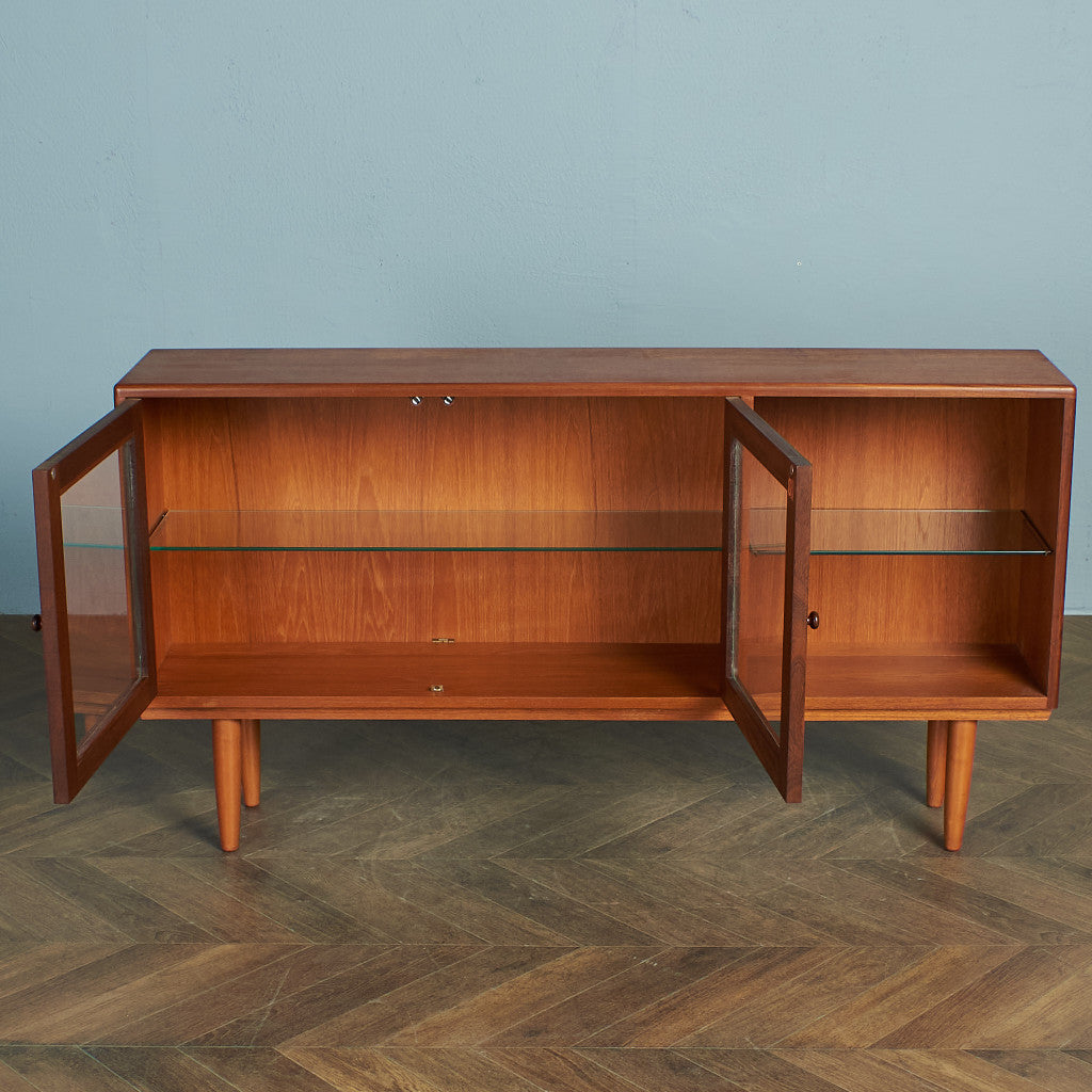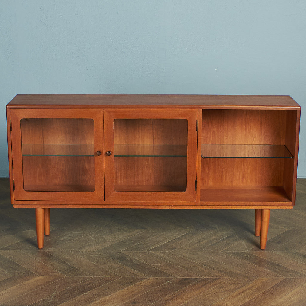 小さな文庫書籍や食器、コレクションなど見せる収納に最適な薄型タイプ。細部にこだわりが感じられるリビングの顔として申し分のないお品です。ヴィンテージ市場でも見かけることの少ないレアなモデルです。