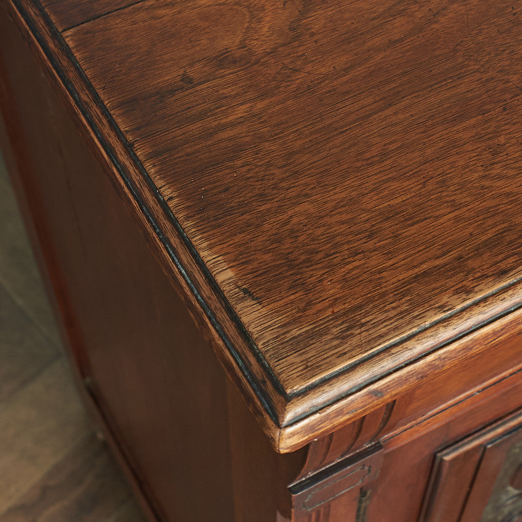 ブリティッシュオーク材を用い、随所に美しいディテールを備えた上質なサイドボード。古き良き西欧の伝統を感じさせるクラシカルなデザイン、程よく古びた風合いがアンティークならではの素朴で優しい雰囲気を演出します。