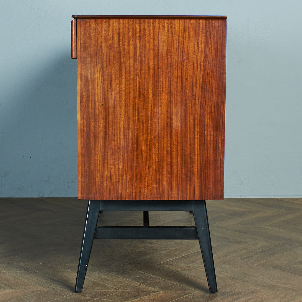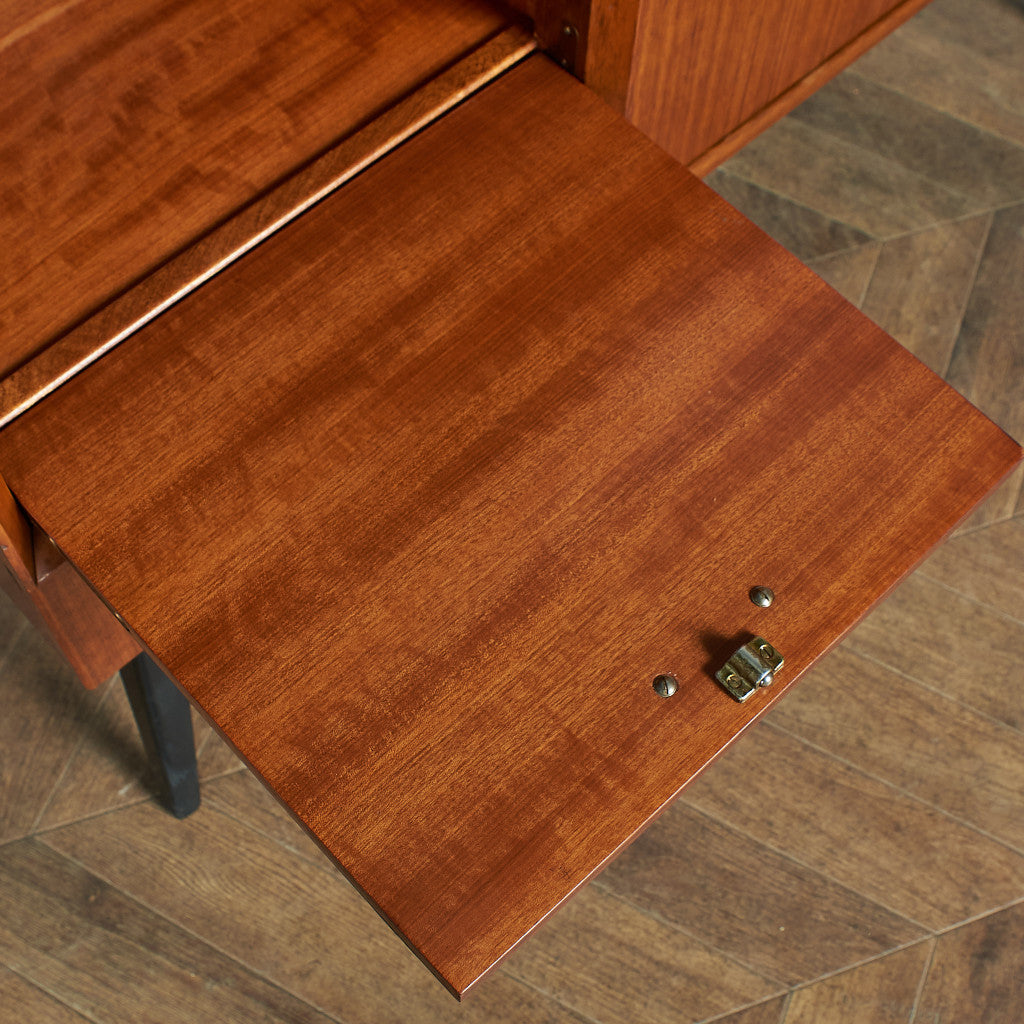 Beautility社はG-PLAN、McIntoshと並びイギリスのミッドセンチュリーを代表する、老舗の家具メーカー。1896年、サイモン・サドフスキーが"Sadovsky" Cabinet Makersを設立。その後、1929年に「Beautility Furniture」に改名しました。バラエティに富んだ個性的な取っ手や、すっきりとしたスタイリッシュな脚のデザインが特徴です。
