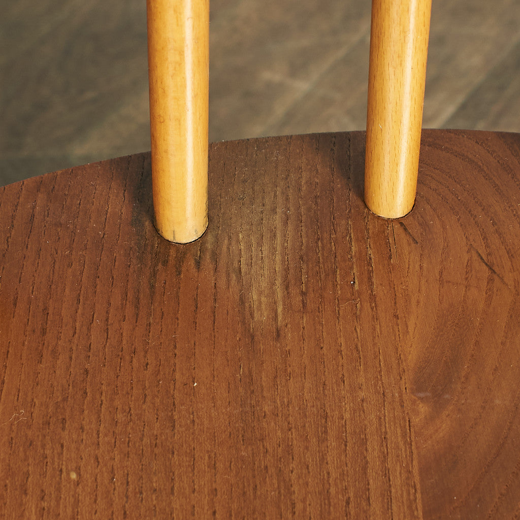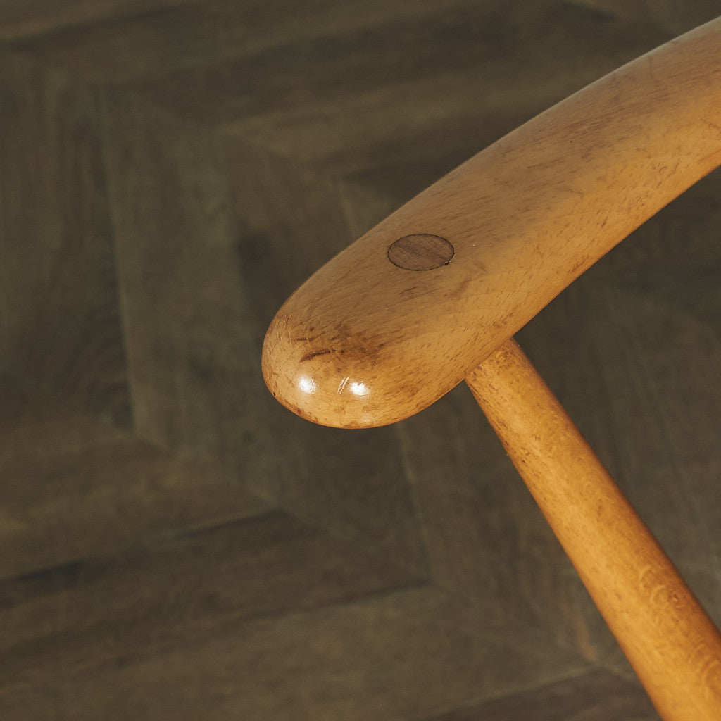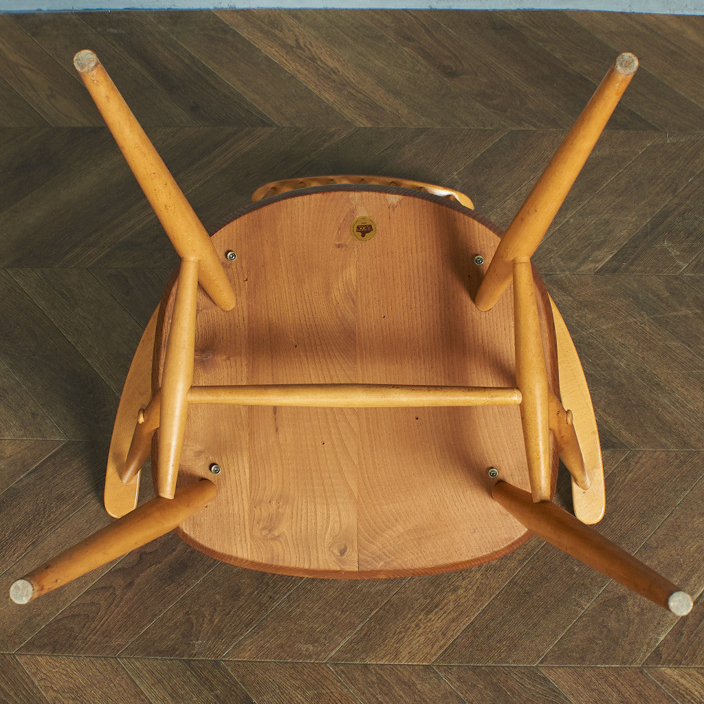 金細工師という名を持つこのイスは、アーコール社の椅子の中でも発表当時から一番人気のモデル。スタンダードなコームバックのウィンザーチェアをモチーフにしながらも、座り心地の良いロングスティックの背もたれや広めの座面、カーブを描く飾り木などが特徴です。実用性と程よい装飾性、個性を備えたデザインアレンジが施されています。