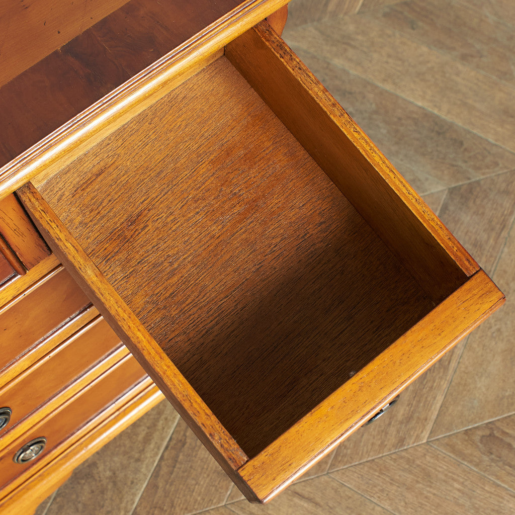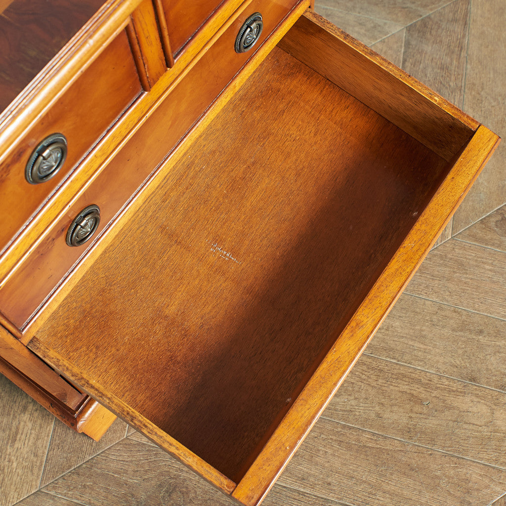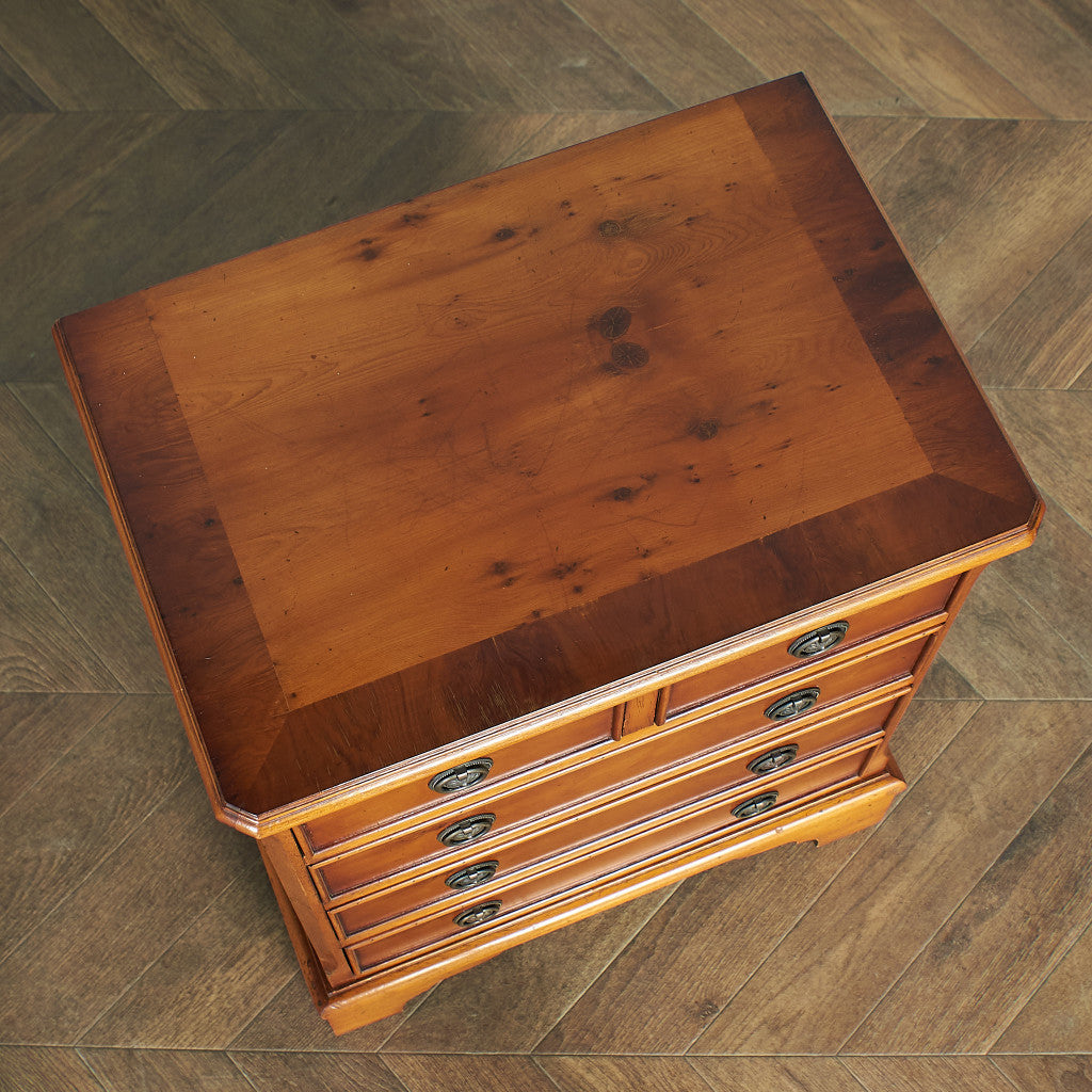 イチイ材の美しい杢に取手の金具がアクセントになった、シンプルながらも上品なデザインのサイドチェストです。