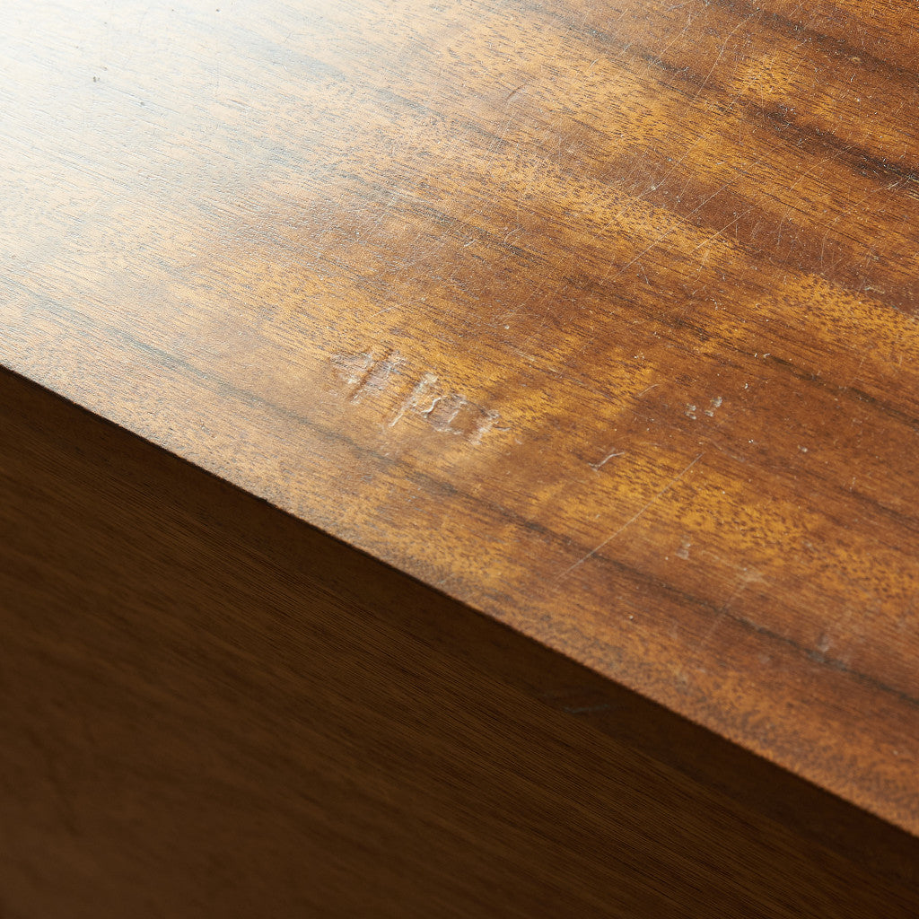 デンマークスタイルに独自のアレンジが施された個性的なサイドボード。無駄の無いシンプルなフォルムの中にも、さりげなく主張する取っ手やエッジの加工など、遊び心とかっこよさがミックスされたデザインが印象的です。収納の容量も抜群で、リビングの顔としても申し分のない機能性と存在感です。