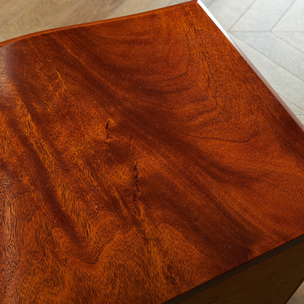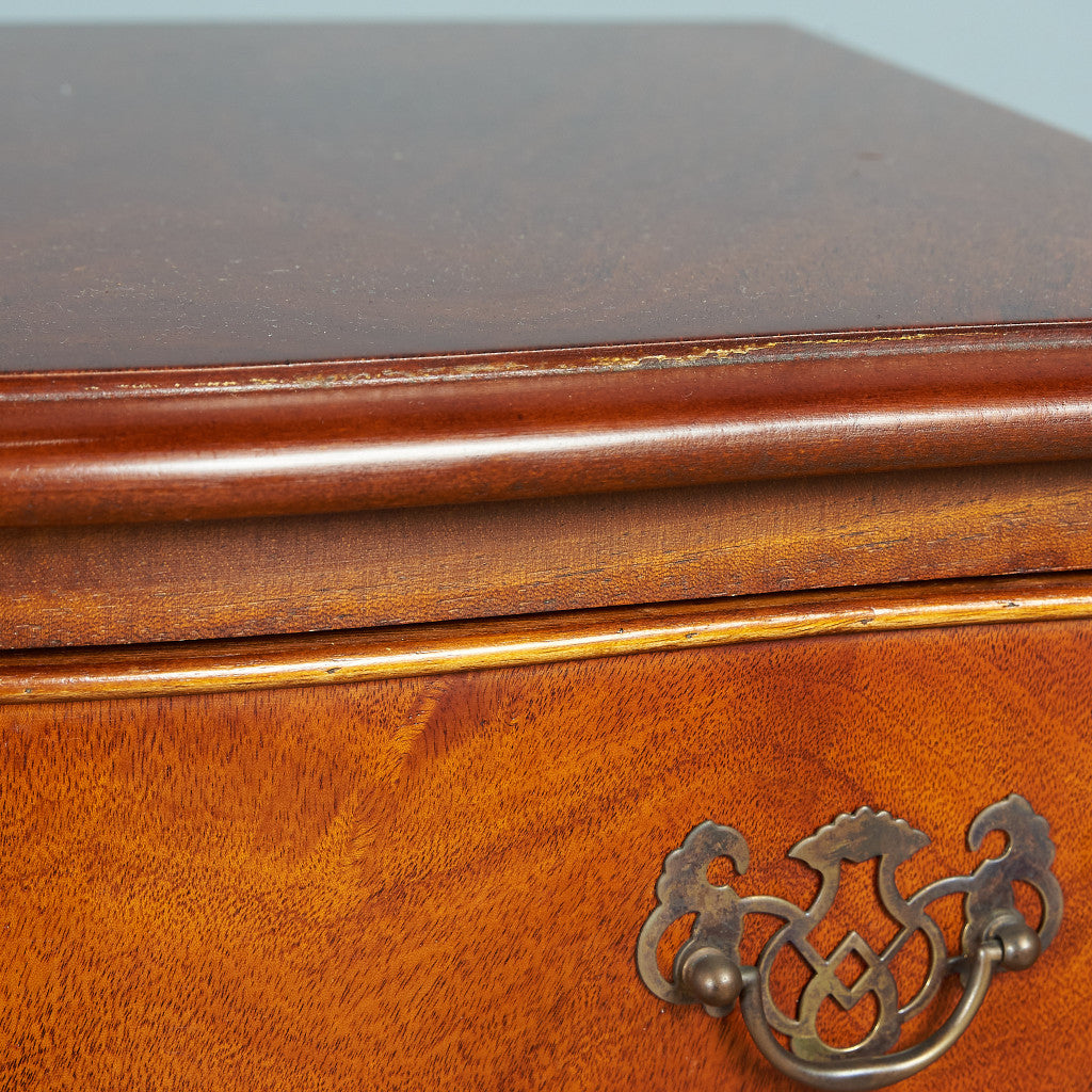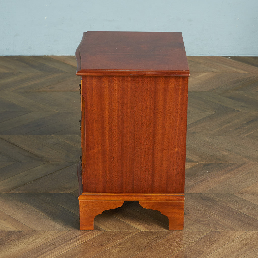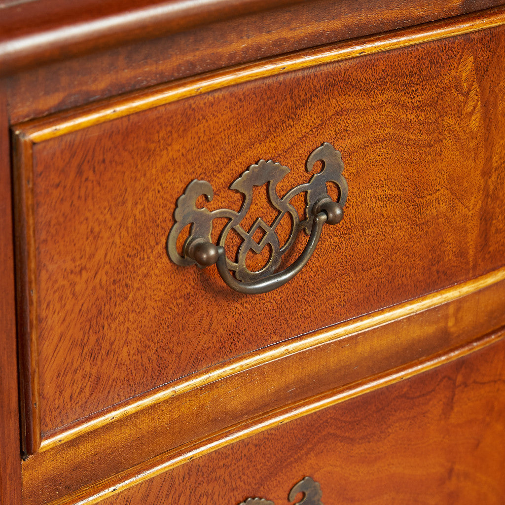 西欧の古き良き時代を感じる気品漂う上品なデザインのチェスト。実用性を重視したデザインにマホガニーの木目とクラシカルな金具がアクセントを添えるシンプルながらも存在感のあるチェストです。