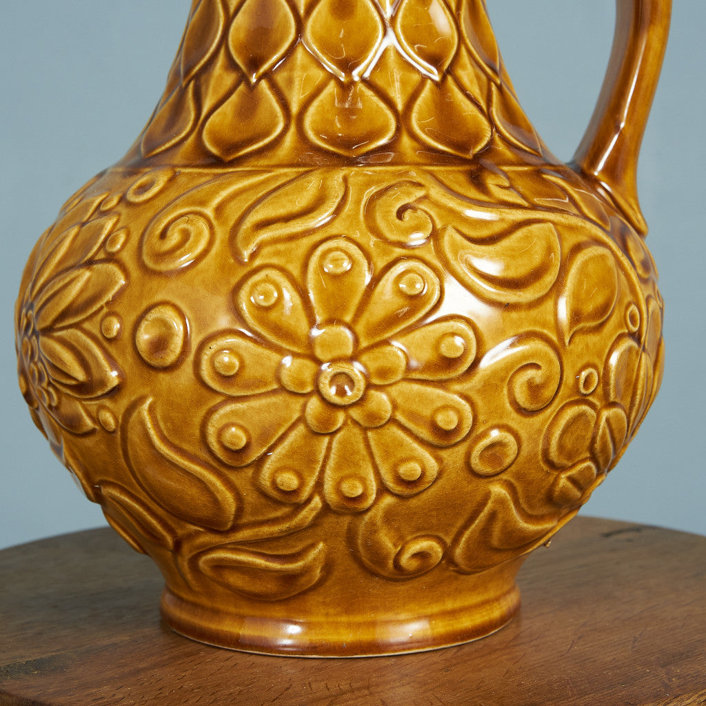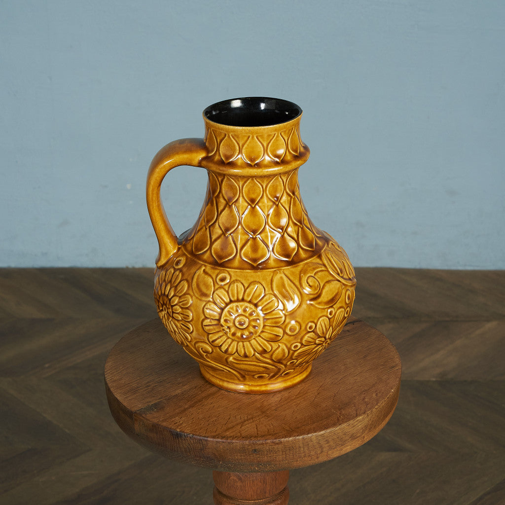 細部まで丁寧に施された模様や黄土色のあたたかな色味など、素朴で愛らしい佇まいが魅力のフラワーベース。花を飾るのはもちろん、インテリアのアクセントやショップディスプレイとしてもおすすめです。