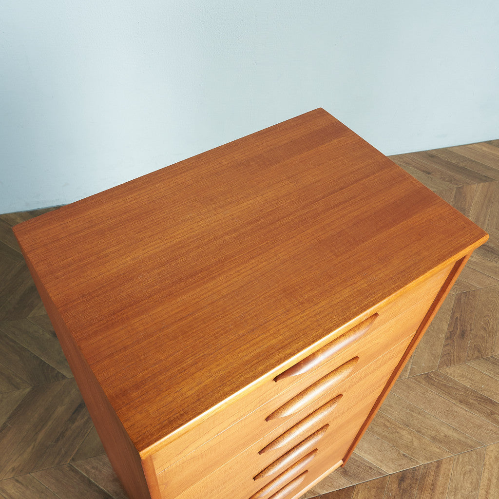 英国ミッドセンチュリー期の家具メーカー Austinsuite(オースティン・スイート)による、チーク材を使用したヴィンテージ6段チェストです。