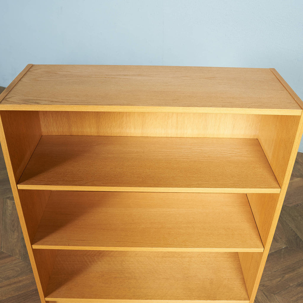 オーク材を使用した、オープン仕様のブックシェルフ。シンプルながらも細部に作り手のこだわりを感じるヴィンテージファニチャーです。コンパクトで使い勝手がよく、収納力に優れたお品です。
