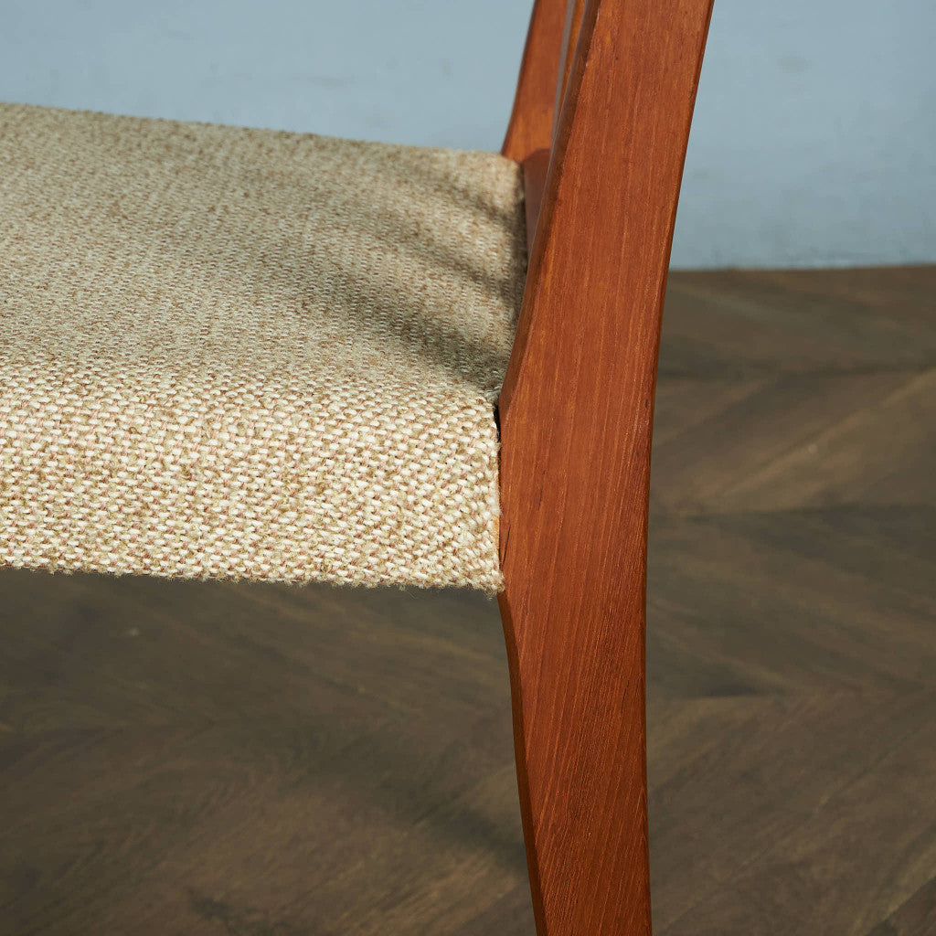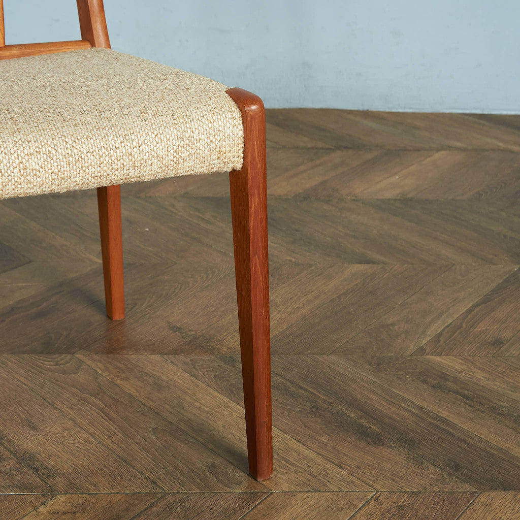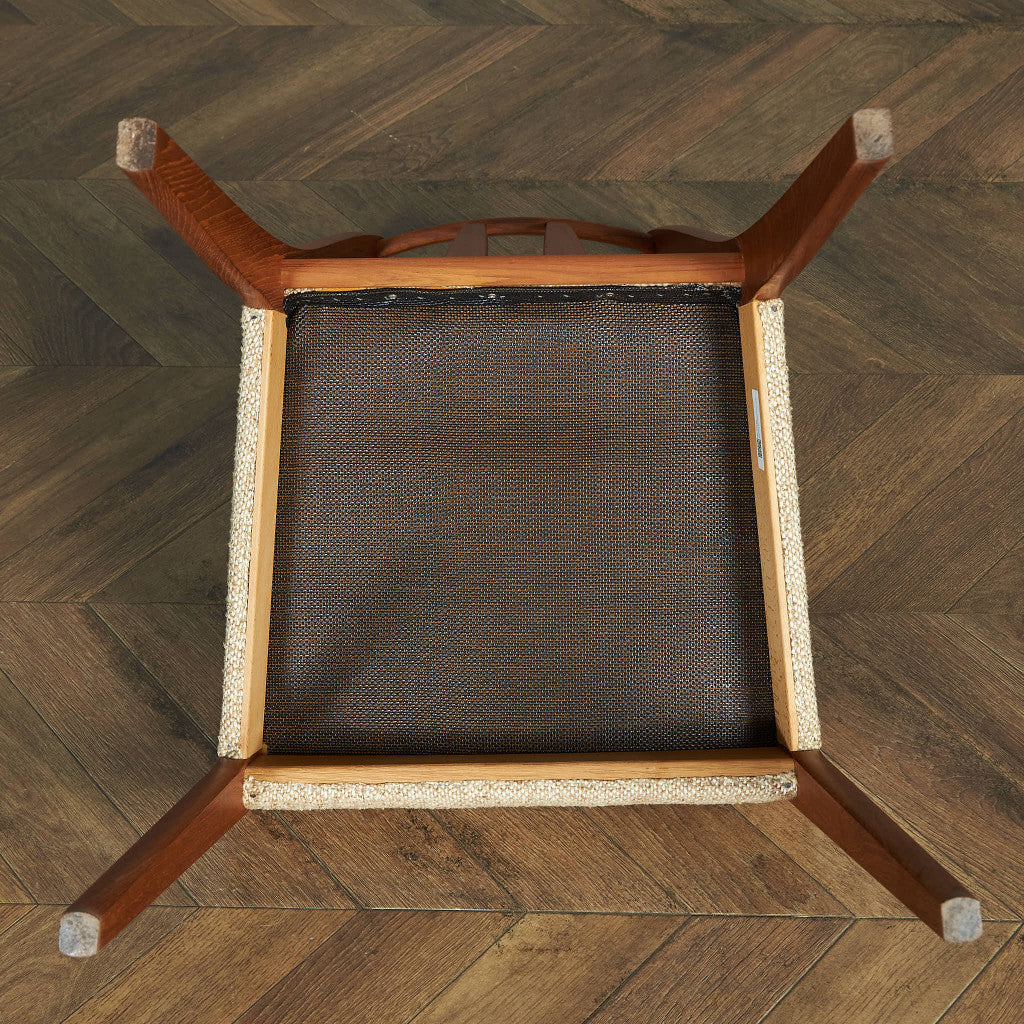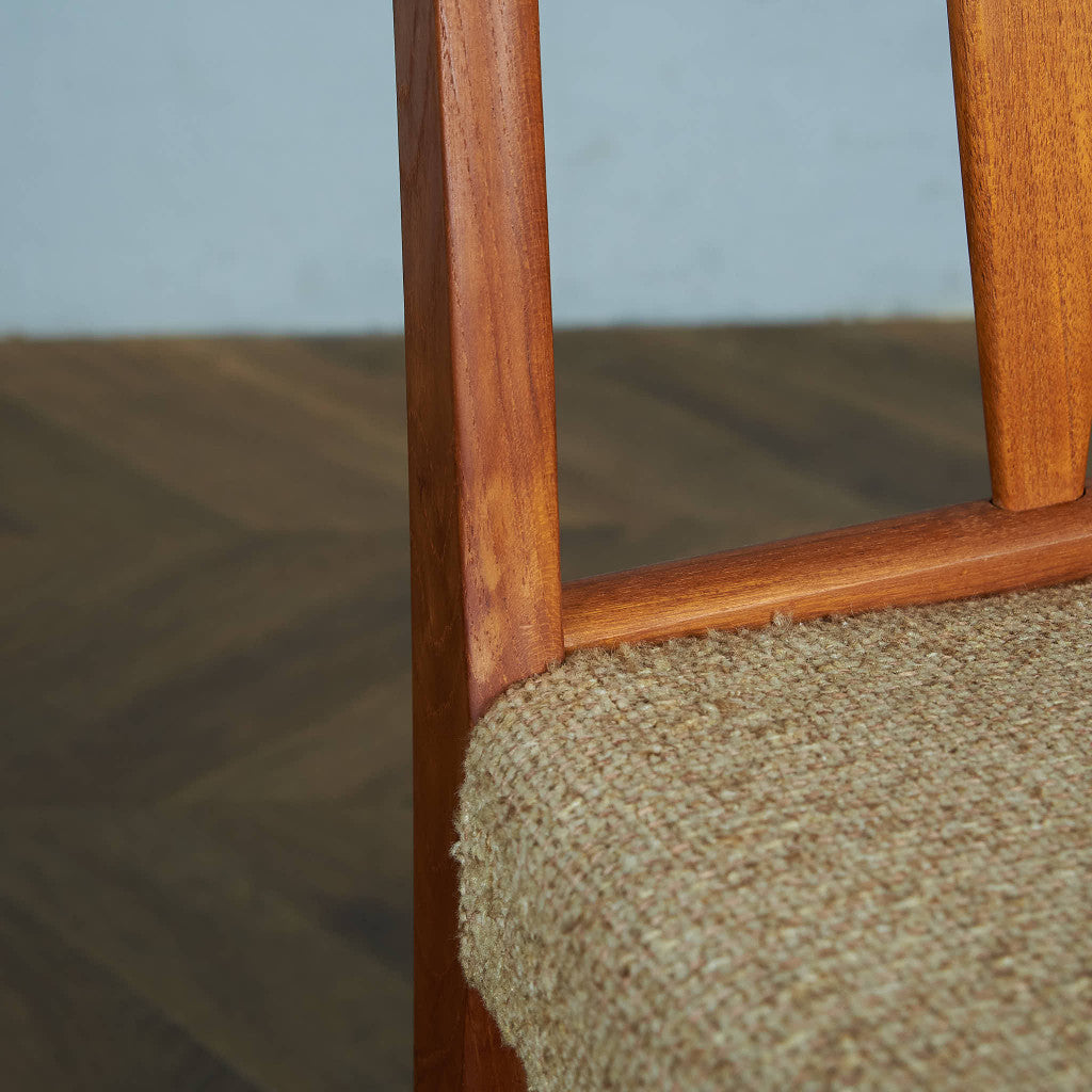 背もたれのディテールが印象的なダイニングチェア。実用的でありながらも作り手のこだわりを感じさせる、北欧デンマーク家具ならではの洗練されたデザインセンスが光るお品です。