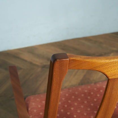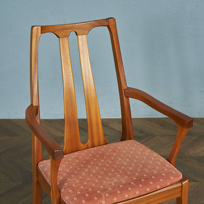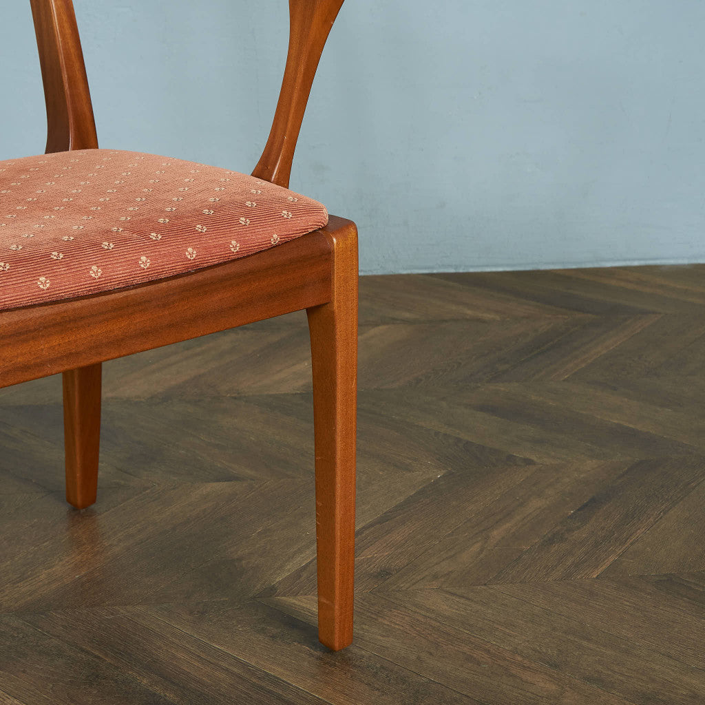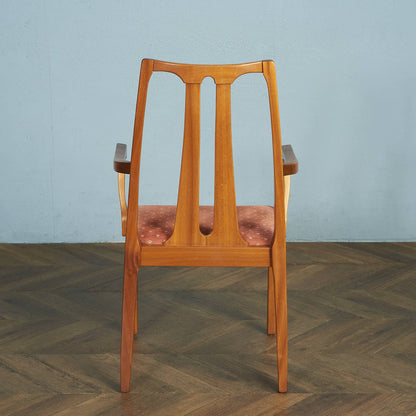 今では希少な高級材であるチーク材を使用した温かみのあるダイニングアームチェア。背もたれの緩やかなカーブが絶妙なフィット感を生み、快適な座り心地を実現しています。実用的でありながらも作り手のこだわりを感じさせる、英国ヴィンテージファニチャーです。
