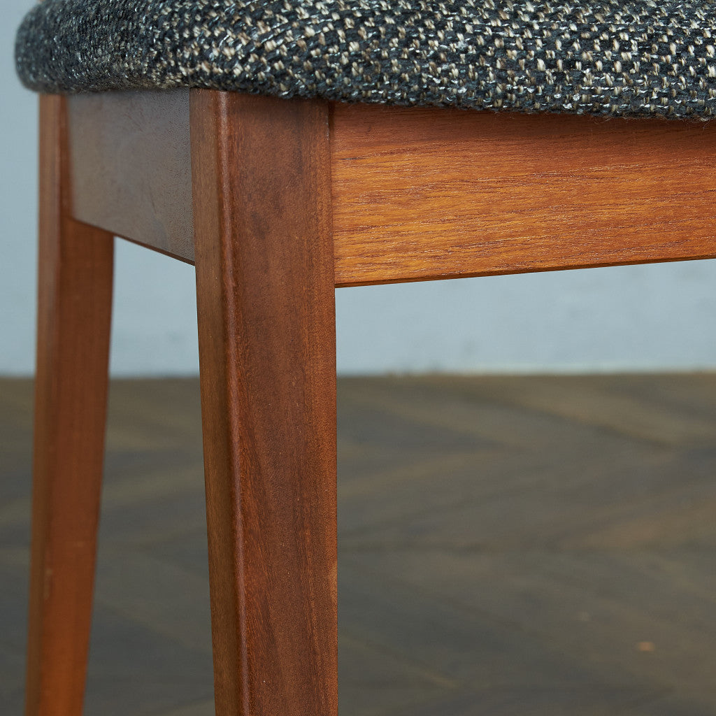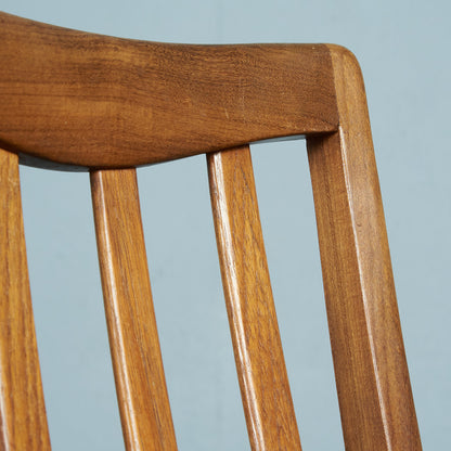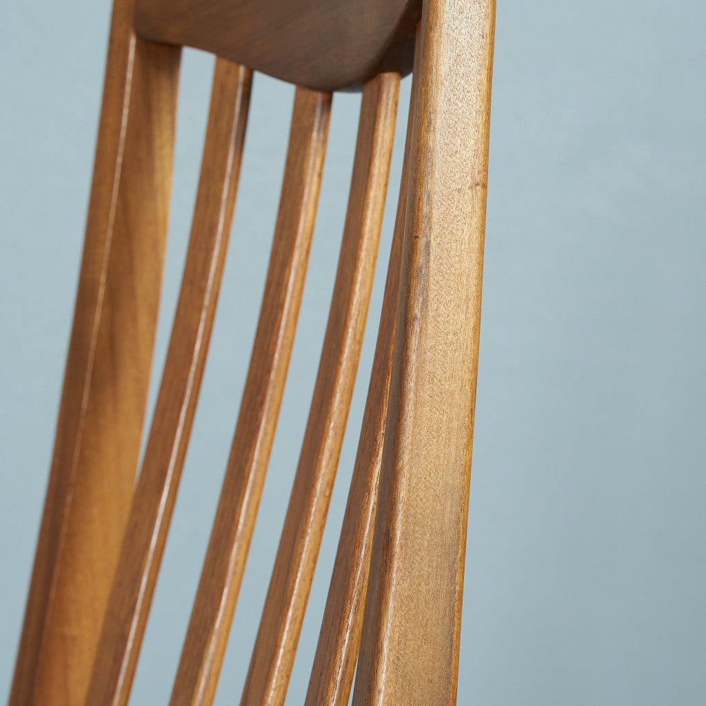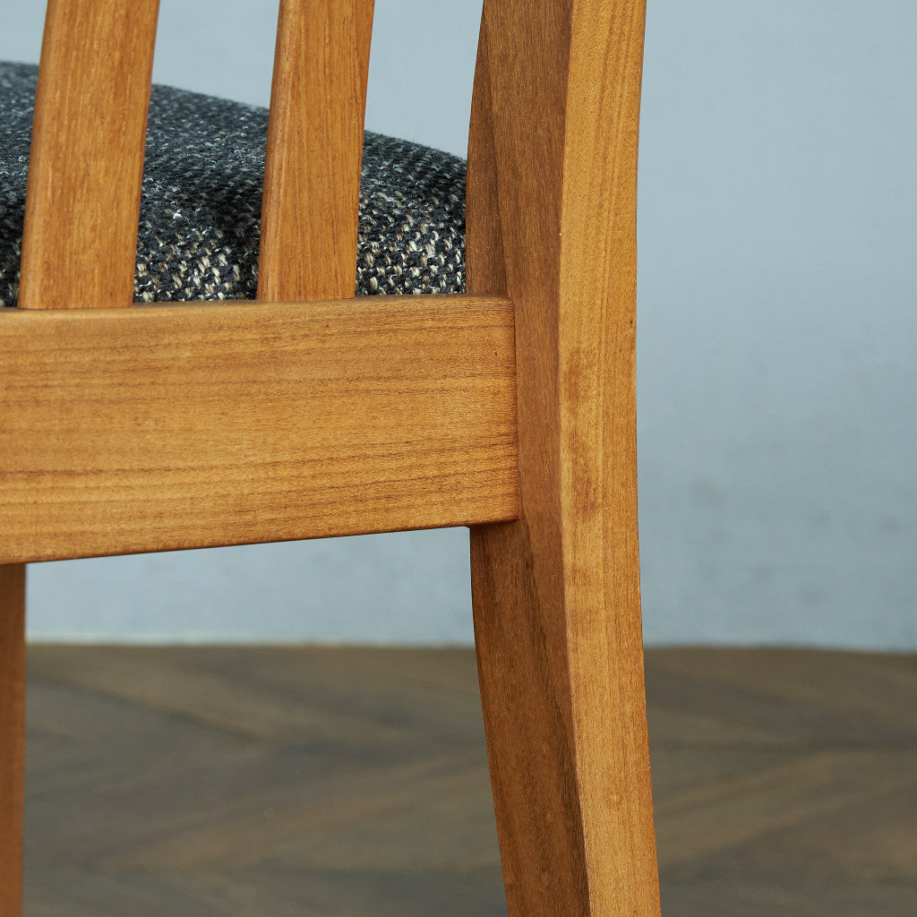 Leslie・G・ Dandy(レスリー・G・ダンディ)デザインのダイニングチェア。G-PLANを代表するチェアのひとつで、当時大ヒットした作品です。1972年の発売から1987年までの間、毎週2,000脚も製造されていました。スラット部分に明るい褐色のチーク材を使用、緩めのカーブが繊細さを感じさせつつも、シャープな印象になりすぎない、特別な魅力のあるチェアです。