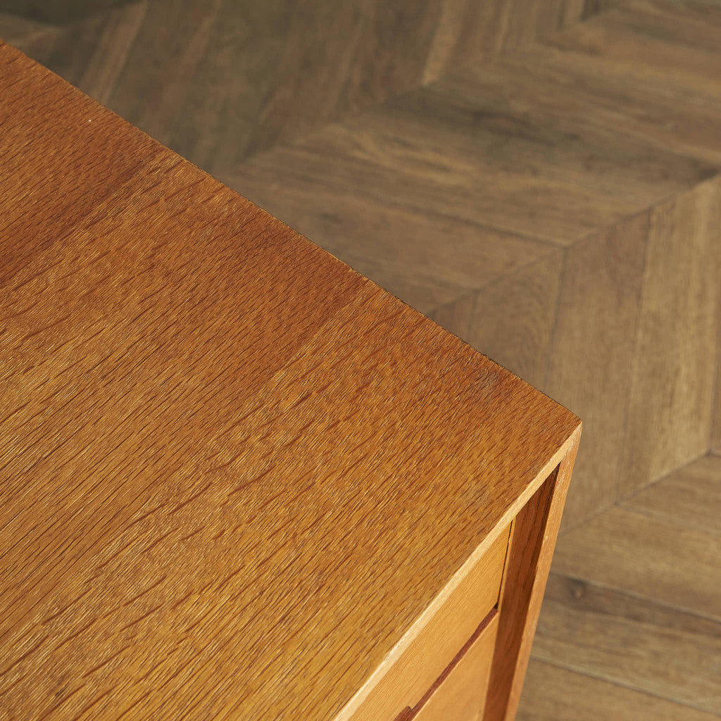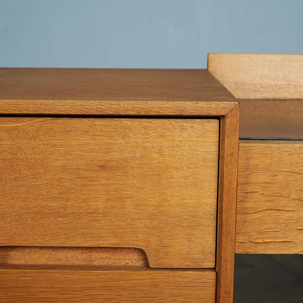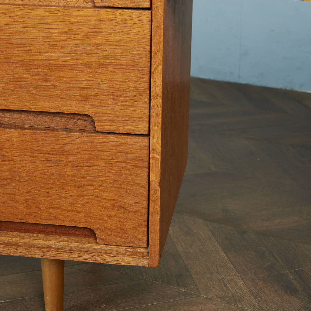 良質なオーク材使用の、洗練された佇まいが映えるドレッシングデスク。元々はドレッサーとして製造されたと思われますが、ミラーが無いので一般的なデスクとしてご使用いただけます。シンプルながらもデザイン製の高い印象的なお品です