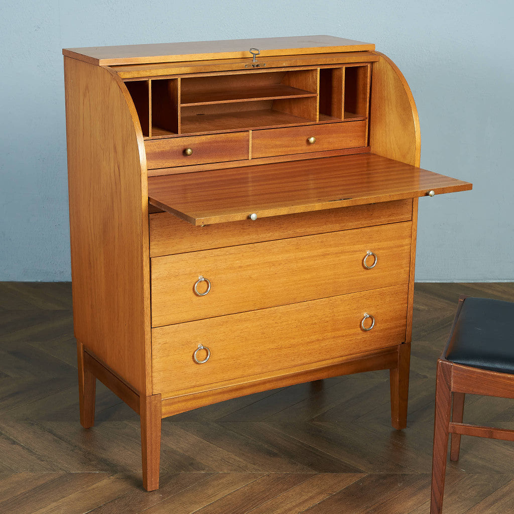 英国ミッドセンチュリー期を代表するブランドの一つ Remploy(レンプロイ)による、ロールトップ ライティングビューローです。