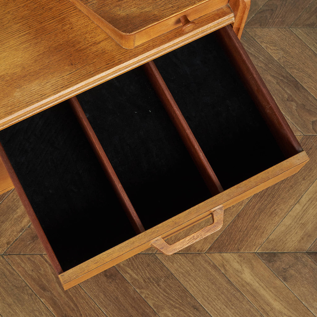 ジープラン最初のシリーズである1953年発表の「Brandon(ブランドン)」シリーズ。トーラ材又はオーク材を用い、丸みの少ない角ばったフォルムが特徴。明るい色合いとミッドセンチュリー期ならではの色気のあるレトロモダンの雰囲気が魅力です。