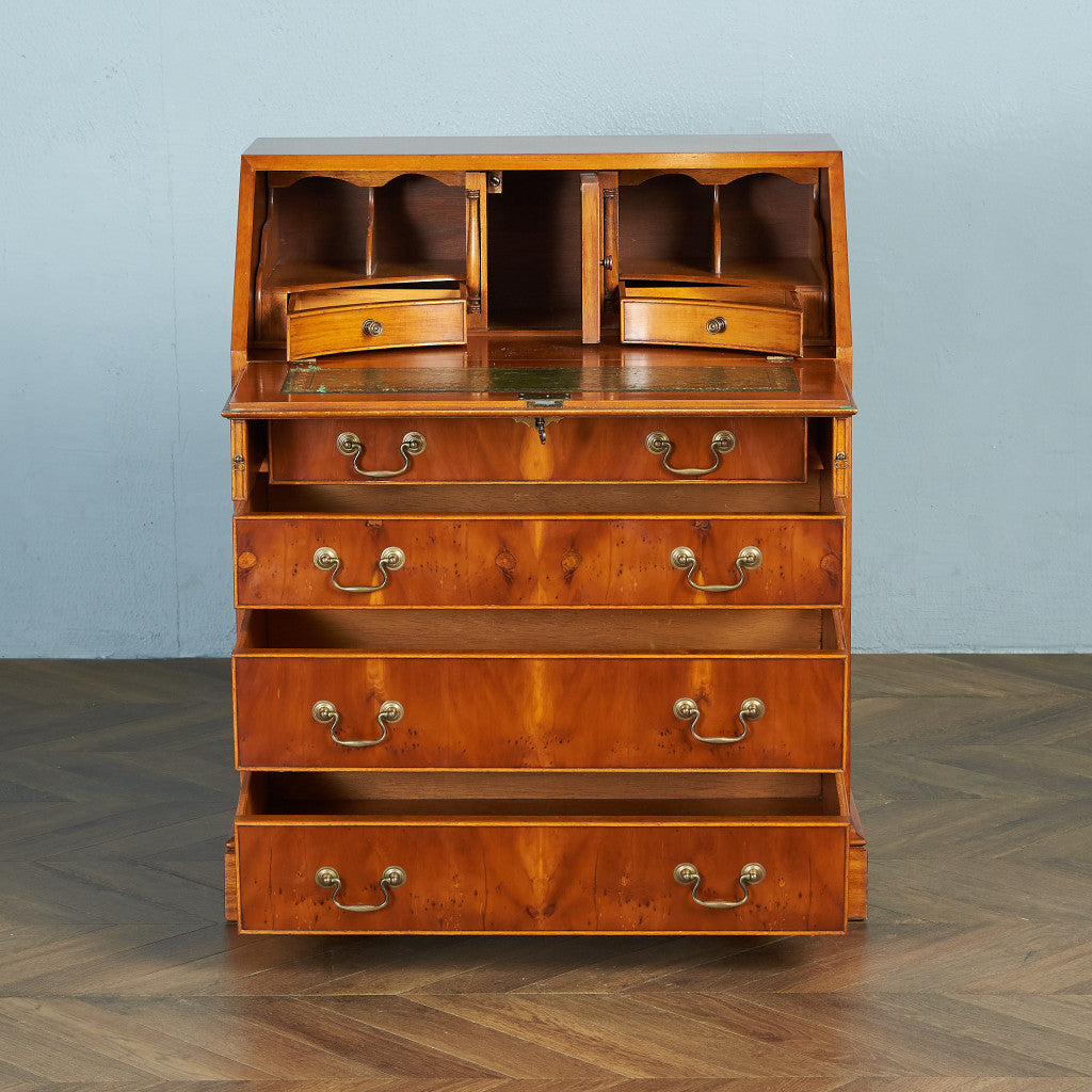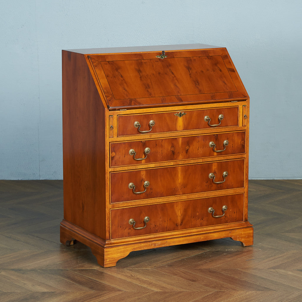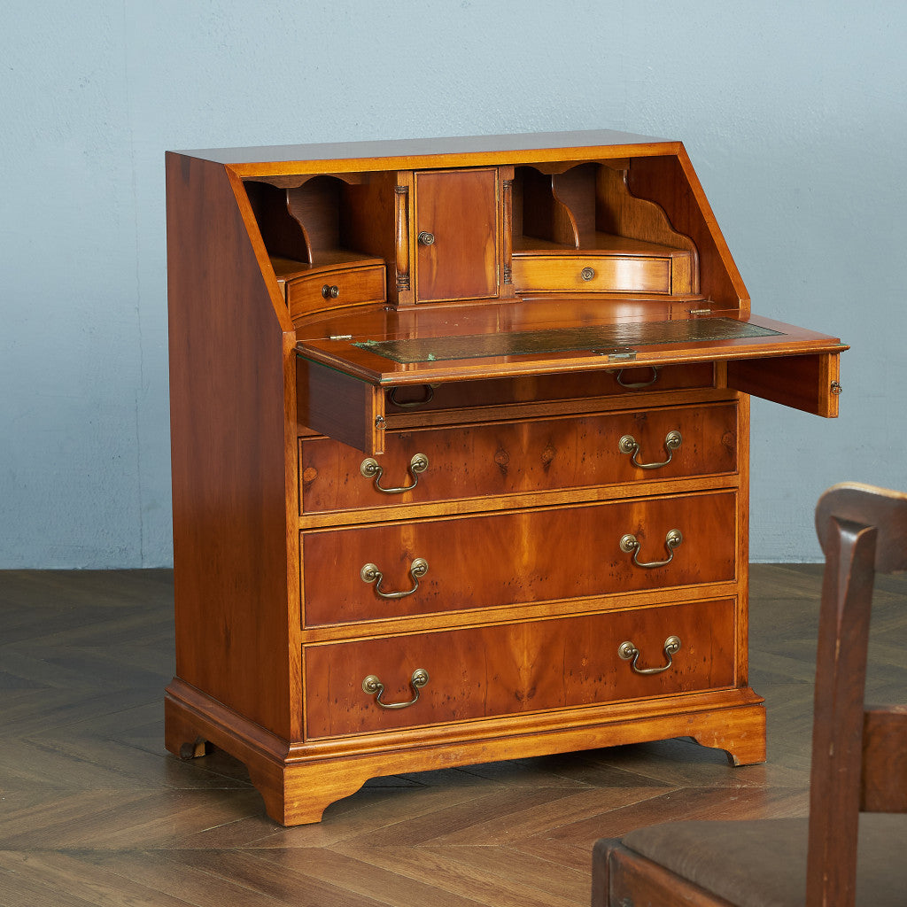 美しい木目の希少なイチイ材を使用したライティングビューロー。趣のある金具取っ手や古き良き西欧の伝統を感じさせるクラシカルなデザインが魅力の一品です。