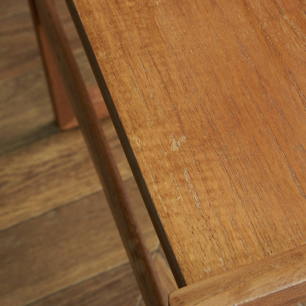 フランスのスクエア(四角)になって踊る古典舞踊、Quadrilleの名前を冠する1965年発表のG-PLAN Quadrilleシリーズ。Frescoシリーズと同じく60年代のデンマークデザインを源泉にもち、美しい褐色のチーク材を使用。四方を面取りされた樽型取手、内側に緩やかな弧を描き外形を四角に組まれた美しい形状の脚が特徴です。