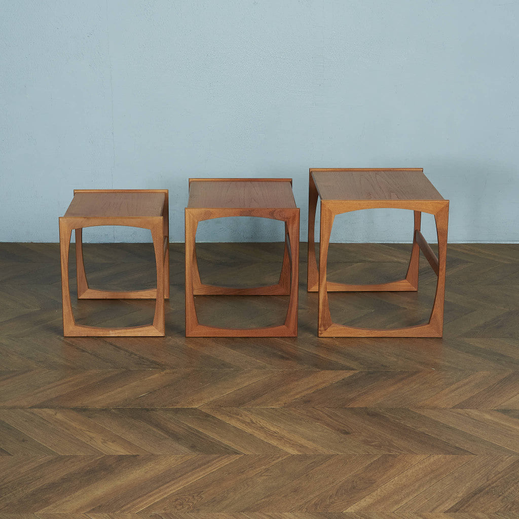イギリスのミッドセンチュリーを代表するブランド G-PLAN(ジープラン) による、Roger Bennett(ロジャー・ベネット) デザイン、Quadrille(クヮドリール) ネストテーブルです。