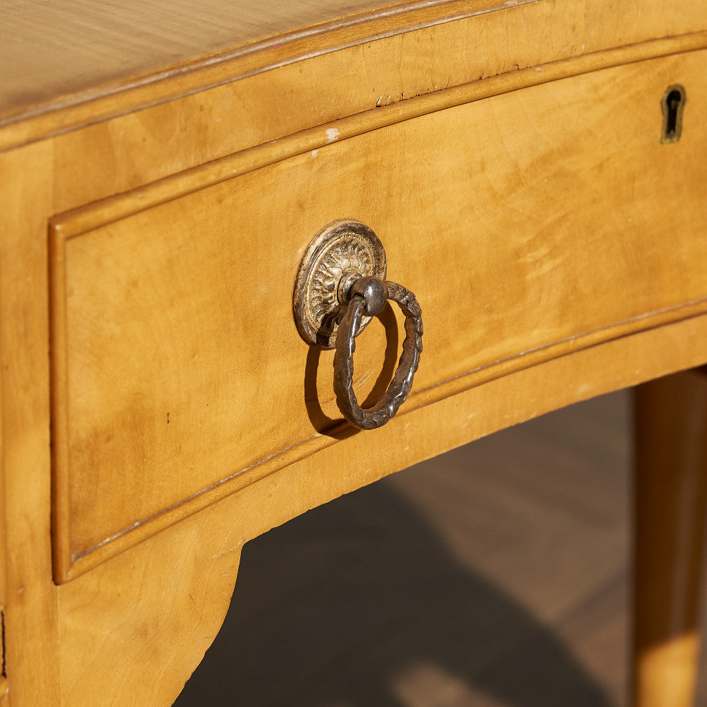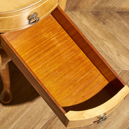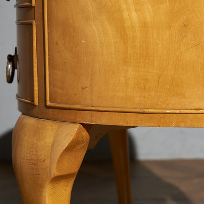 優雅な曲線を描く、美しいフォルムが印象的。なめらかな猫脚や繊細な金具取っ手など上質なディテールを備えたエレガントな佇まいが魅力です。古き良き西欧の伝統を感じさせるクラシカルなデザイン、程よく古びた風合いが素朴で優しい雰囲気を演出します。