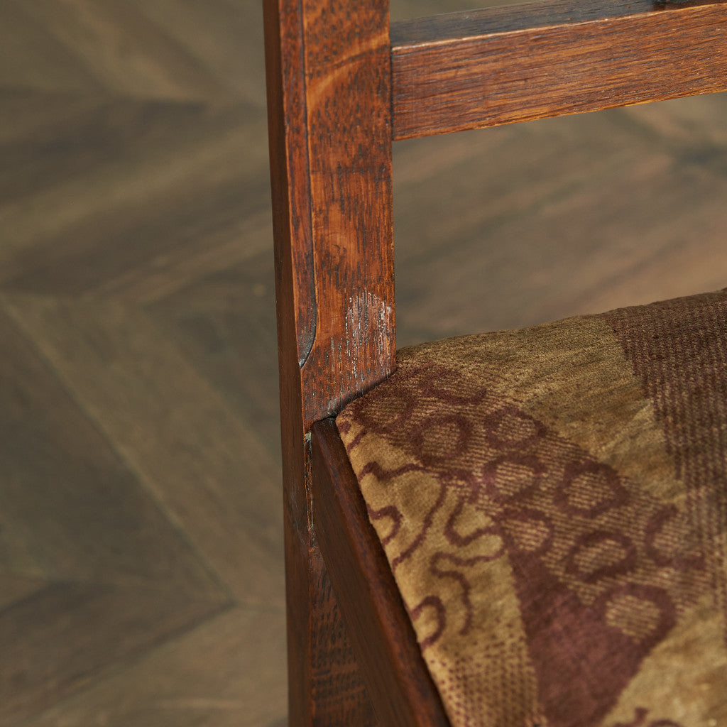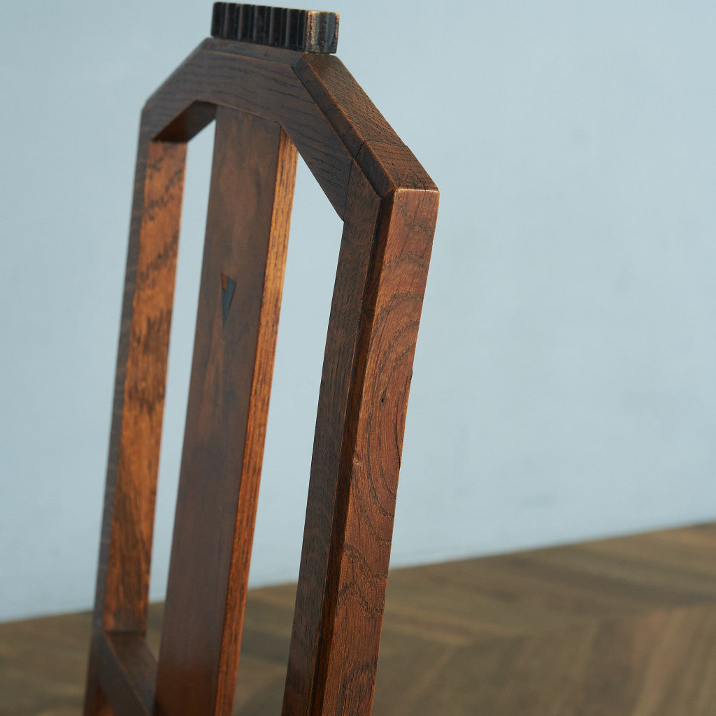 随所に美しいディテールを備えたエレガントな佇まいが魅力的。オーク材の心地よい温もり、程よく古びた風合いが素朴で優しい雰囲気を演出します。ダイニングチェアとしてはもちろん、書斎・勉強部屋のデスクチェアとしてもおすすめです。