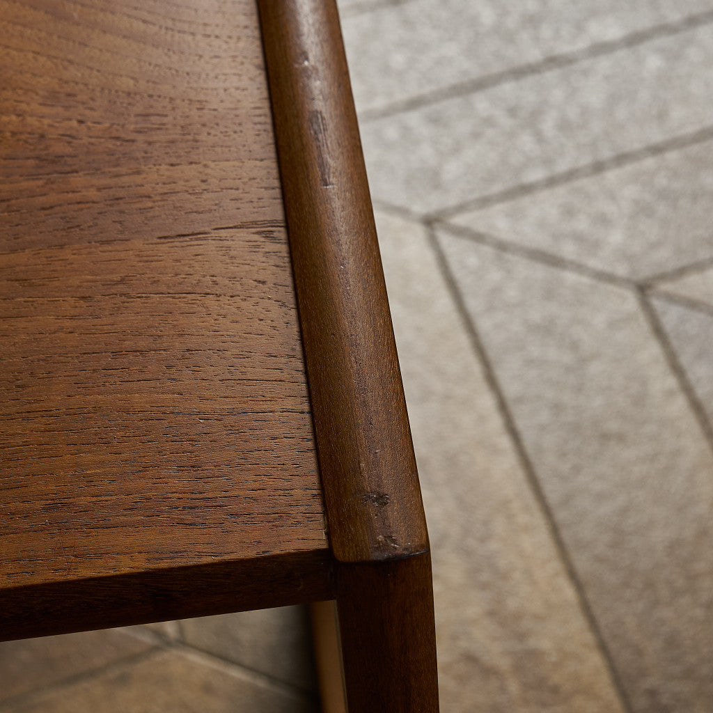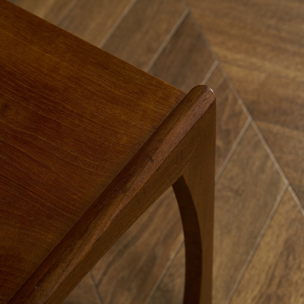 フランスのスクエア(四角)になって踊る古典舞踊、Quadrilleの名前を冠する1965年発表のG-PLAN Quadrilleシリーズ。Frescoシリーズと同じく60年代のデンマークデザインを源泉にもち、美しい褐色のチーク材を使用。四方を面取りされた樽型取手、内側に緩やかな弧を描き外形を四角に組まれた美しい形状の脚が特徴です。