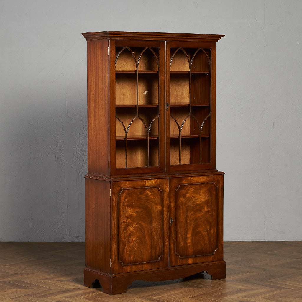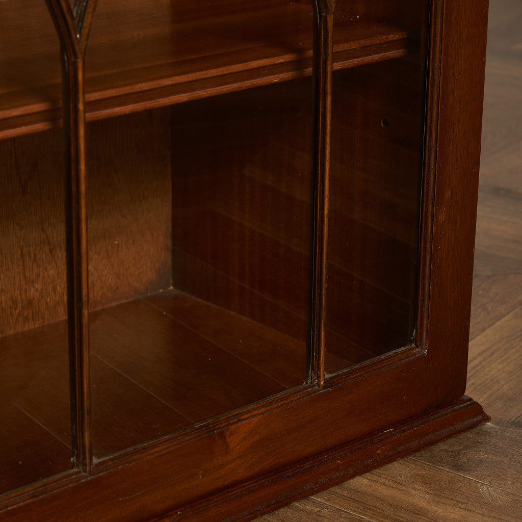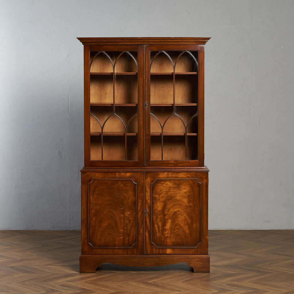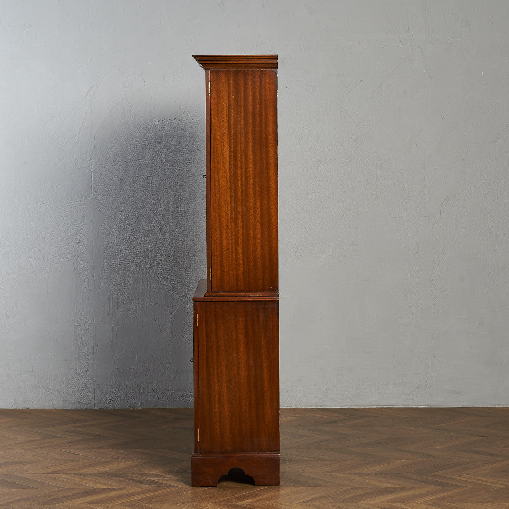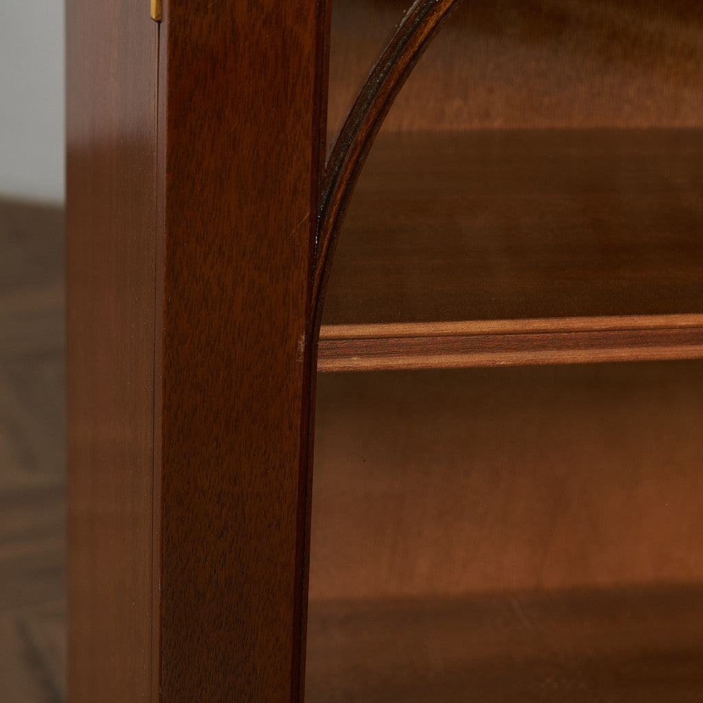美しい木目のマホガニー材を使用した、優雅な佇まいのブックケース。細部まで施された装飾など洗練されたディテールが魅力です。本の収納以外にも食器やコレクションのディスプレイなど、飾り棚としてお使い頂いても素敵な一品です。
