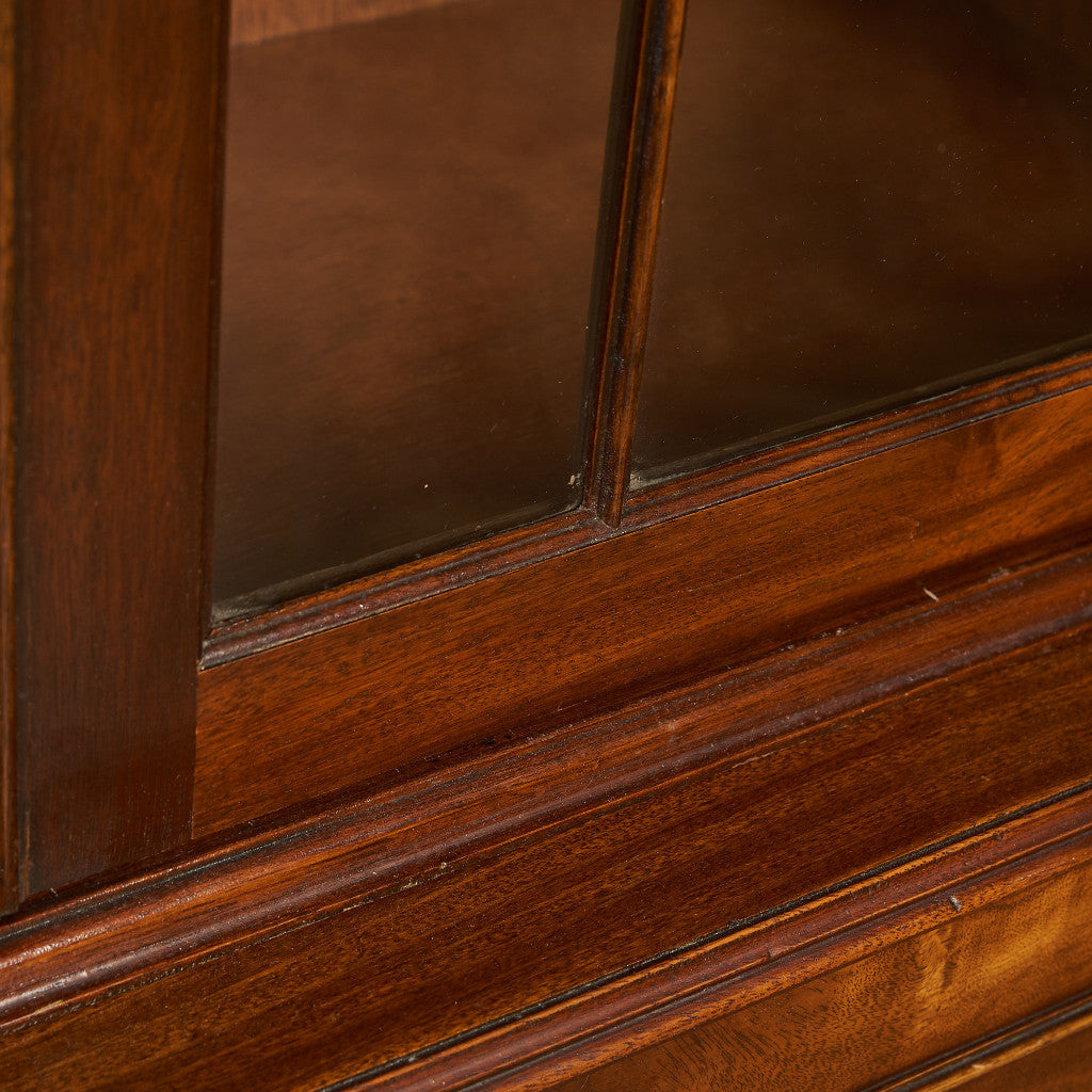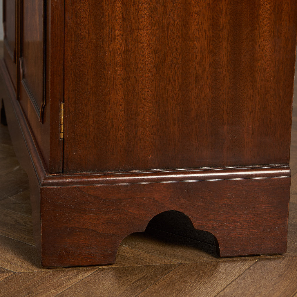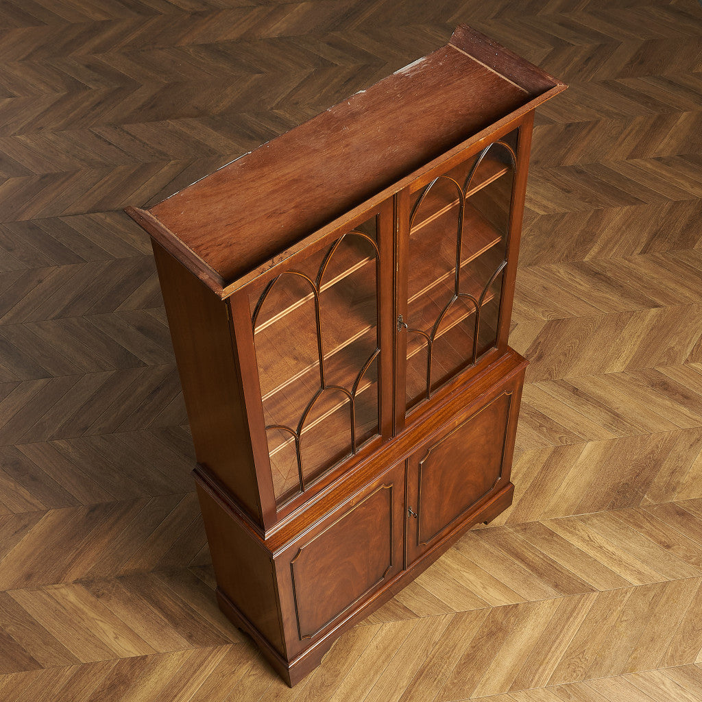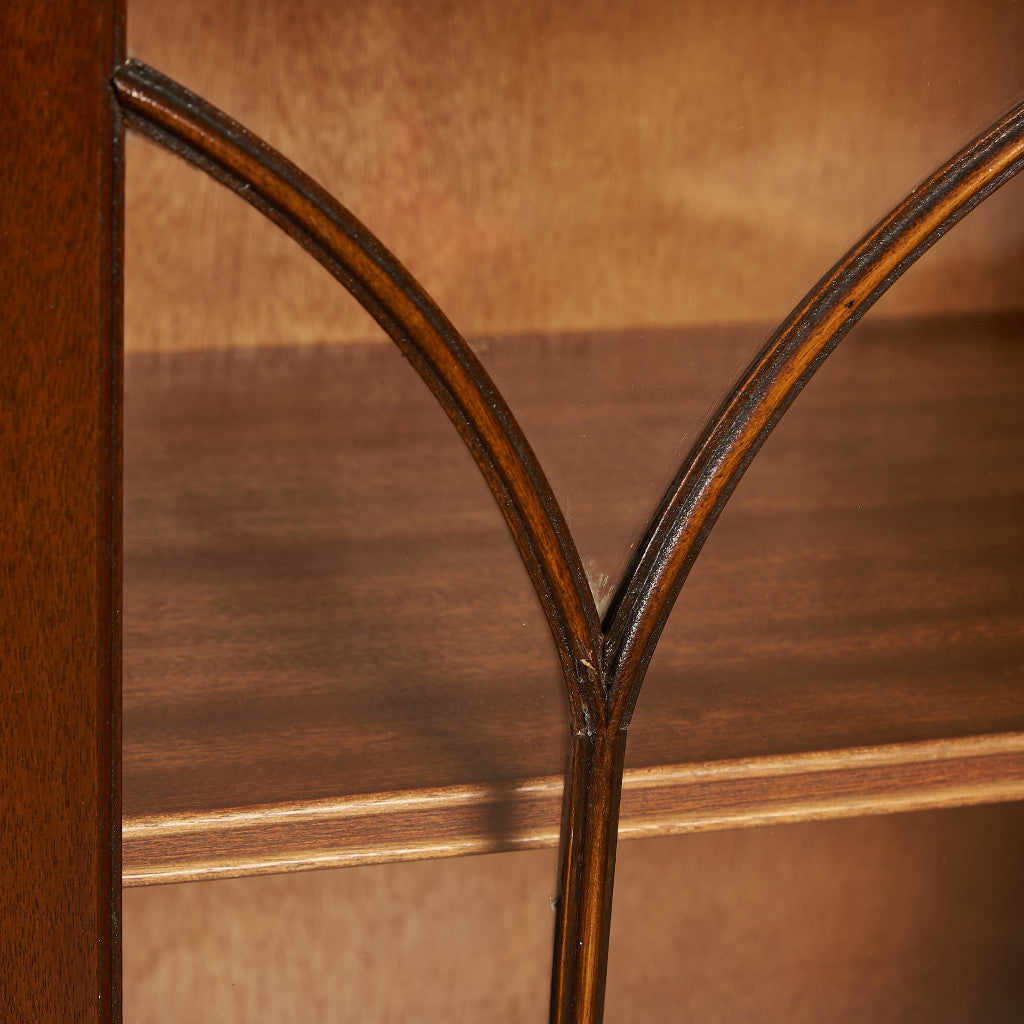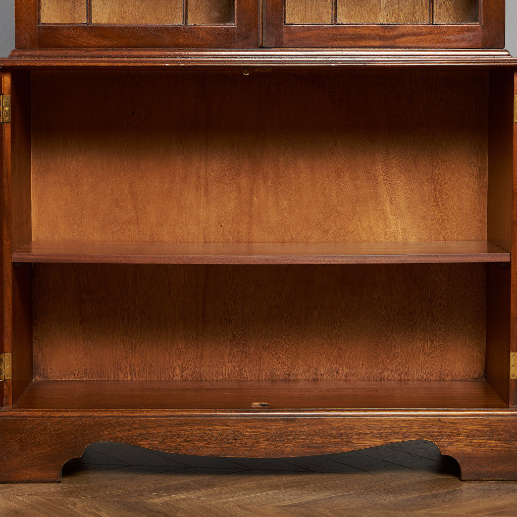 美しい木目のマホガニー材を使用した、優雅な佇まいのブックケース。細部まで施された装飾など洗練されたディテールが魅力です。本の収納以外にも食器やコレクションのディスプレイなど、飾り棚としてお使い頂いても素敵な一品です。