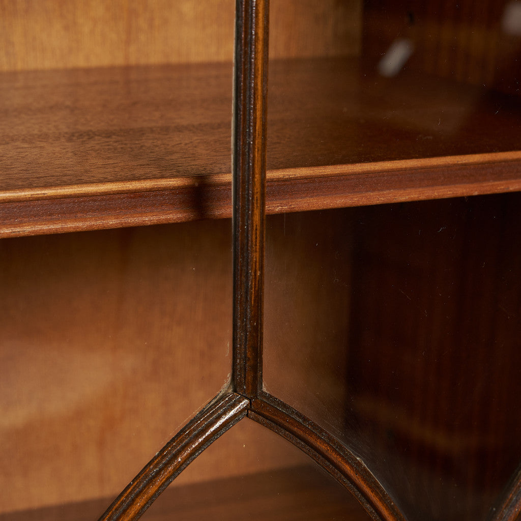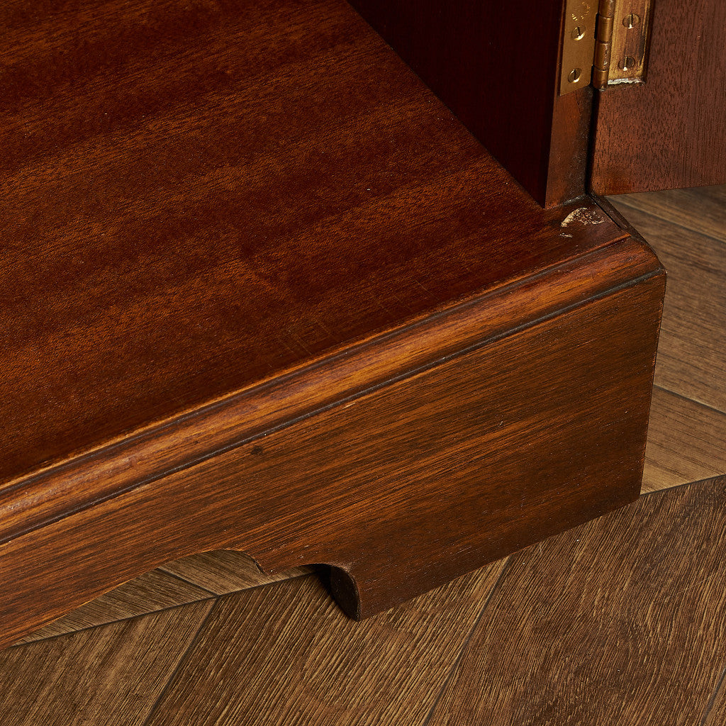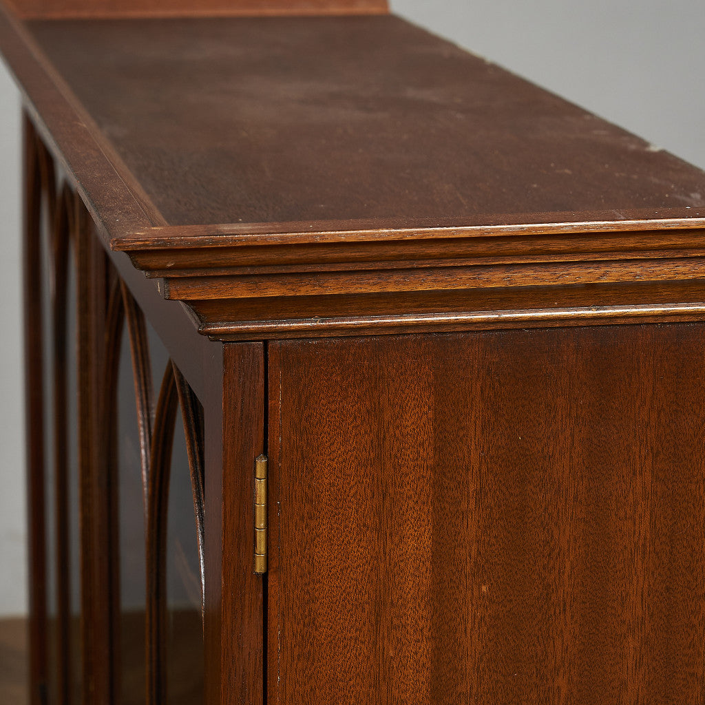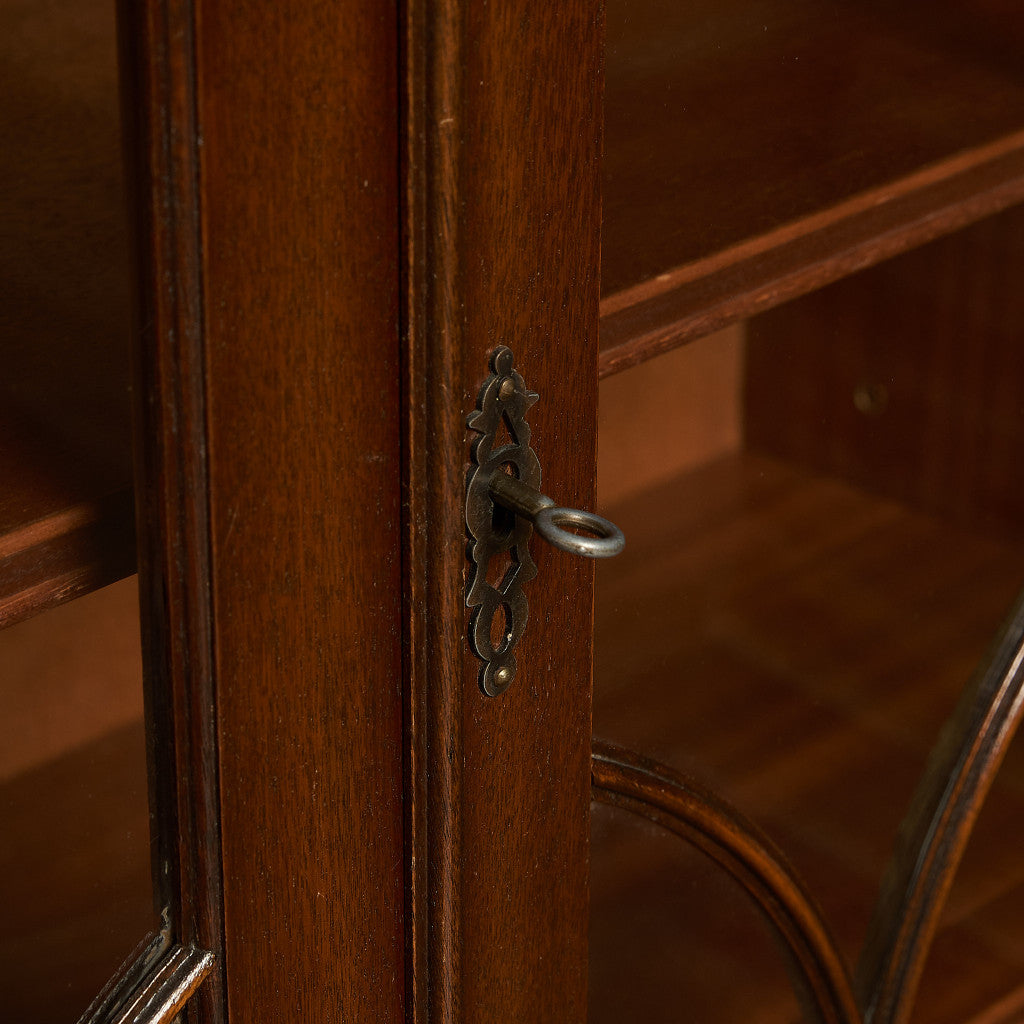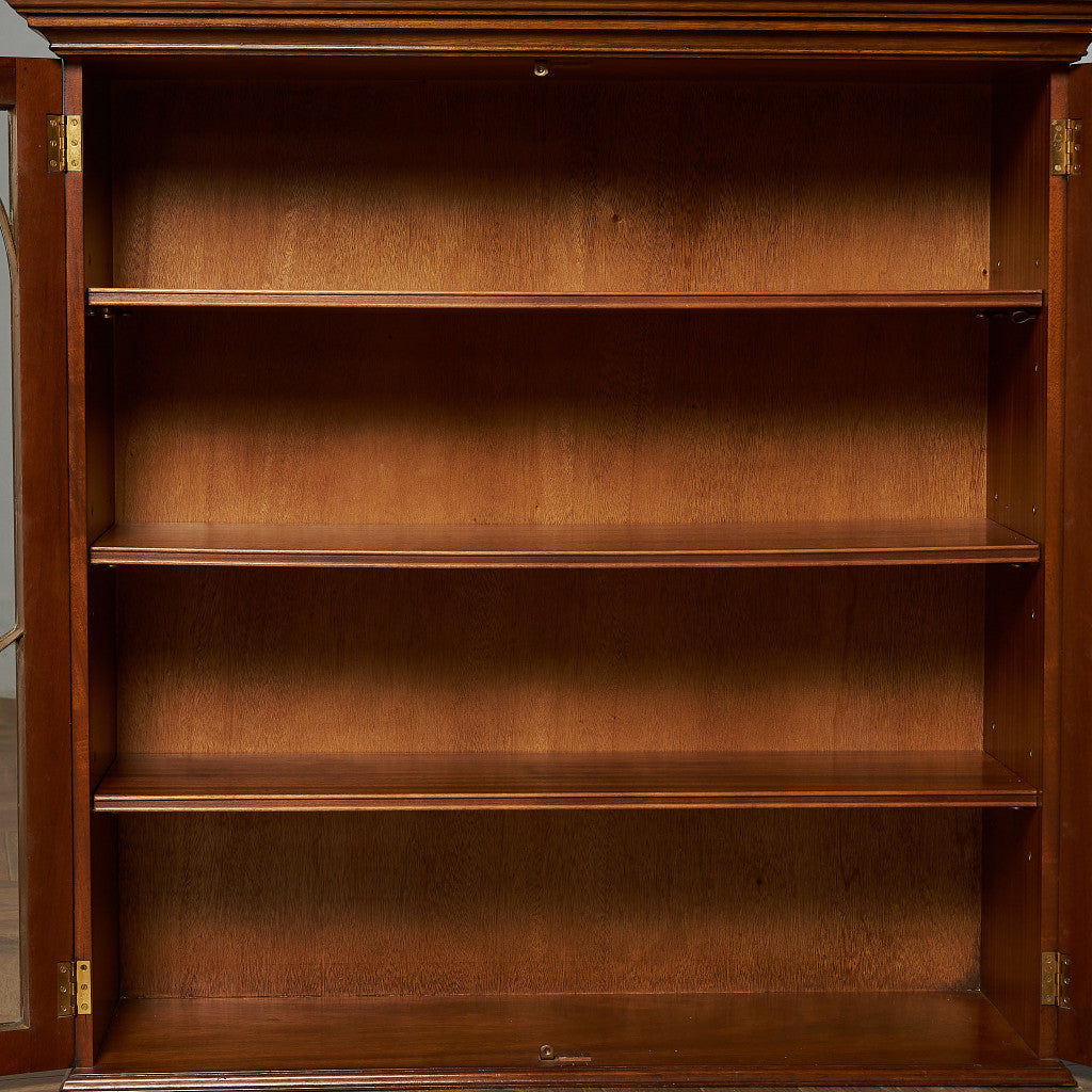 美しい木目のマホガニー材を使用した、優雅な佇まいのブックケース。細部まで施された装飾など洗練されたディテールが魅力です。本の収納以外にも食器やコレクションのディスプレイなど、飾り棚としてお使い頂いても素敵な一品です。