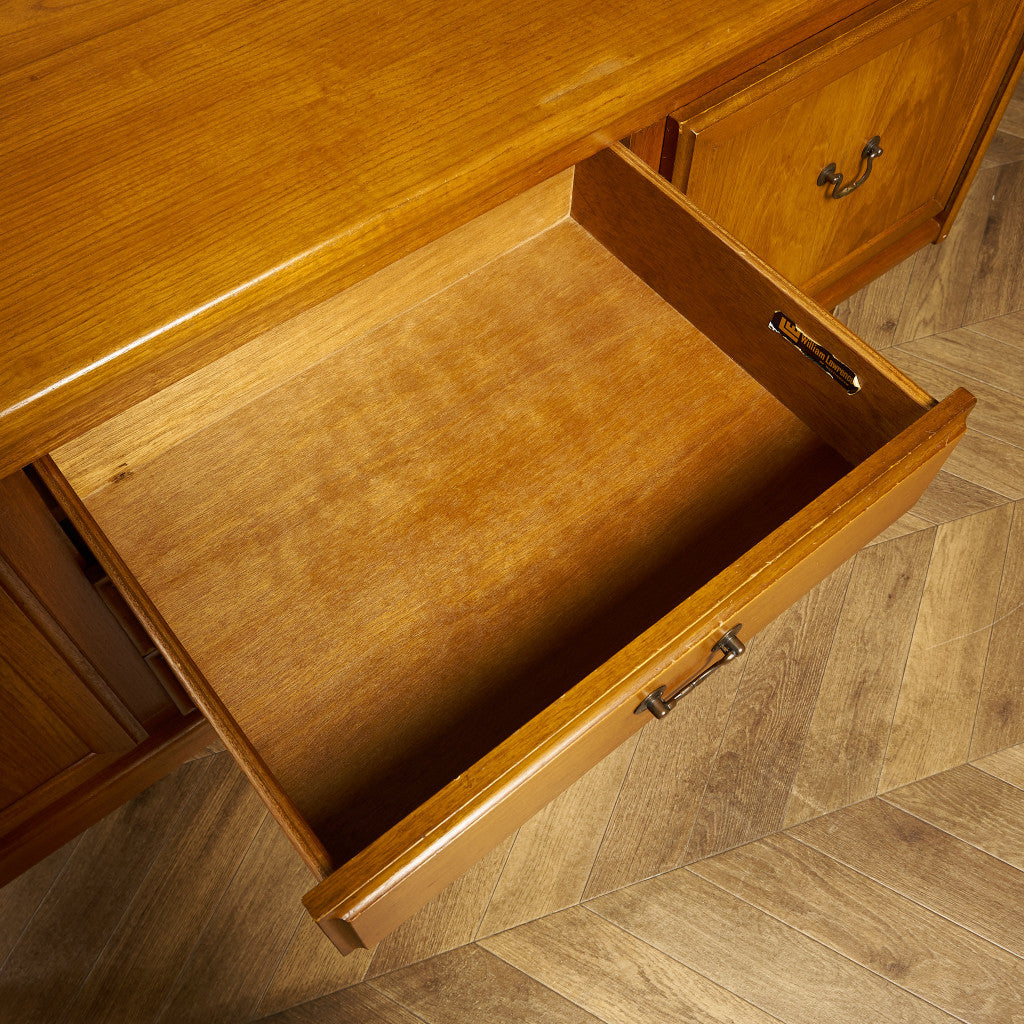 今では希少な高級材であるチーク材を使用した、温かみのある褐色の木肌が美しいサイドボード。実用的でありながらも作り手のこだわりを感じさせる、英国トップブランドWilliam Lawrenceらしい、上質なお品です。