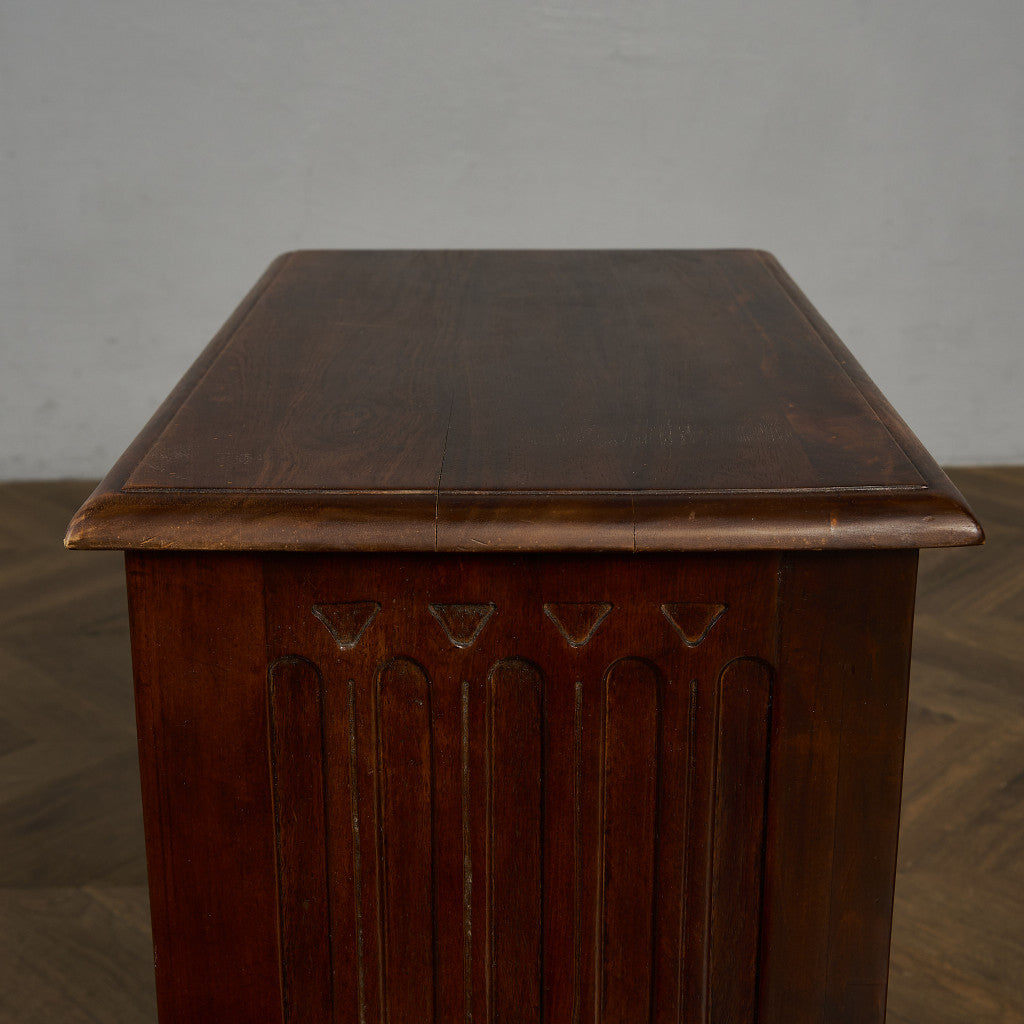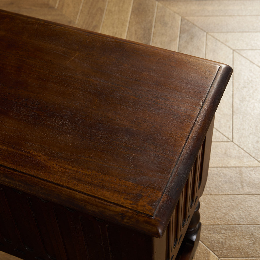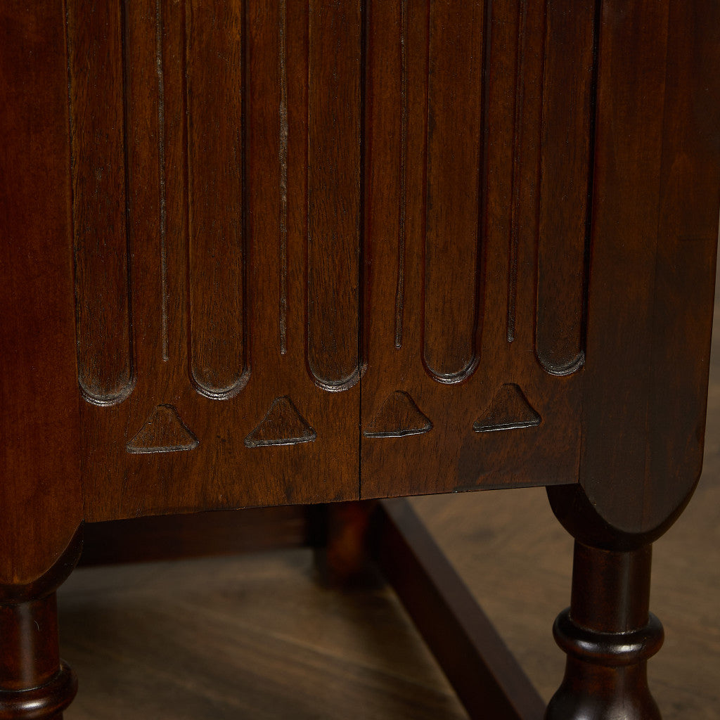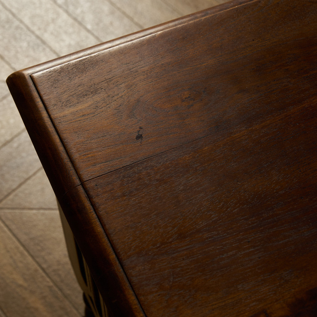 繊細なディテールを備えたクラシカルなデザインが魅力のサイドテーブル。古き良き西欧の伝統を感じさせる上質な一品です。リビングのサイドテーブルや寝室に置くナイトテーブルとしてはもちろん、小物収納にも便利なお品です。