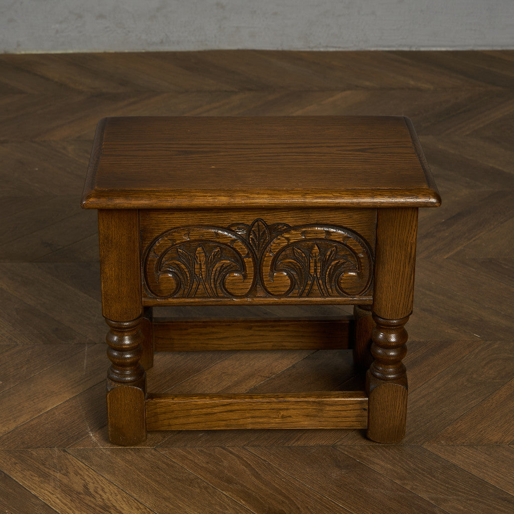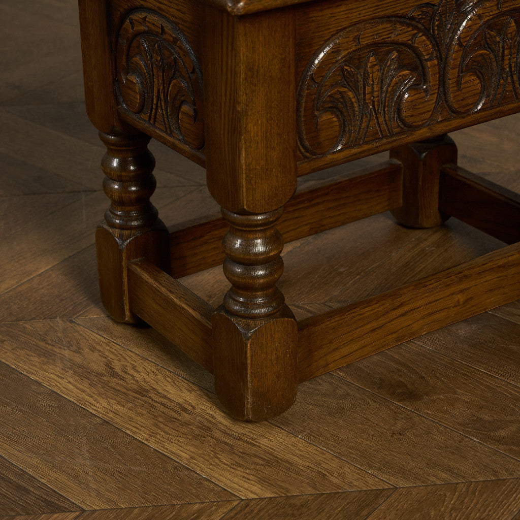 力強い木目のオーク材を用い、英国伝統様式を忠実に再現。玄関スペース等でスツールとしてお使いいただくのはもちろん、小物収納にも便利なお品です。