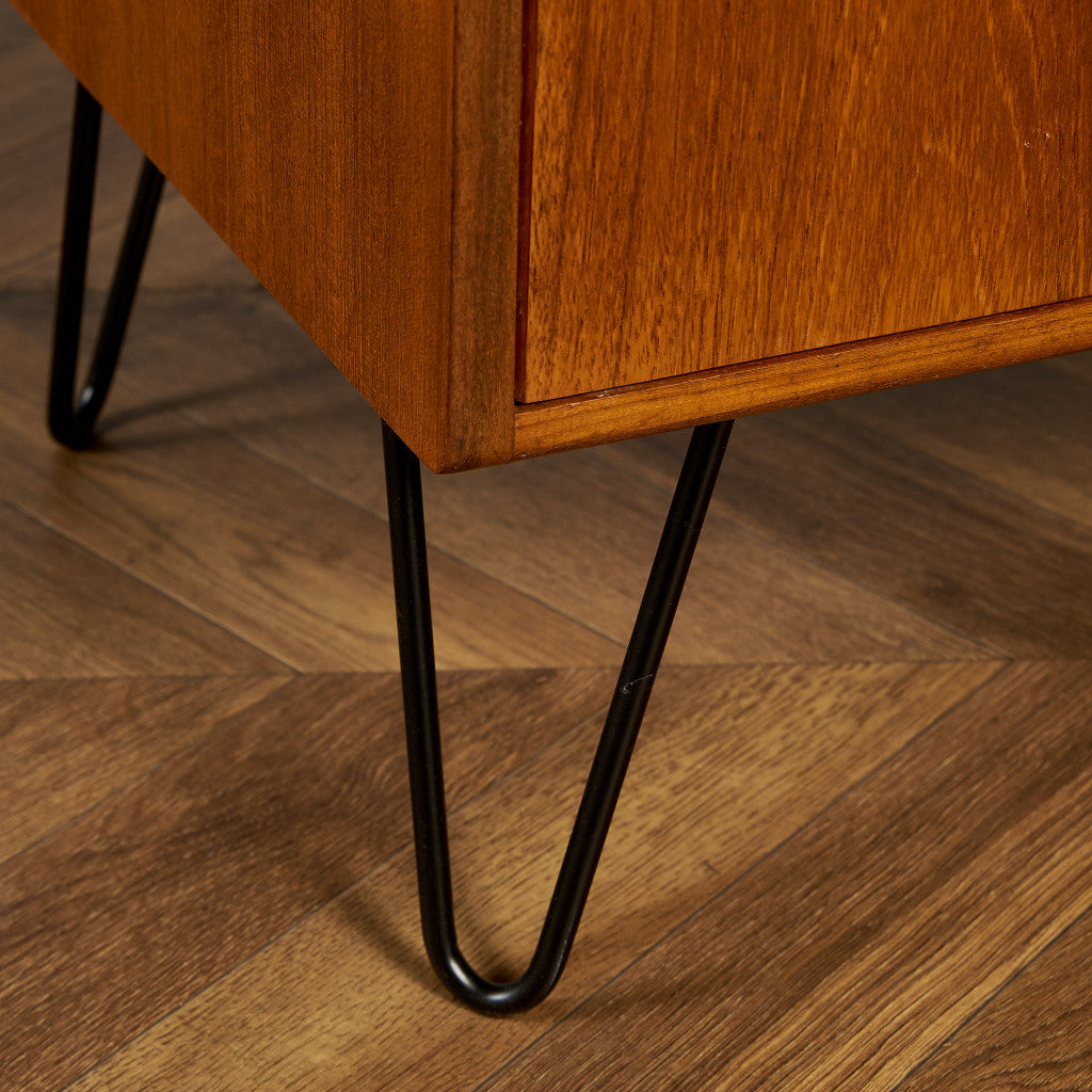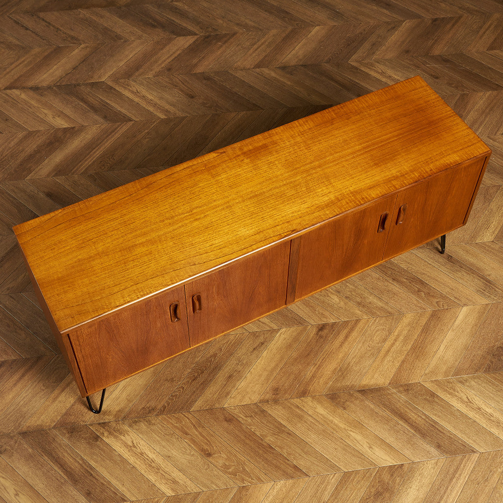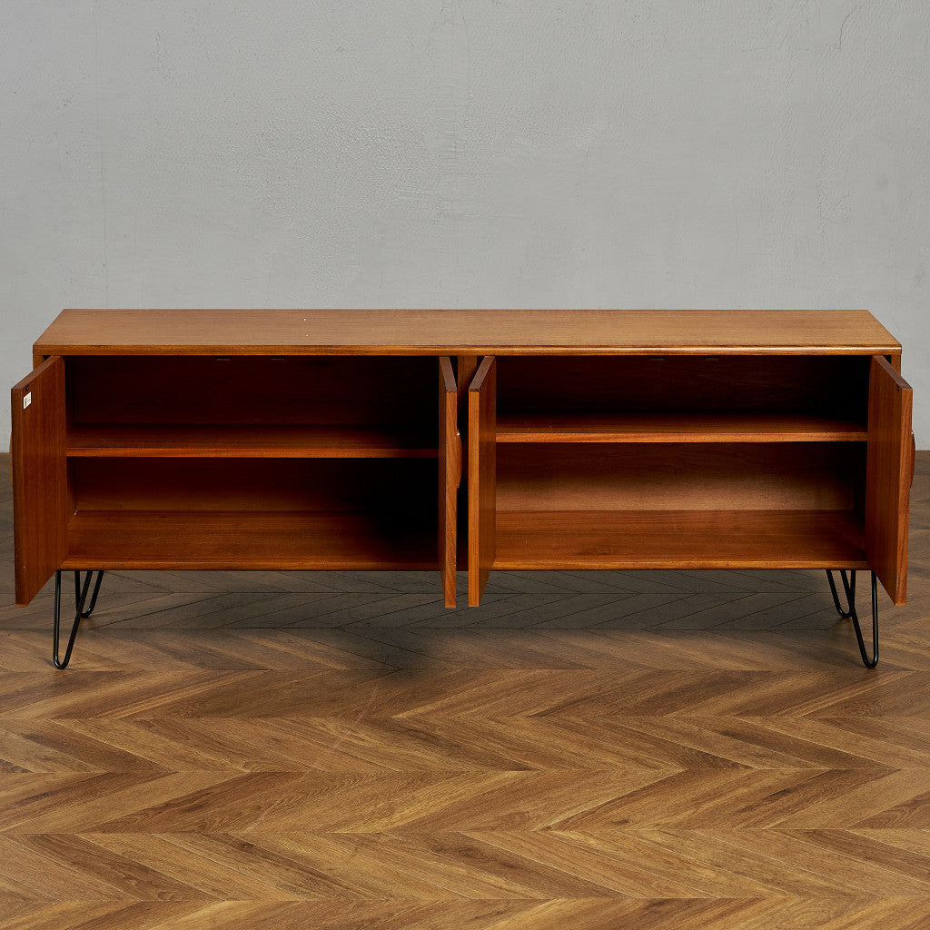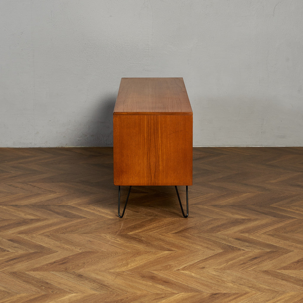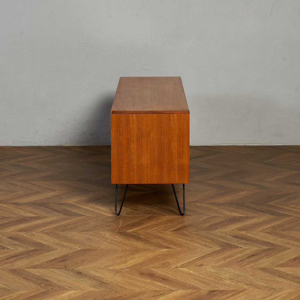 英国ミッドセンチュリーの筆頭ブランド、G-PLAN(ジープラン)による、Victor Bramwell Wilkins(ビクター・ブラムウェル・ウィルキンス)デザイン『Fresco(フレスコ)』シリーズ、ヴィンテージ サイドボード / カスタム アイアンヘアピンレッグです。