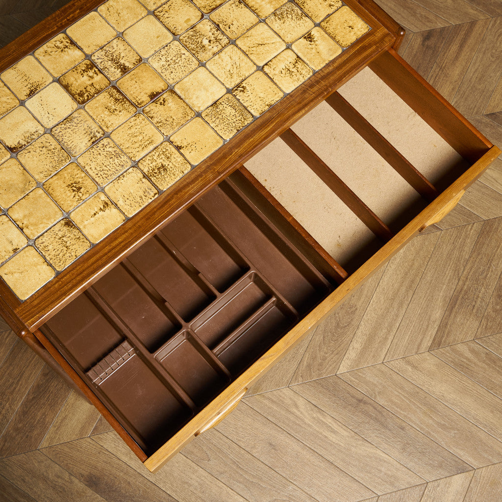 タイルトップ天板が珍しい、流通量の少ないデザインのキャビネット。G-PLANらしいシンプルなデザインと素朴で愛らしいタイルが魅力的です。