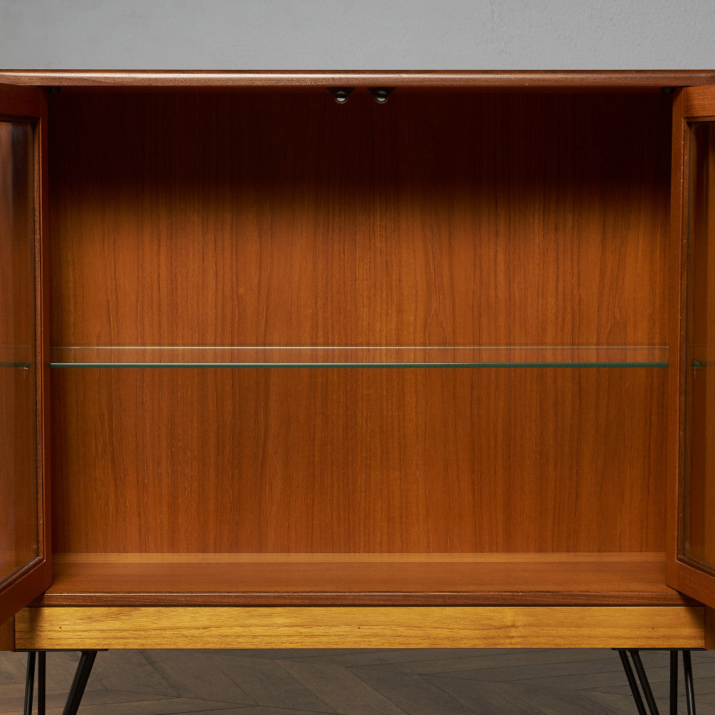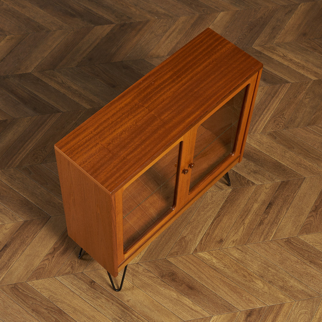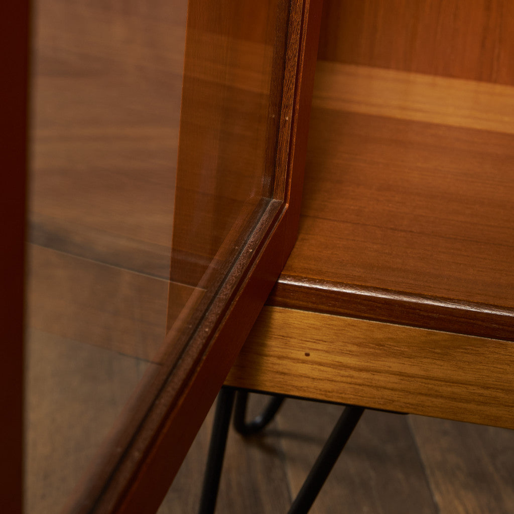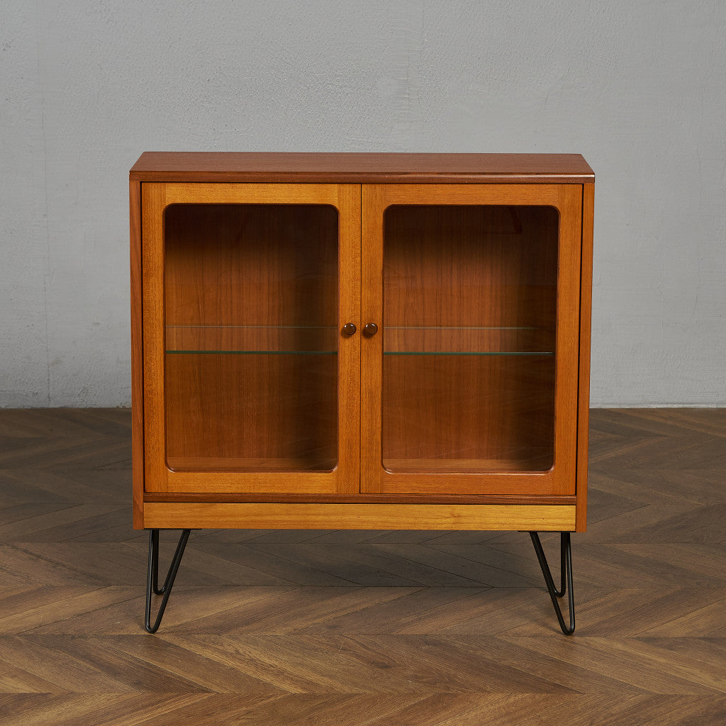 英国ミッドセンチュリー期を代表するブランド G-PLAN(ジープラン) による、Victor Bramwell Wilkins(ビクター・ブラムウェル・ウィルキンス)デザイン『Fresco(フレスコ)』シリーズ、ガラスキャビネット / カスタム アイアン ヘアピンレッグ です。