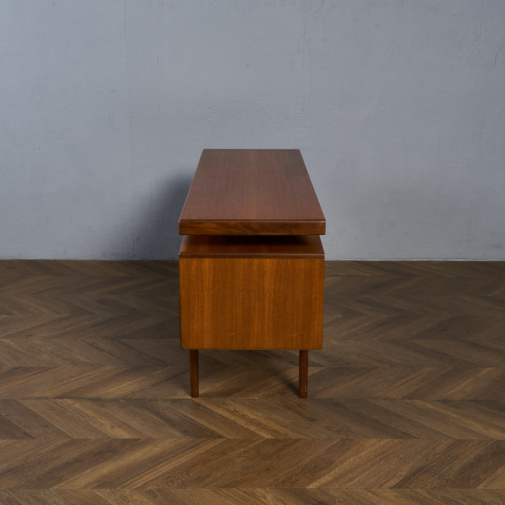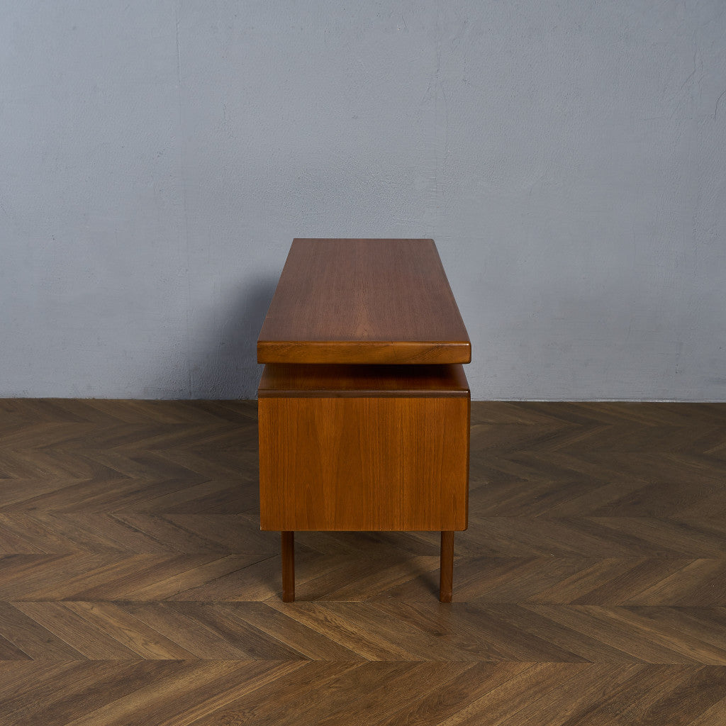 初期のフレスコシリーズドレッサーから脚が変更されたリファイン版、本来は可動式のミラーを備えたドレッサーとしてデザインされていますがミラーを排してデスクとしても利用されています。充実した収納スペースとバランスの取れたデザインが美しい一品です。