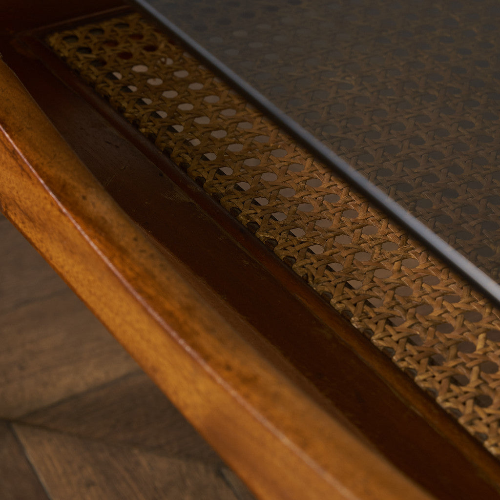 ガラスが浮遊しているように見えるつくりや、適度な抜け感のある籐張りラックなど洗練されたデザインが印象的。細部までこだわりの詰まった美しい佇まいはSutcliffeならではと言えるお品です。