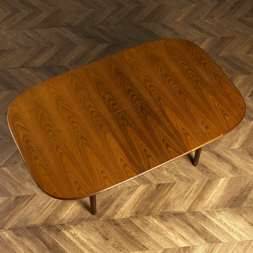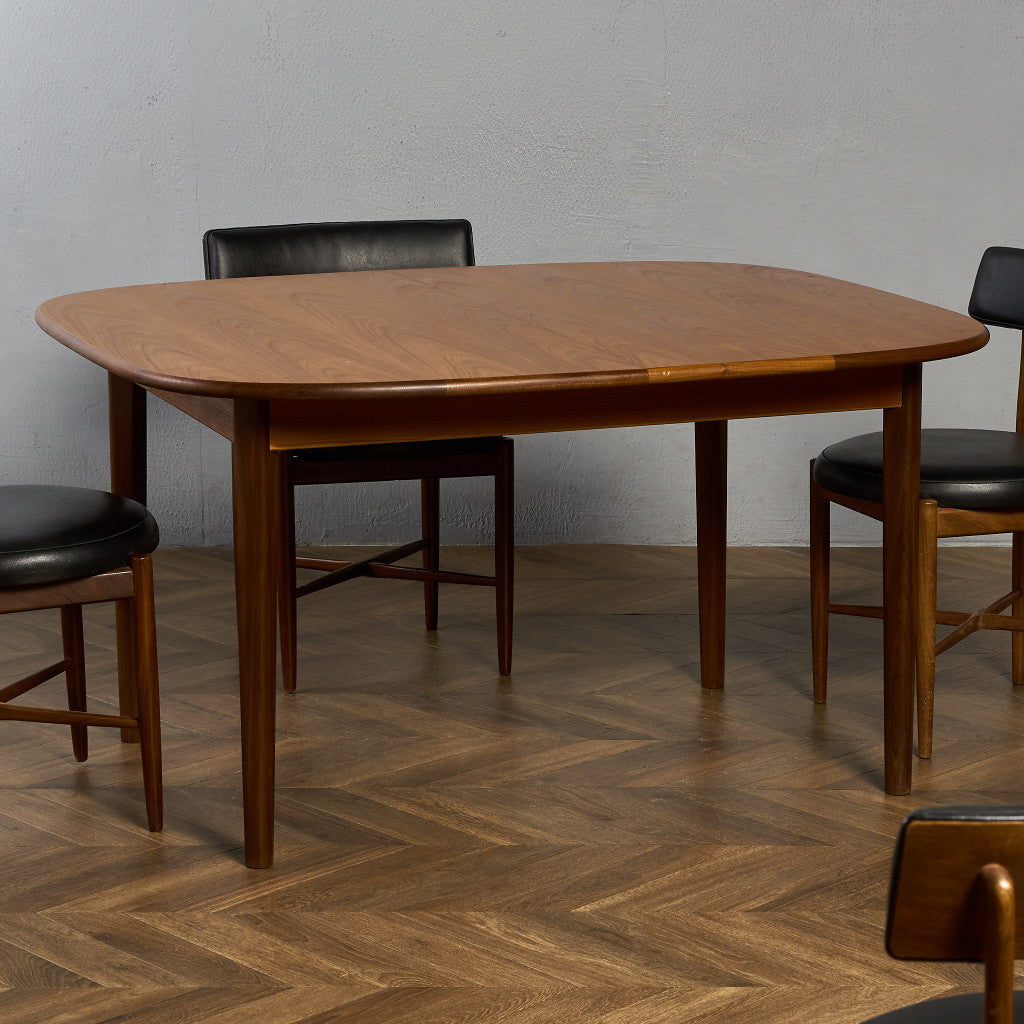 イギリスにおいてミッドセンチュリーを代表するG-PLAN(ジープラン)による、Victor Bramwell Wilkins(ビクター・ブラムウェル・ウィルキンス)デザイン、エクステンションダイニングテーブルです。