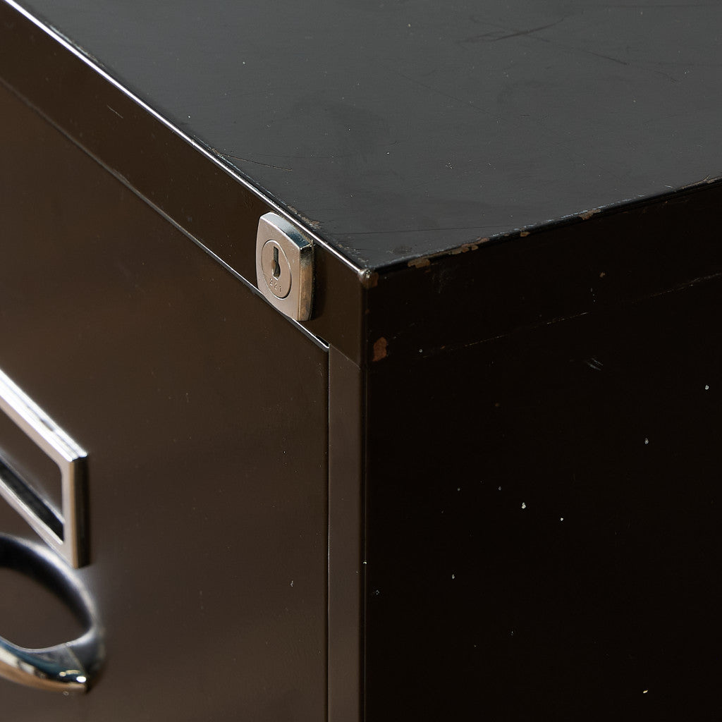 書類の収納に最適なのはもちろん、様々な整理整頓にお使いいただけるキャビネット。スチールの圧迫感を与えない、使いやすいサイズ感が魅力です。時代相応の傷、錆などがインダストリアルの雰囲気をさらに高め、ディスプレイとしても、充分にお楽しみいただける一品です。