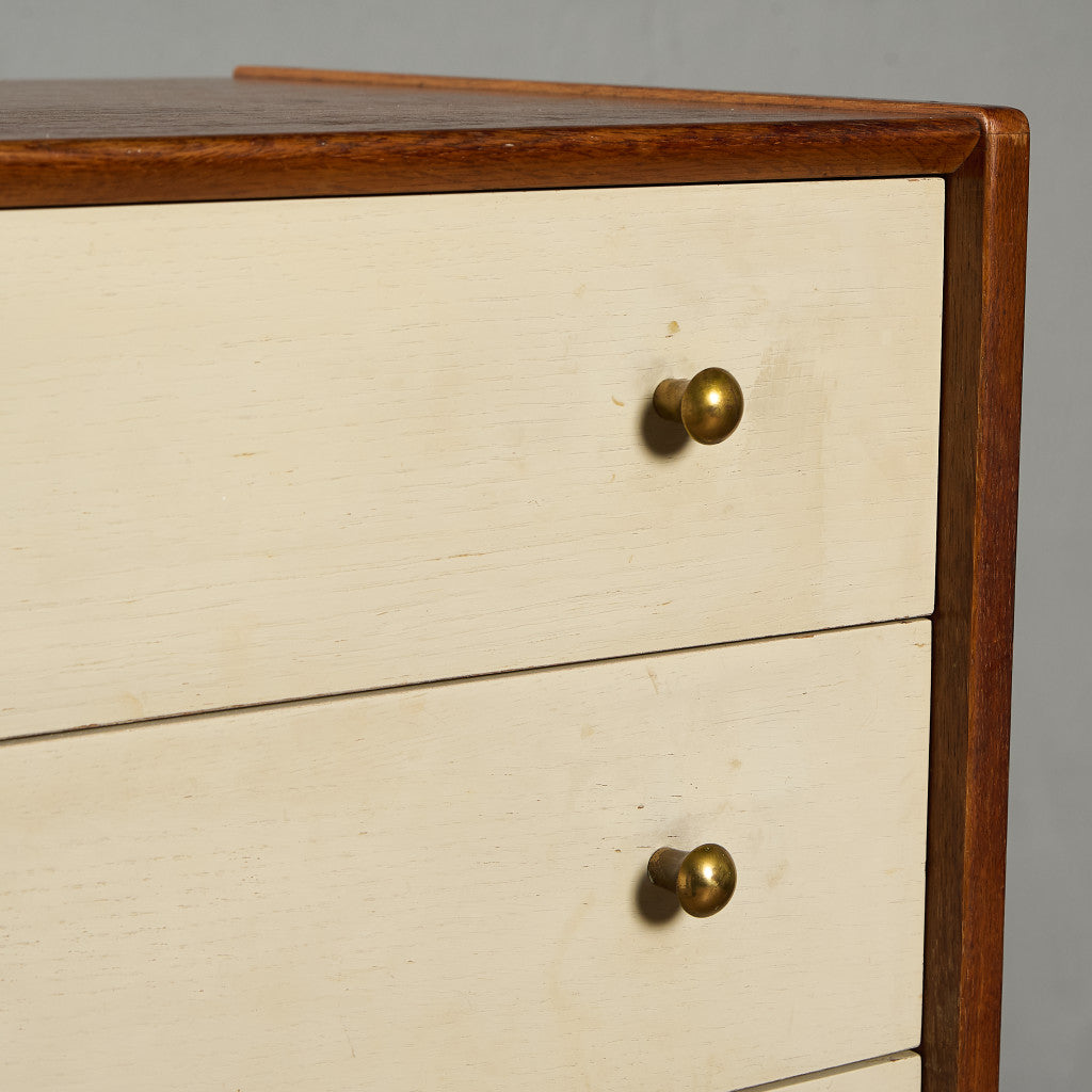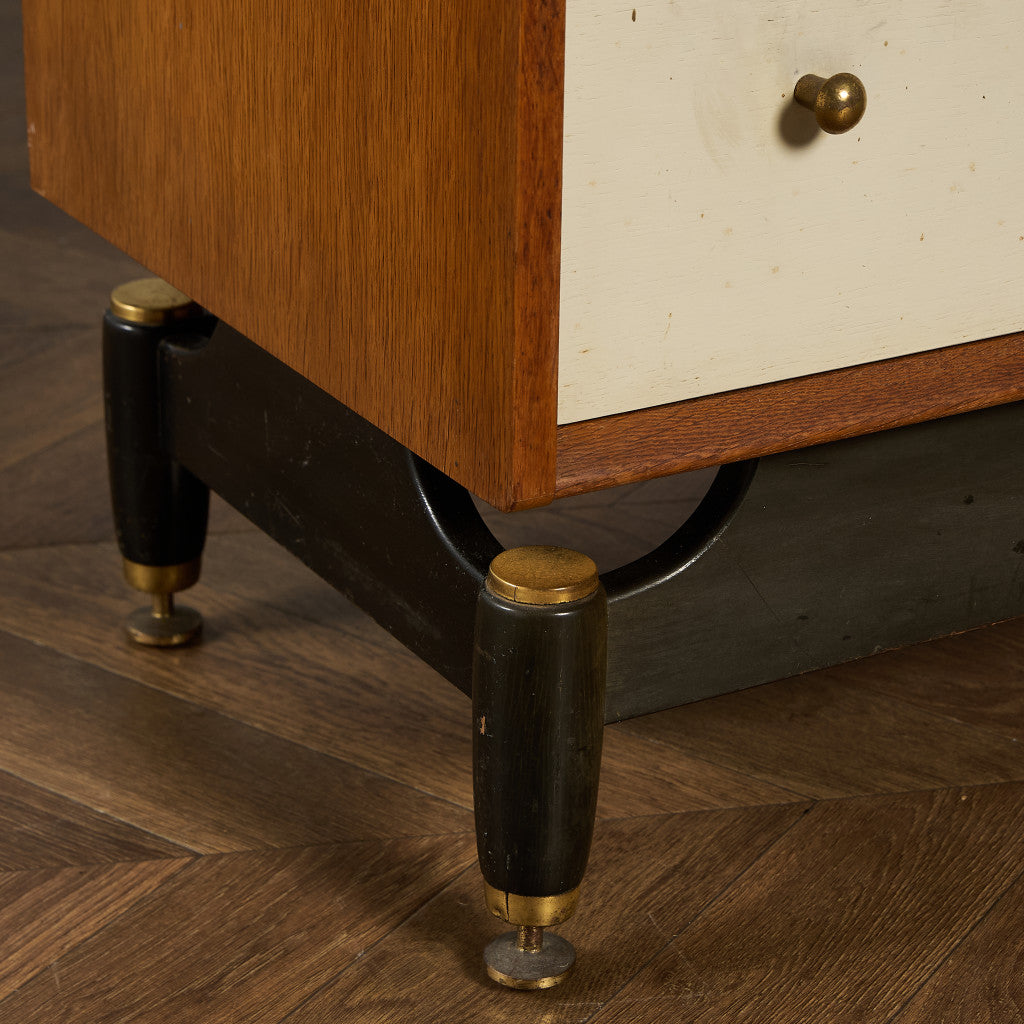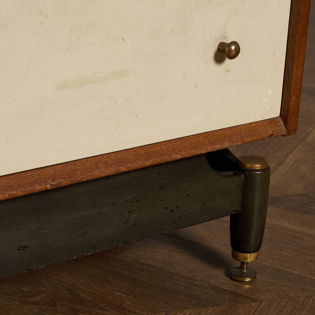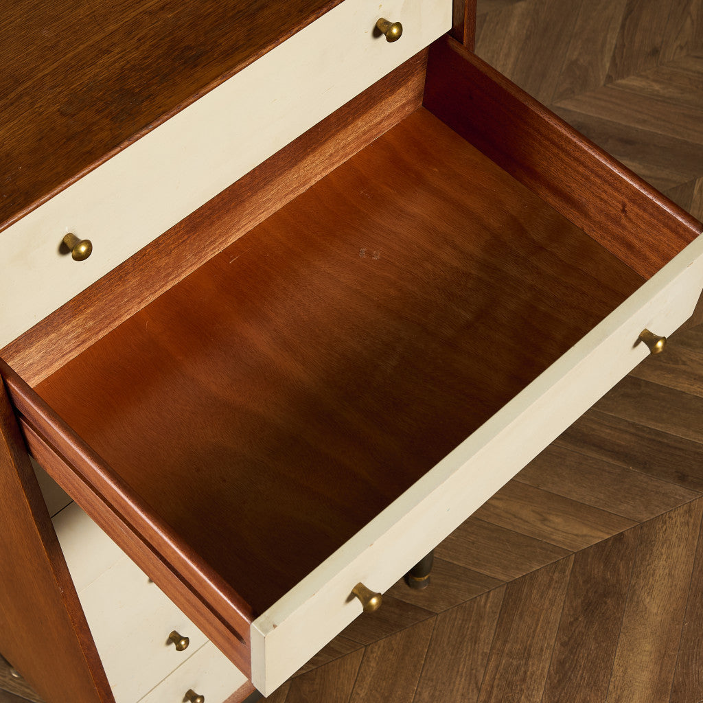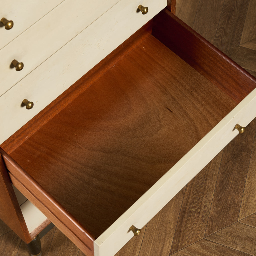 1950年後半に発売された『Tola&white(トーラ&ホワイト)』シリーズ。トーラ材の美しい色調とホワイトのペイント、真鍮メッキのゴールドのコントラストが目を惹きます。同時期に発売されたTola&blackは(トーラ&ブラック)は目にかかることがありますが、Tola&whiteは流通量がほとんどなく、手に入りにくい希少価値の高いシリーズです。