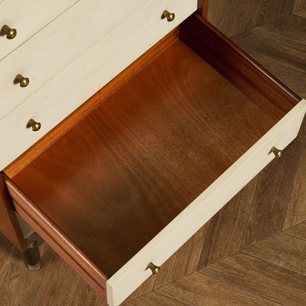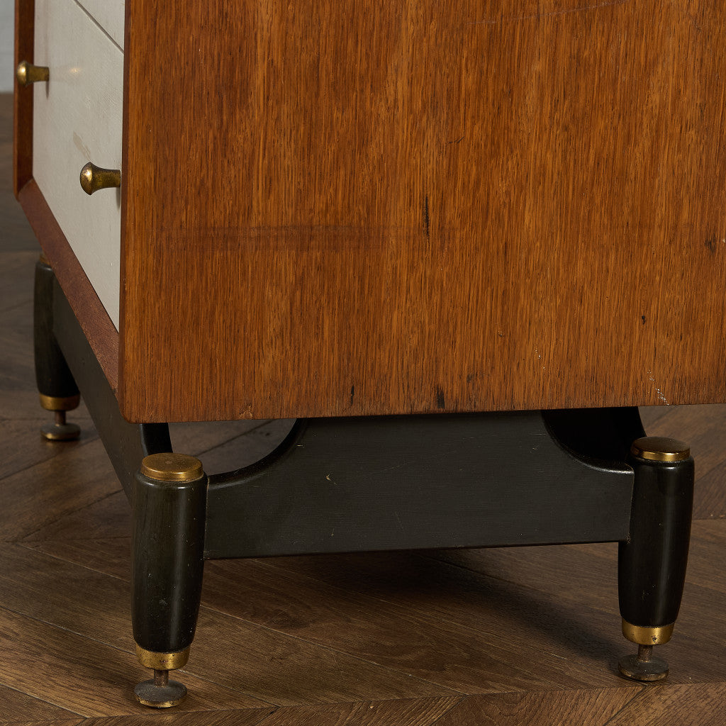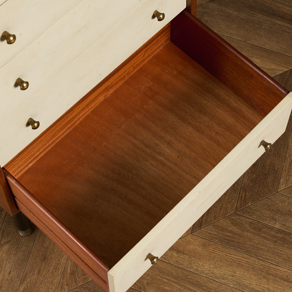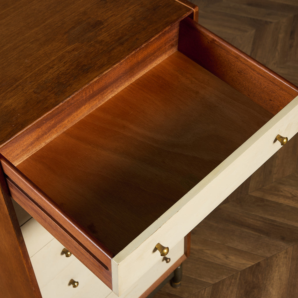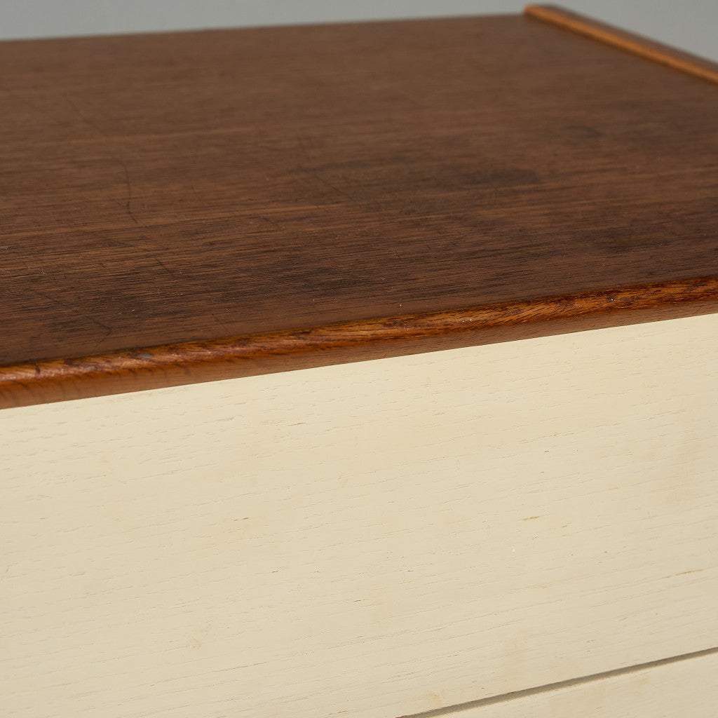 1950年後半に発売された『Tola&white(トーラ&ホワイト)』シリーズ。トーラ材の美しい色調とホワイトのペイント、真鍮メッキのゴールドのコントラストが目を惹きます。同時期に発売されたTola&blackは(トーラ&ブラック)は目にかかることがありますが、Tola&whiteは流通量がほとんどなく、手に入りにくい希少価値の高いシリーズです。