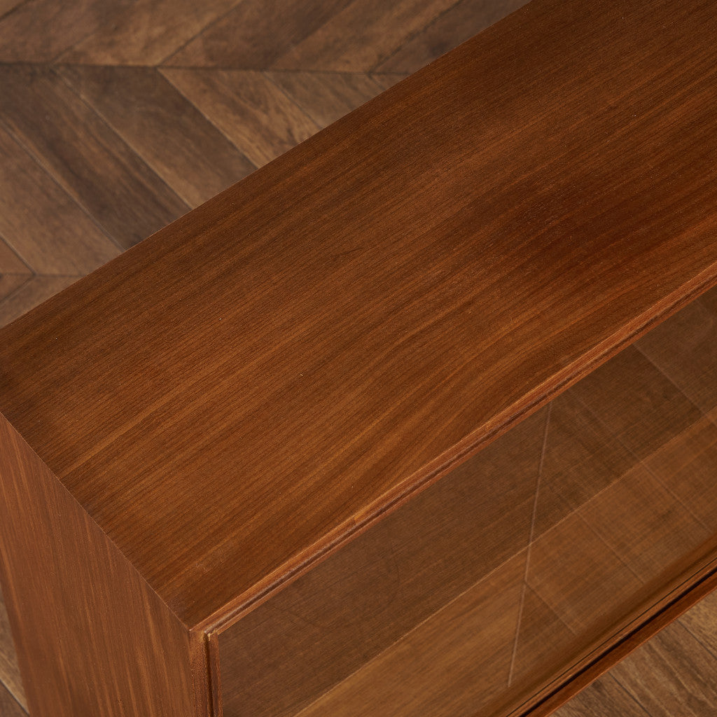 小さな文庫書籍や小物コレクションのディスプレイに最適なチーク材のブックケース。現代の間取りでも使いやすいサイズ感とシンプルなデザインで、どんな空間にも合わせやすいお品です。