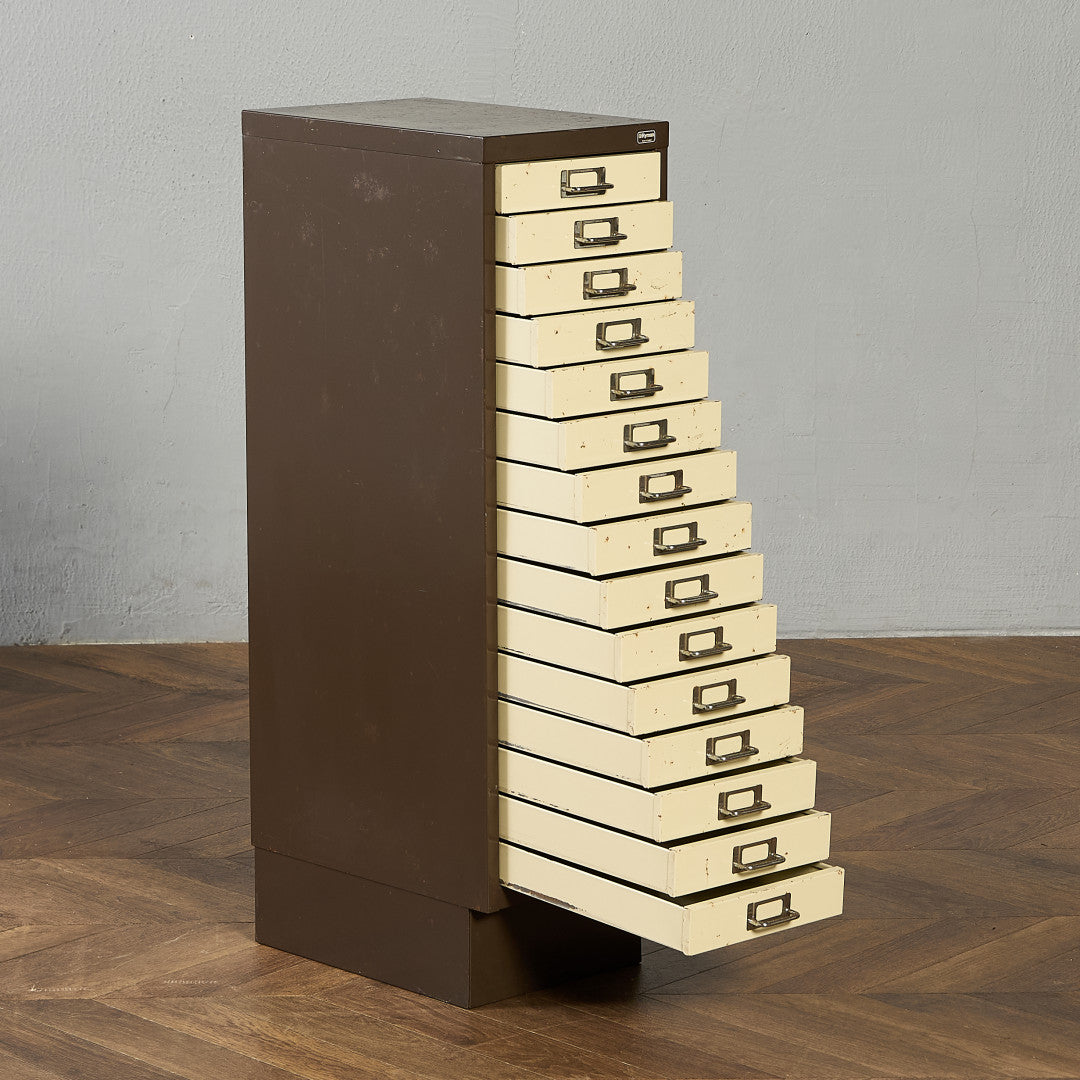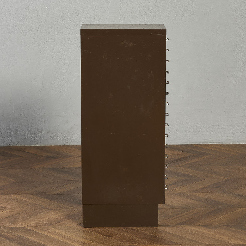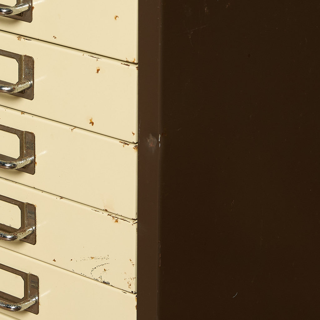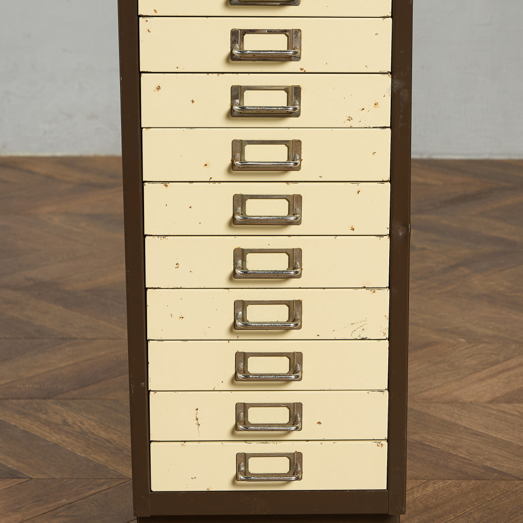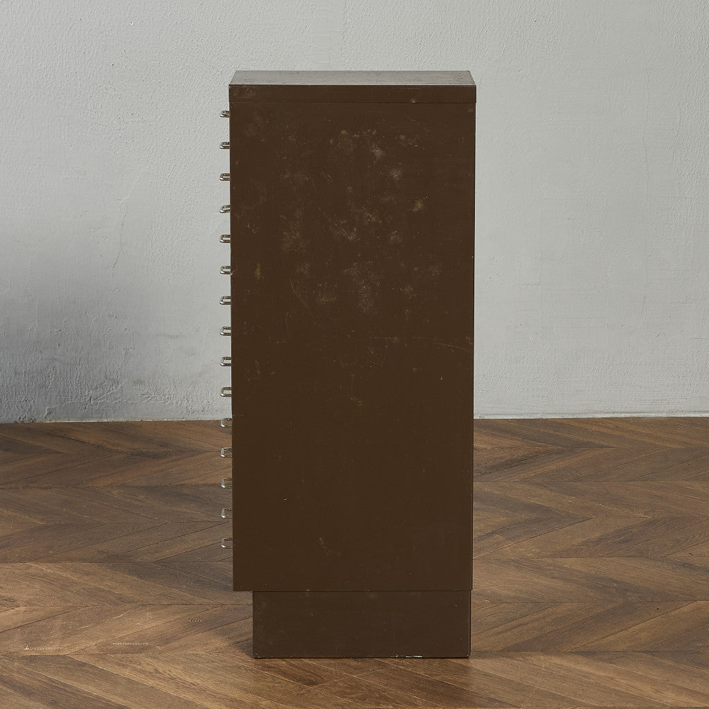 書類の収納に最適なのはもちろん、様々な整理整頓にお使いいただけるキャビネット。スチールの圧迫感を与えない、使いやすいサイズ感が魅力です。時代相応の傷、錆などがインダストリアルの雰囲気をさらに高め、ディスプレイとしても、充分にお楽しみいただける一品です。