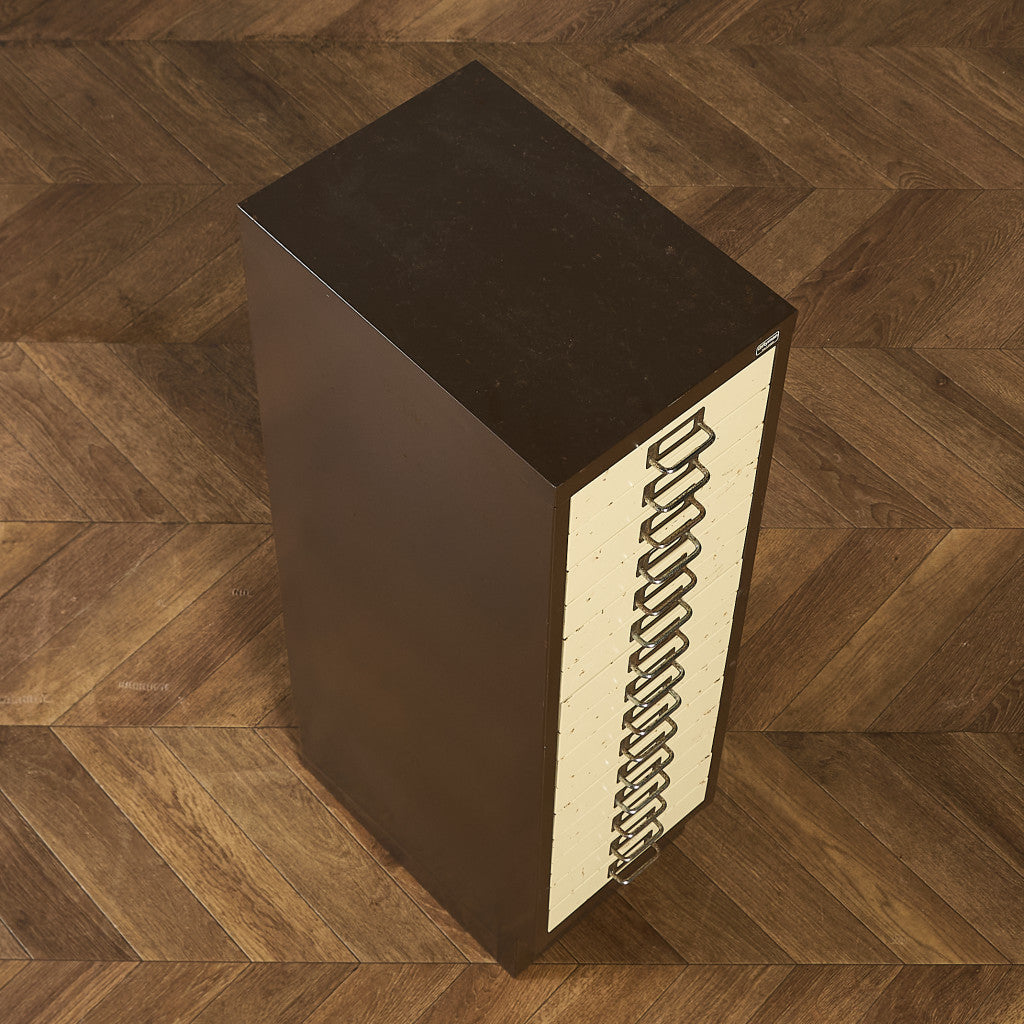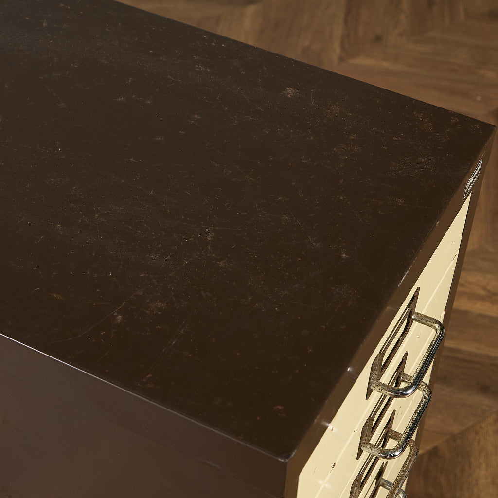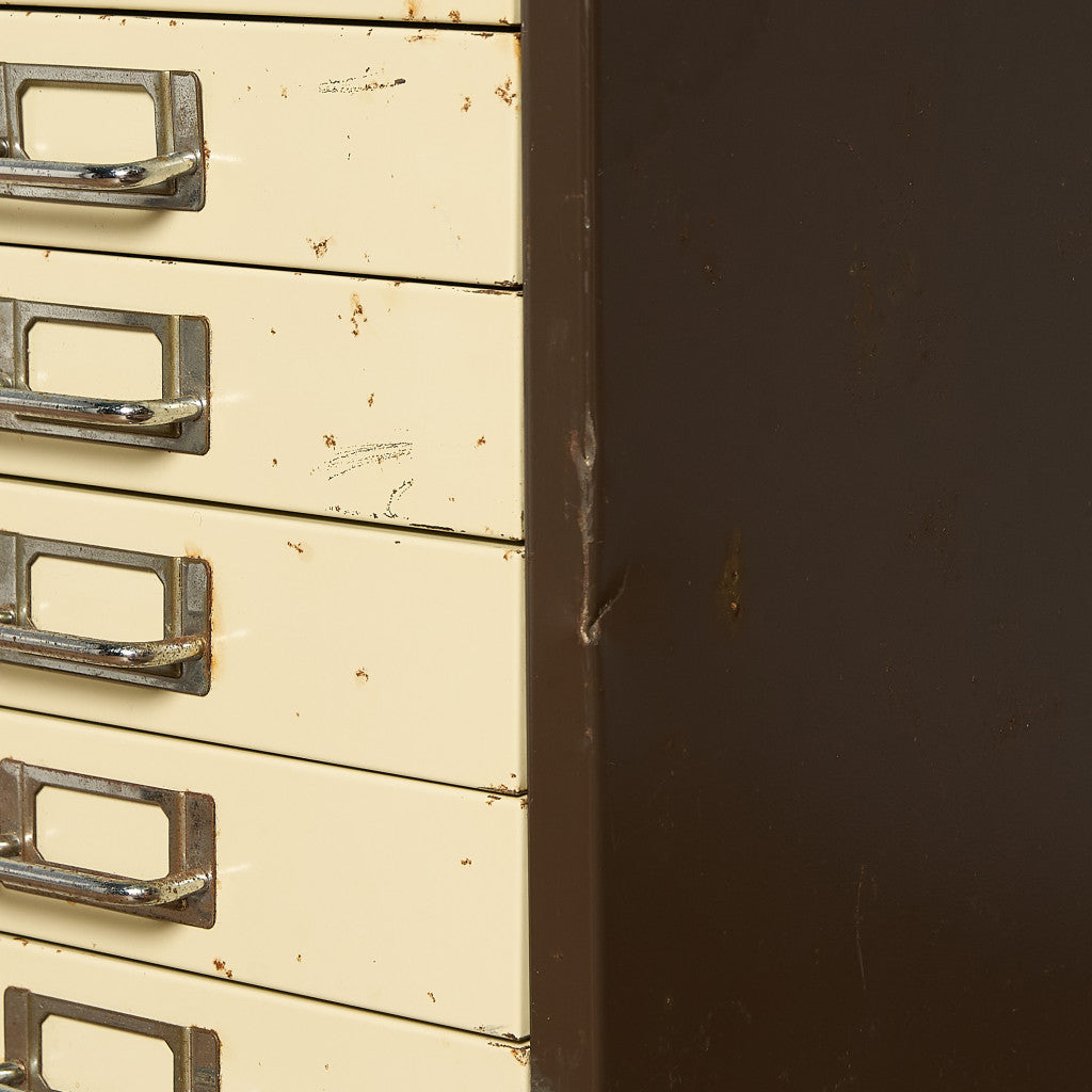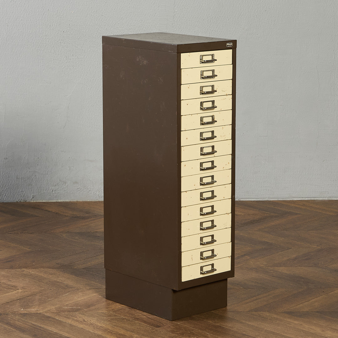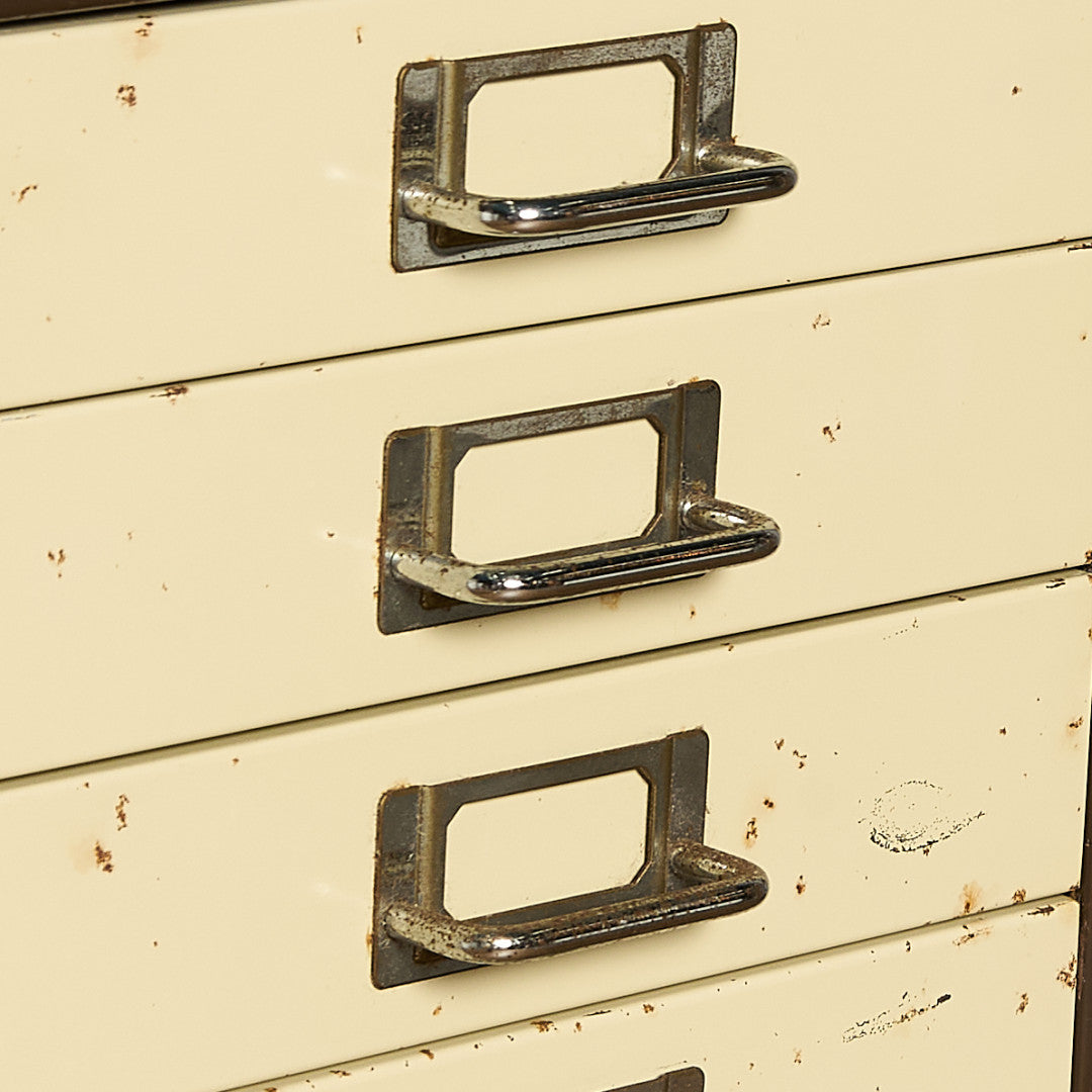 書類の収納に最適なのはもちろん、様々な整理整頓にお使いいただけるキャビネット。スチールの圧迫感を与えない、使いやすいサイズ感が魅力です。時代相応の傷、錆などがインダストリアルの雰囲気をさらに高め、ディスプレイとしても、充分にお楽しみいただける一品です。
