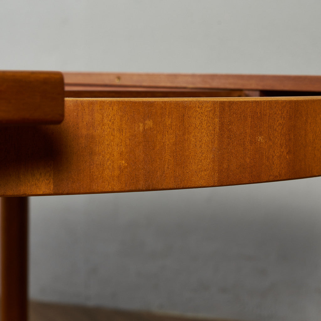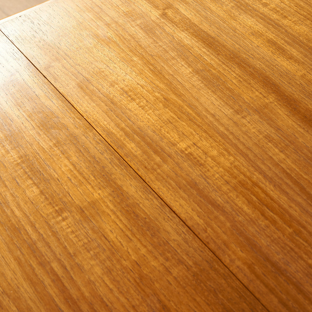 格納式の補助天板を広げることで状況に応じて使い分けることができる実用性の高いエクステンションタイプ。ヴィンテージチークのあたたかな質感と、シンプルですっきりとした佇まいが印象的。G-PLANの家具とは一味違った美しさと魅力を持った、McINTOSHならではと言える一品です。