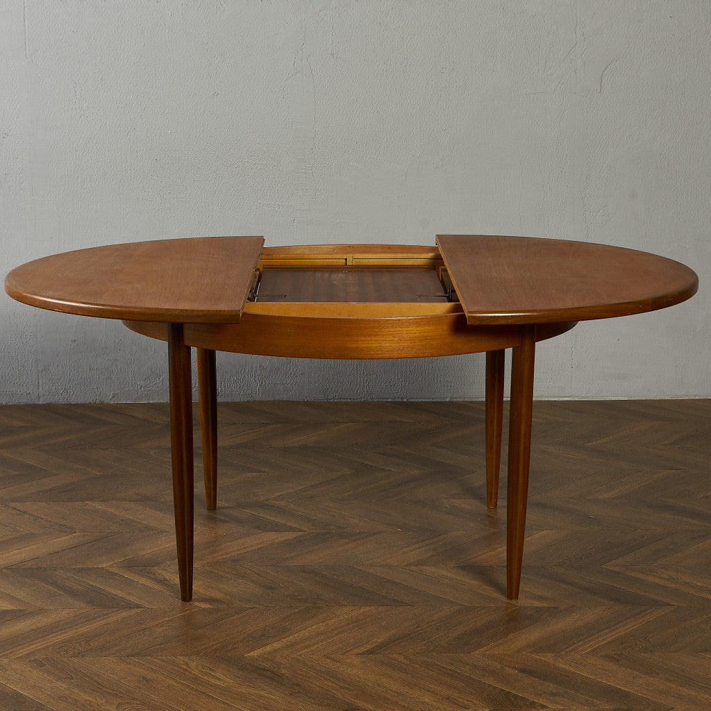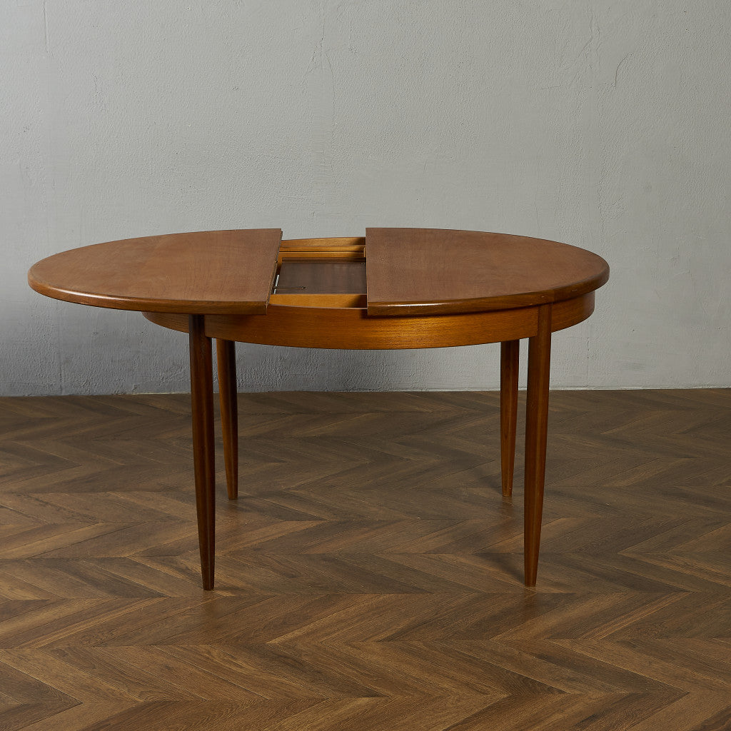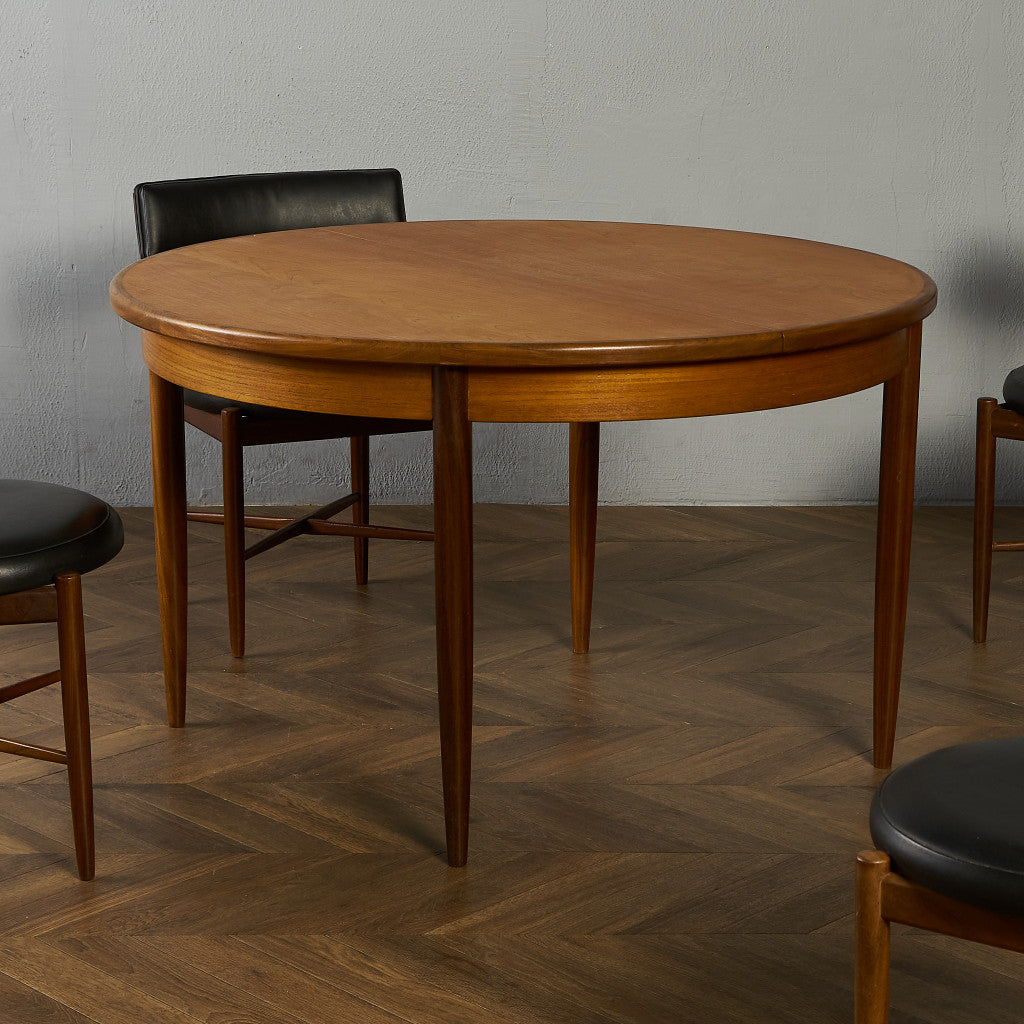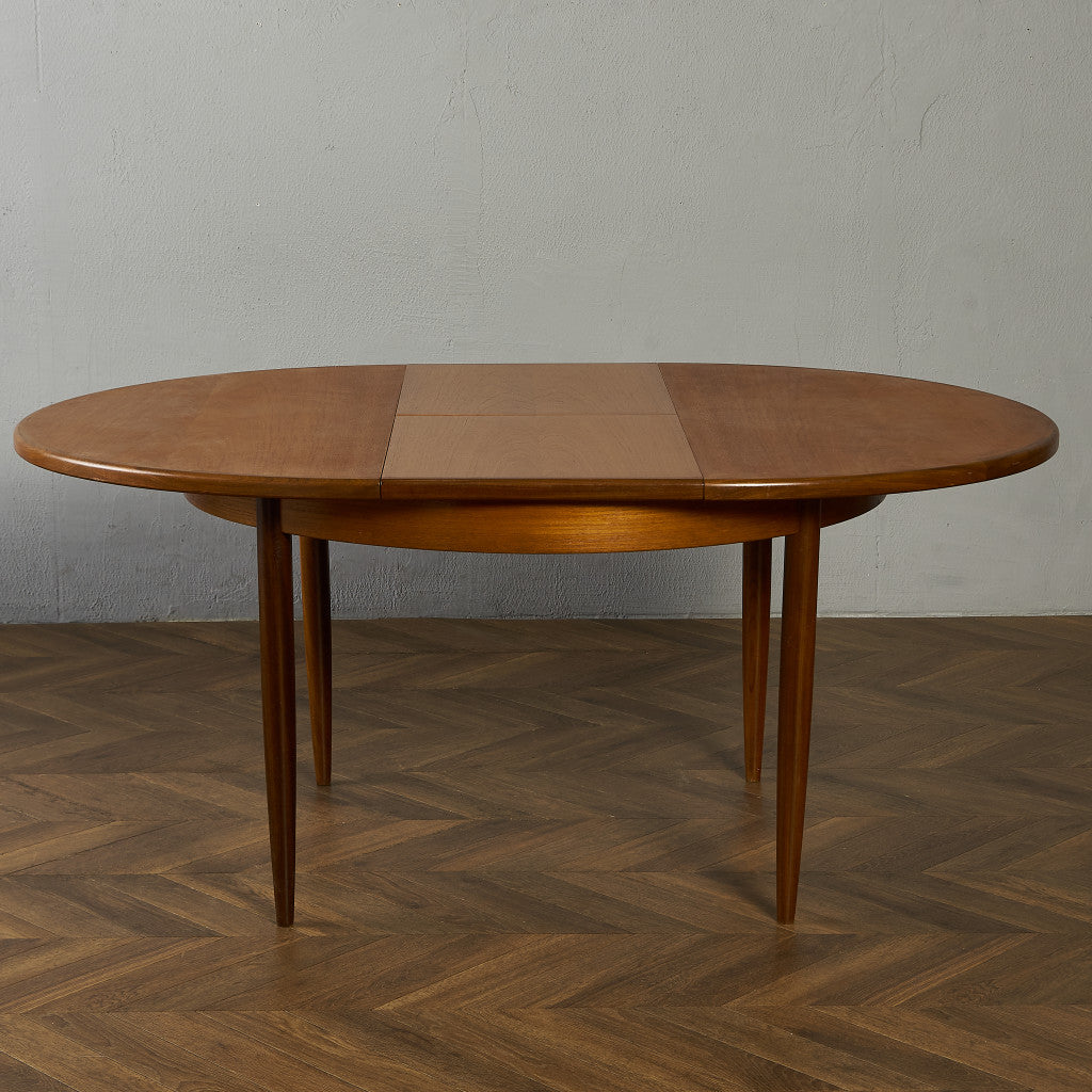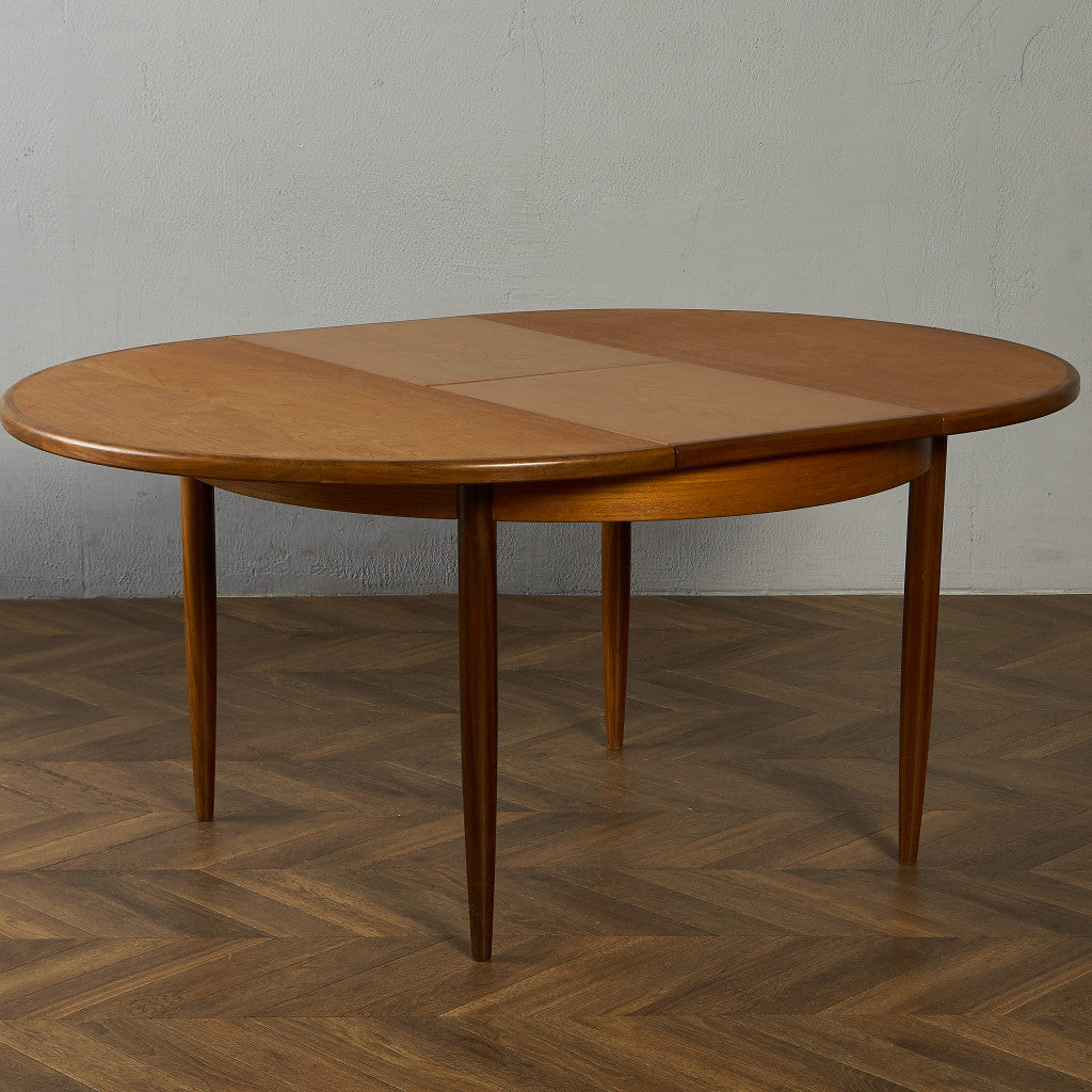 イギリスにおいてミッドセンチュリーを代表する G-PLAN(ジープラン) による、Victor Bramwell Wilkins(ビクター・ブラムウェル・ウィルキンス)デザイン、Fresco(フレスコ) エクステンション ラウンド ダイニングテーブルです。