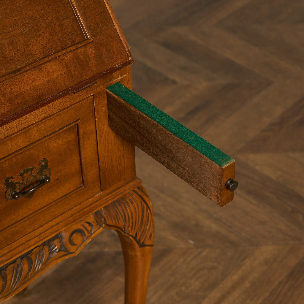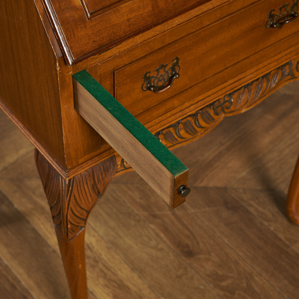 マホガニー材を使用した美しい木彫刻や、カブリオールレッグが目を惹くライティングビューロー。クラシックならではの心地よい温もりや風合いが、お部屋の雰囲気をぐっと格調高いものに演出します。