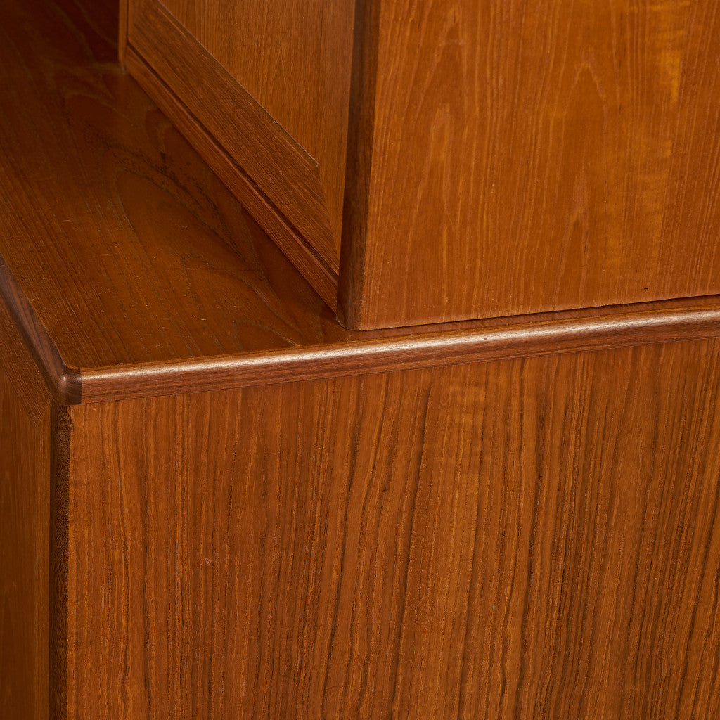 大容量収納を下段に、上段にはオープン棚や開くことでコンパクトな書斎デスクに変わるビューローを備えており、食器棚や書斎デスク、リビングの飾り棚、はたまたひとり暮らし用のオールインワン家具として、様々な用途にお使いいただけます。日本と似た住宅事情のイギリスならではの非常に実用性の高い設計のサイドボードです。