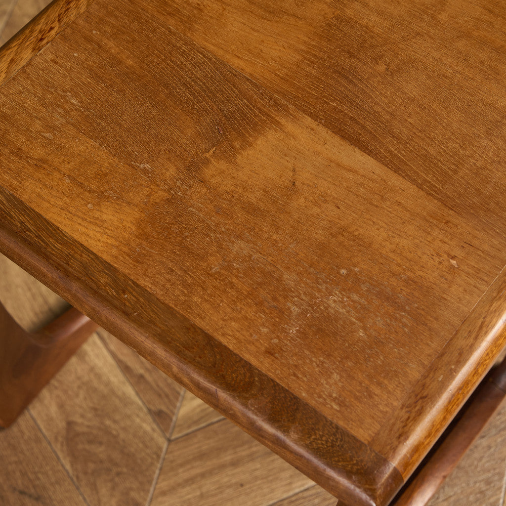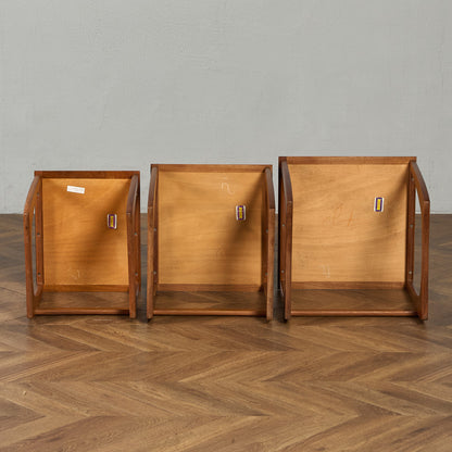 用途に合わせて引き出したり、纏めたりできるとても便利な入子構造のネストテーブル。リビングのサイドテーブルや寝室に置くナイトテーブルとして、フレキシブルにお使い頂けます。実用的でありながらも作り手のこだわりを感じさせる、北欧の年代物とも相性の良いヴィンテージファニチャーです。