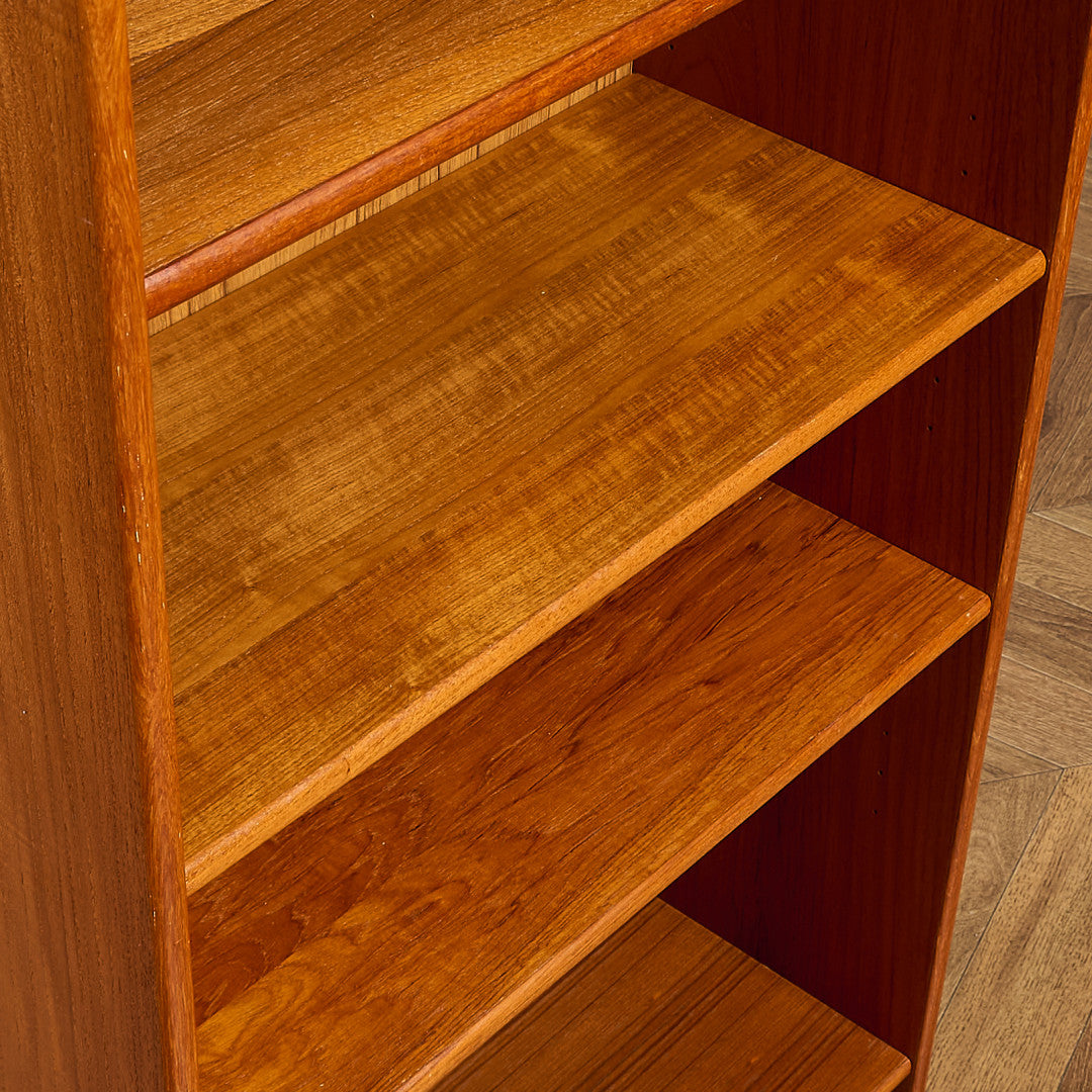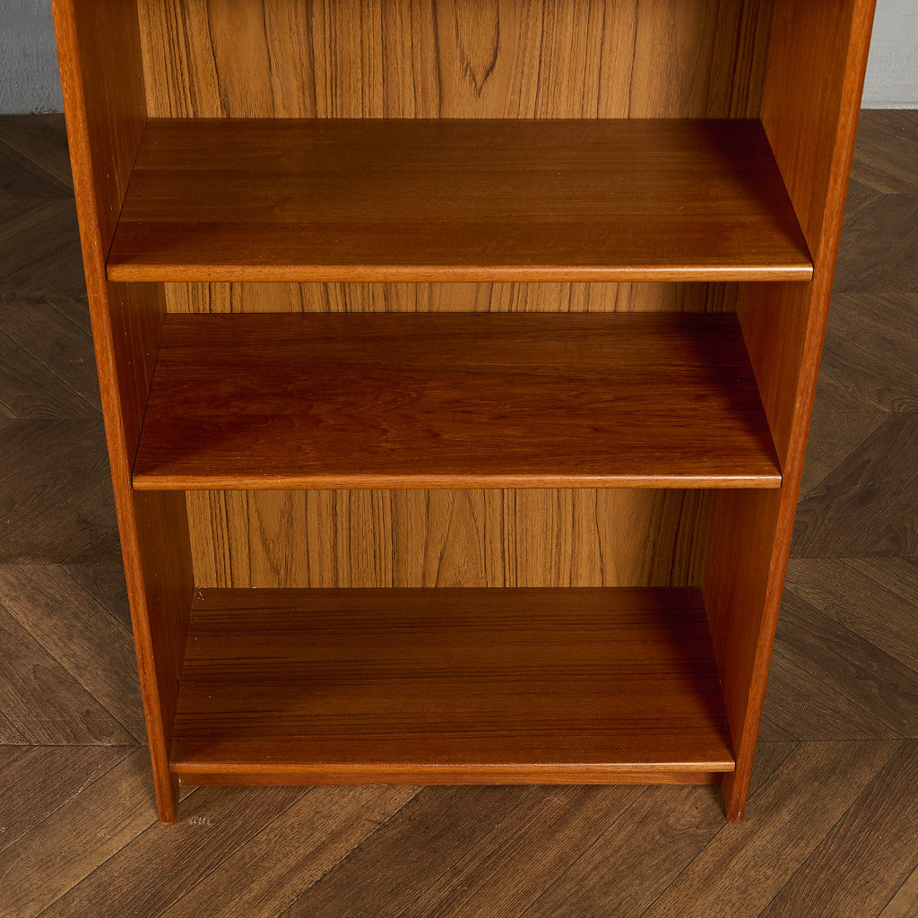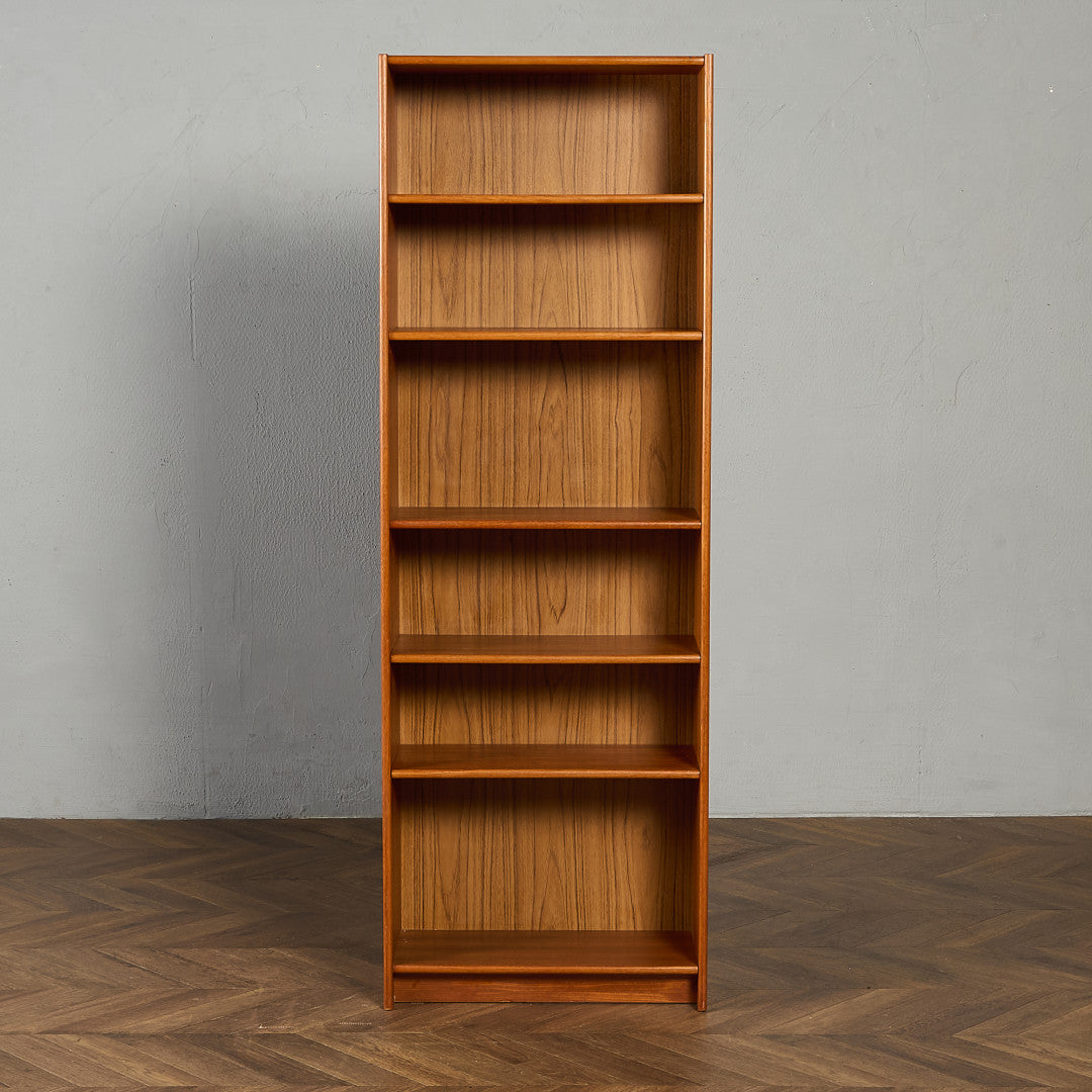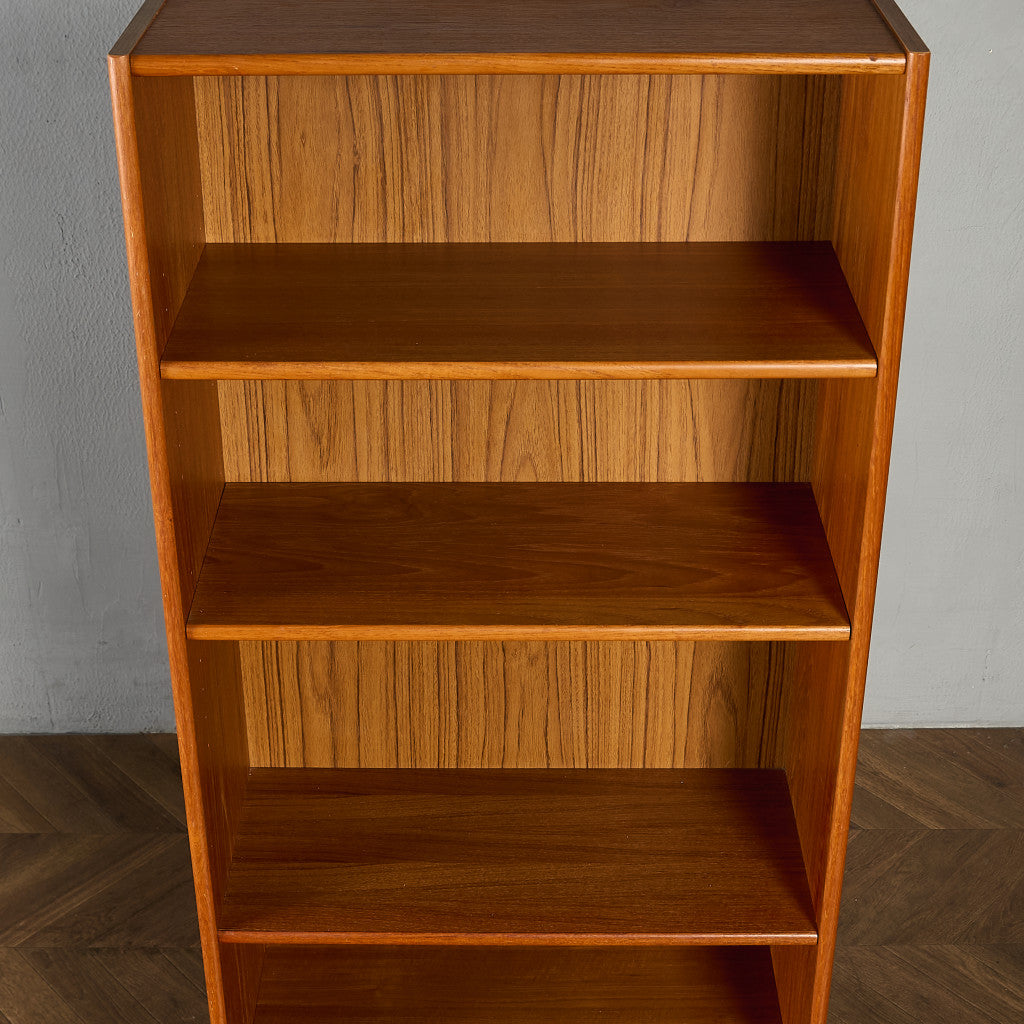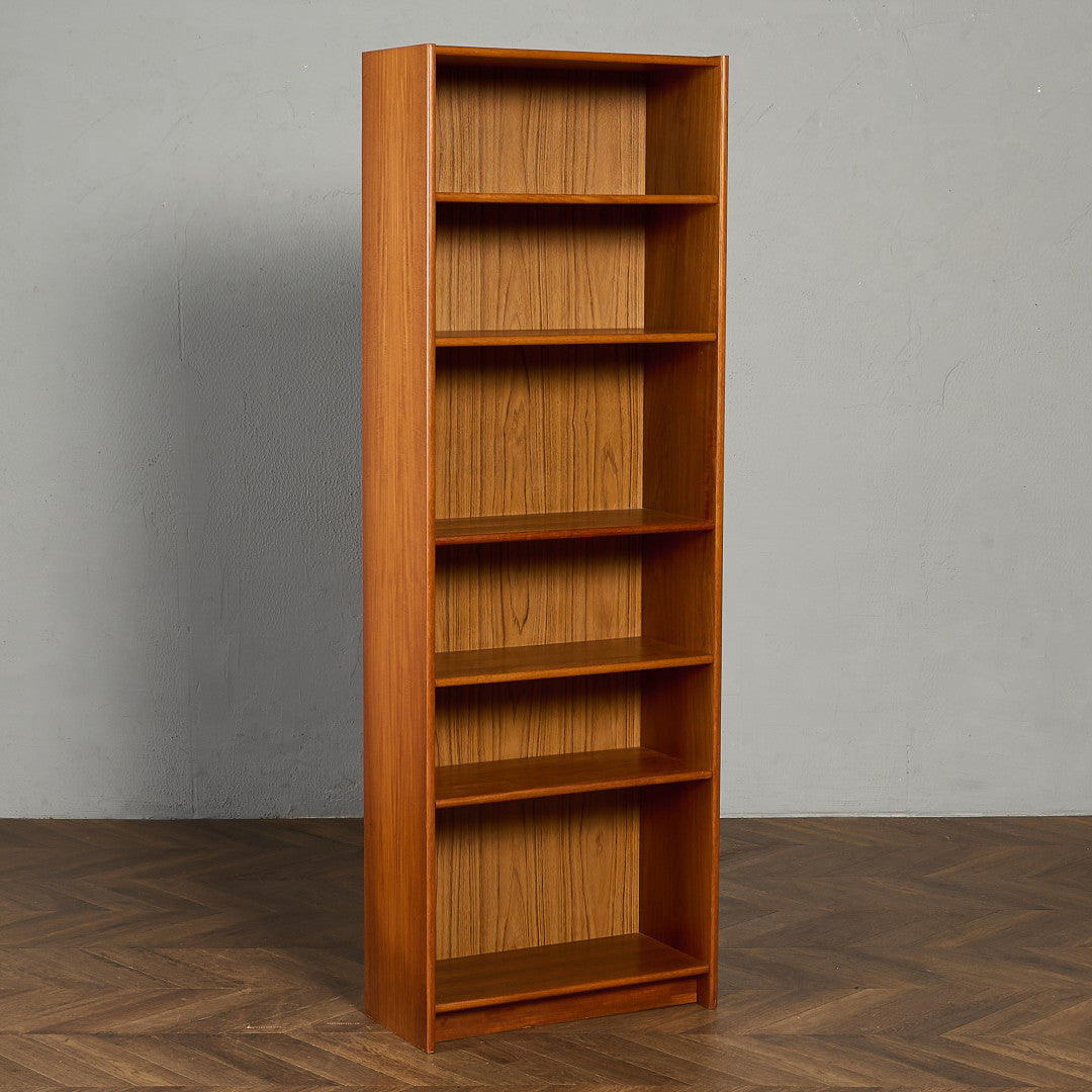 チーク材を使用した、オープン仕様のブックシェルフ。シンプルながらも細部に作り手のこだわりを感じる、北欧家具黄金期のヴィンテージファニチャーです。スリムなので使い勝手がよく、高さに充分なスペースがあるため収納力も豊富です。