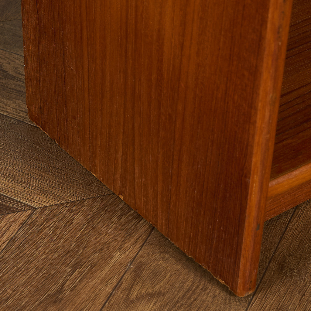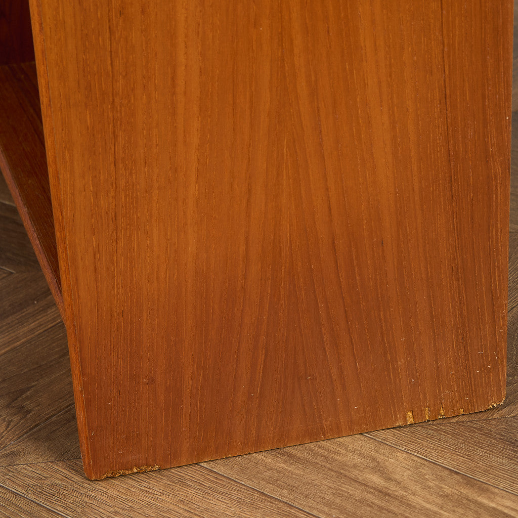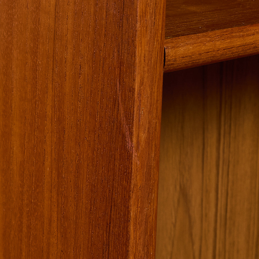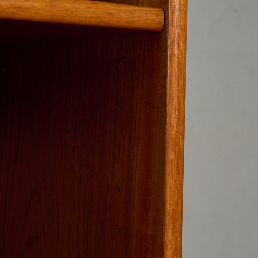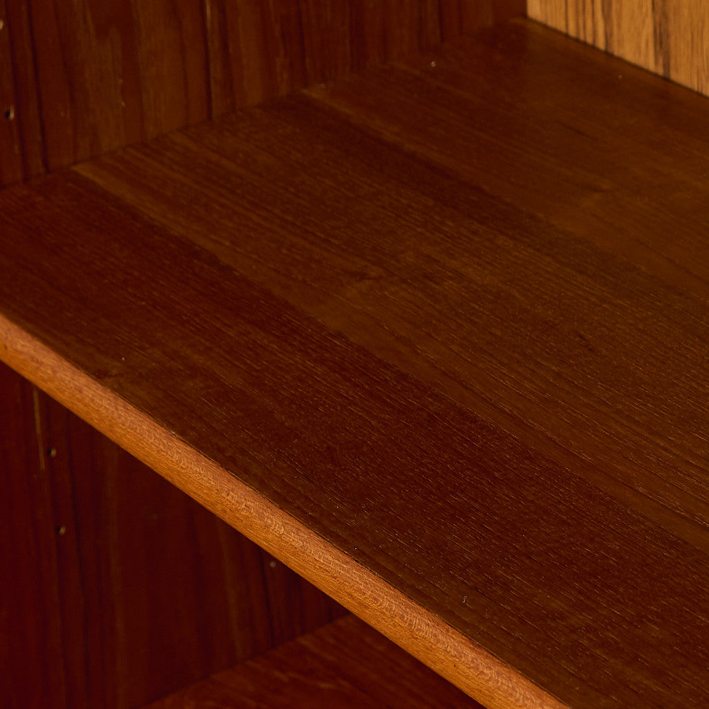 チーク材を使用した、オープン仕様のブックシェルフ。シンプルながらも細部に作り手のこだわりを感じる、北欧家具黄金期のヴィンテージファニチャーです。スリムなので使い勝手がよく、高さに充分なスペースがあるため収納力も豊富です。