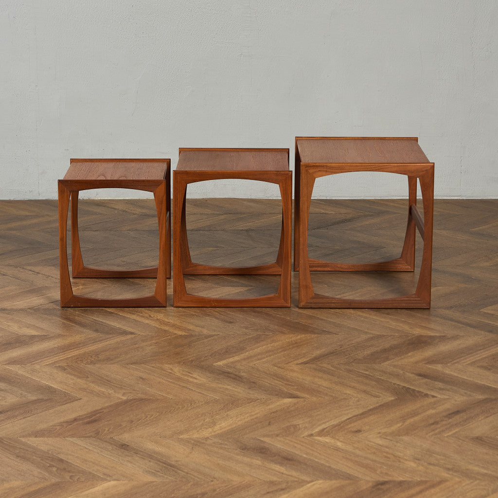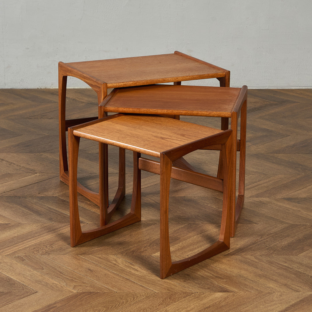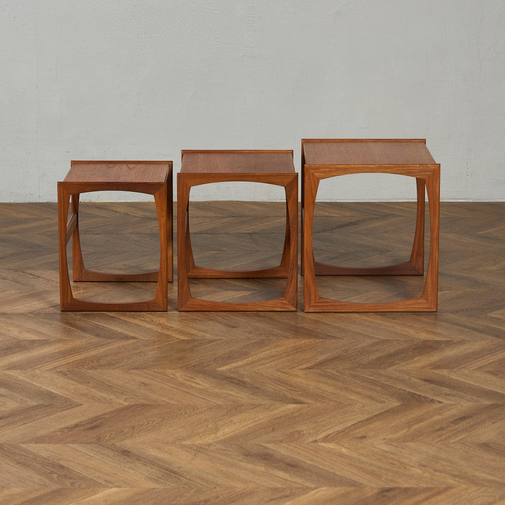 イギリスのミッドセンチュリーを代表するブランド G-PLAN(ジープラン) による、Roger Bennett(ロジャー・ベネット) デザイン、Quadrille(クヮドリール) ネストテーブルです。