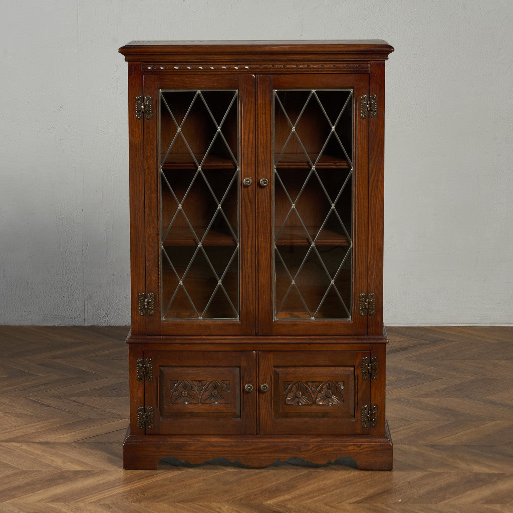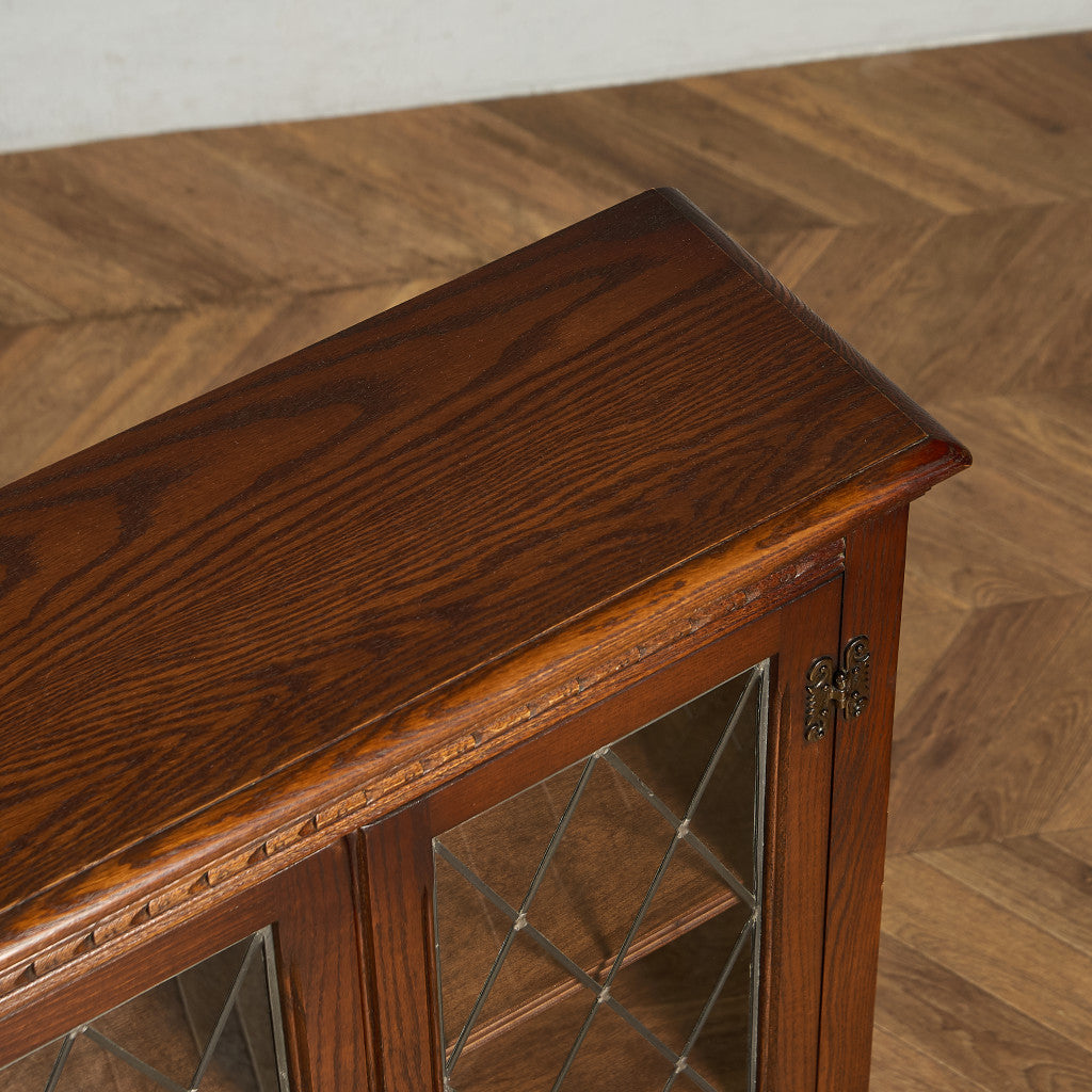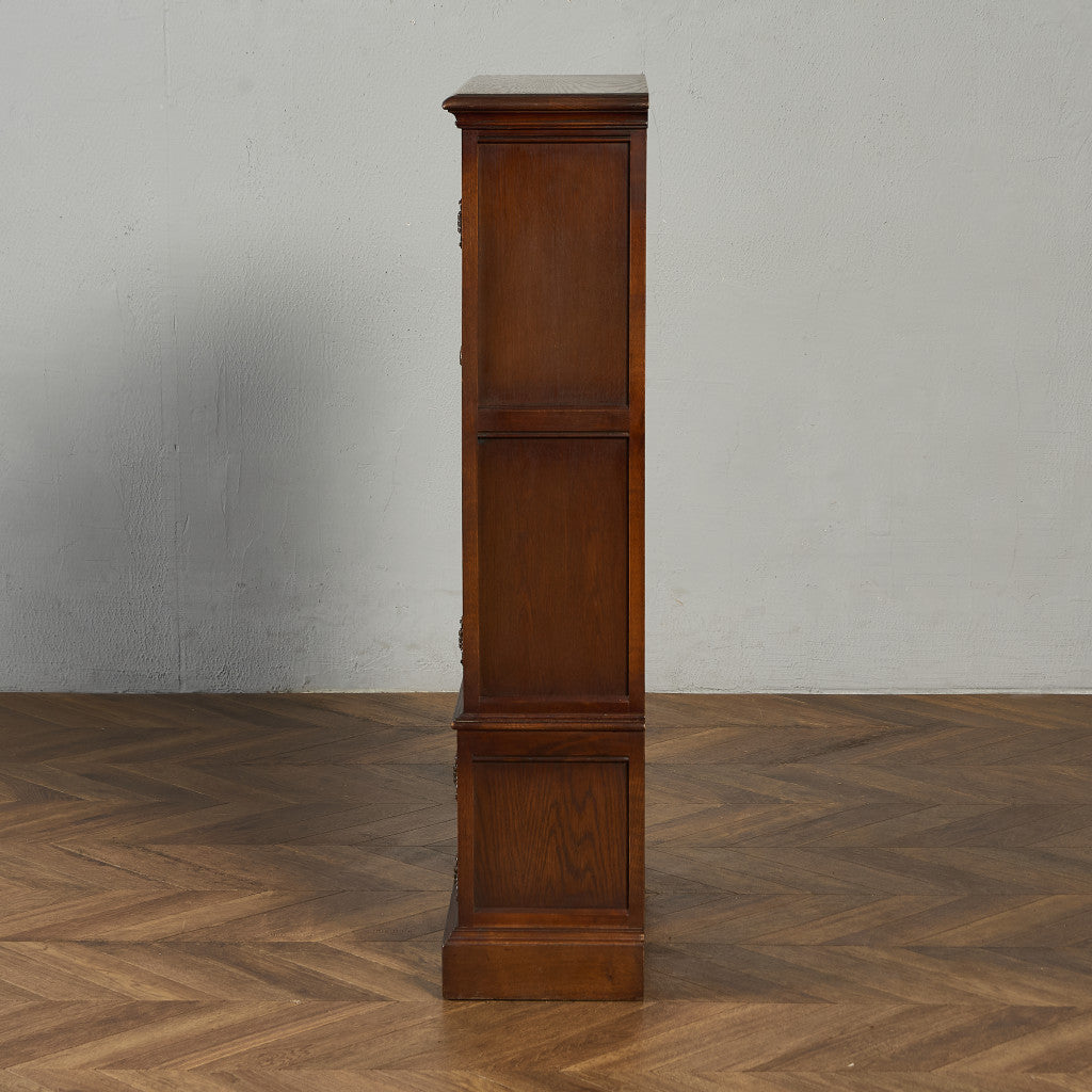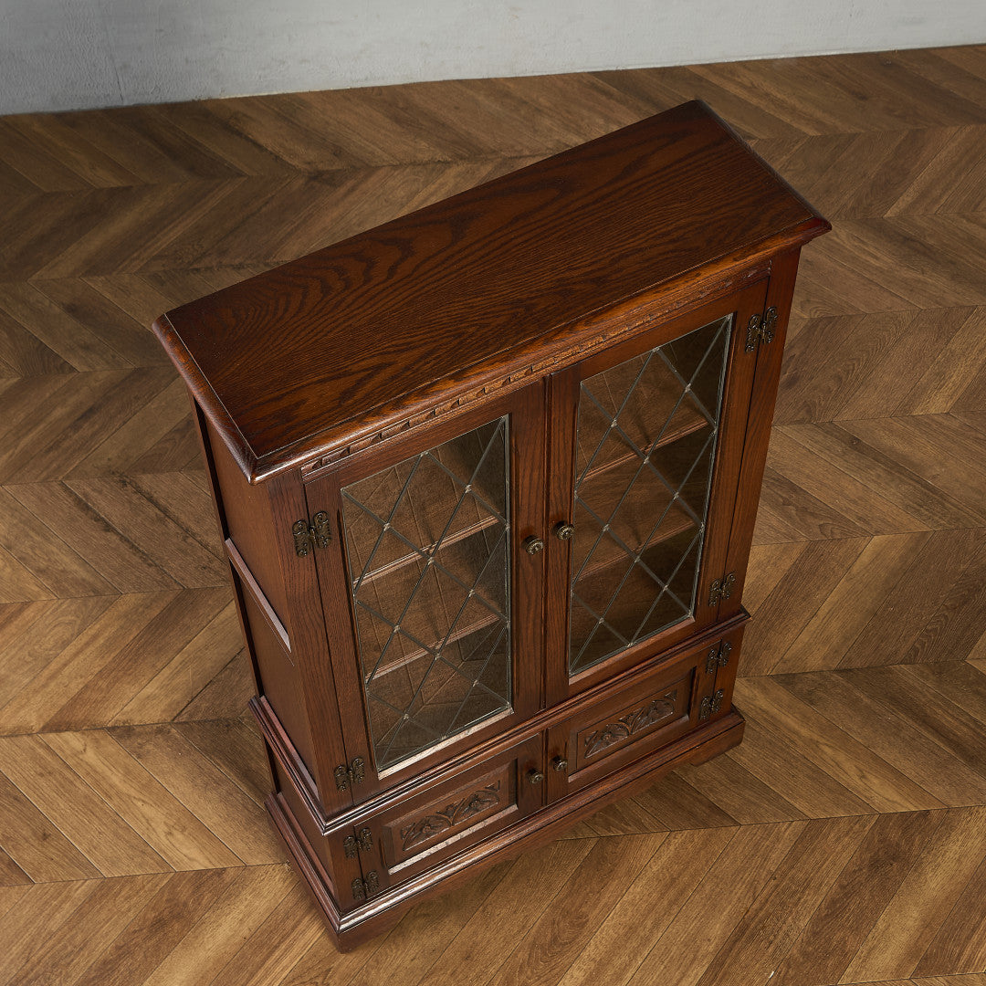 力強い木目を持つオーク材を用い、英国伝統様式を忠実に再現。細部にまで施された細かな装飾やケイムのガラス扉など、シックなデザインが魅力的です。リビングやダイニングはもちろん、店舗什器としても活躍してくれるお品です。