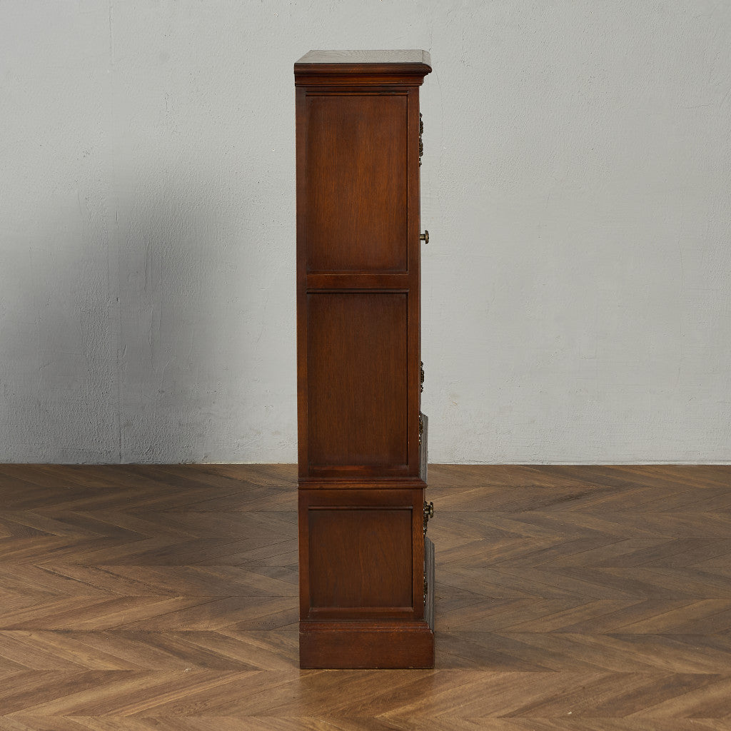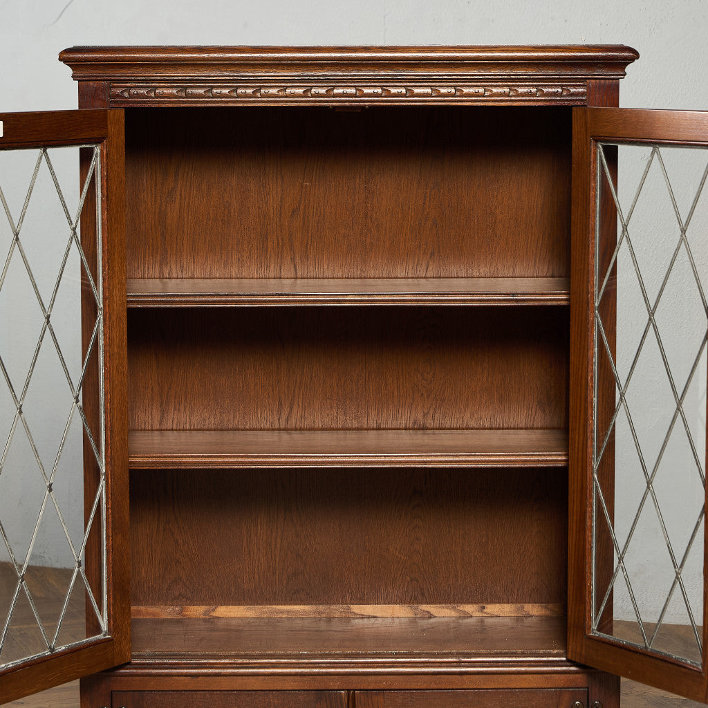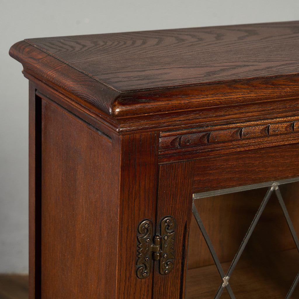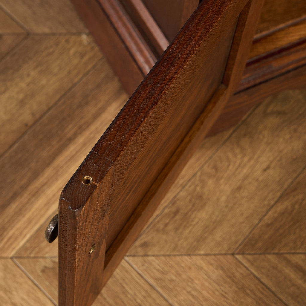力強い木目を持つオーク材を用い、英国伝統様式を忠実に再現。細部にまで施された細かな装飾やケイムのガラス扉など、シックなデザインが魅力的です。リビングやダイニングはもちろん、店舗什器としても活躍してくれるお品です。
